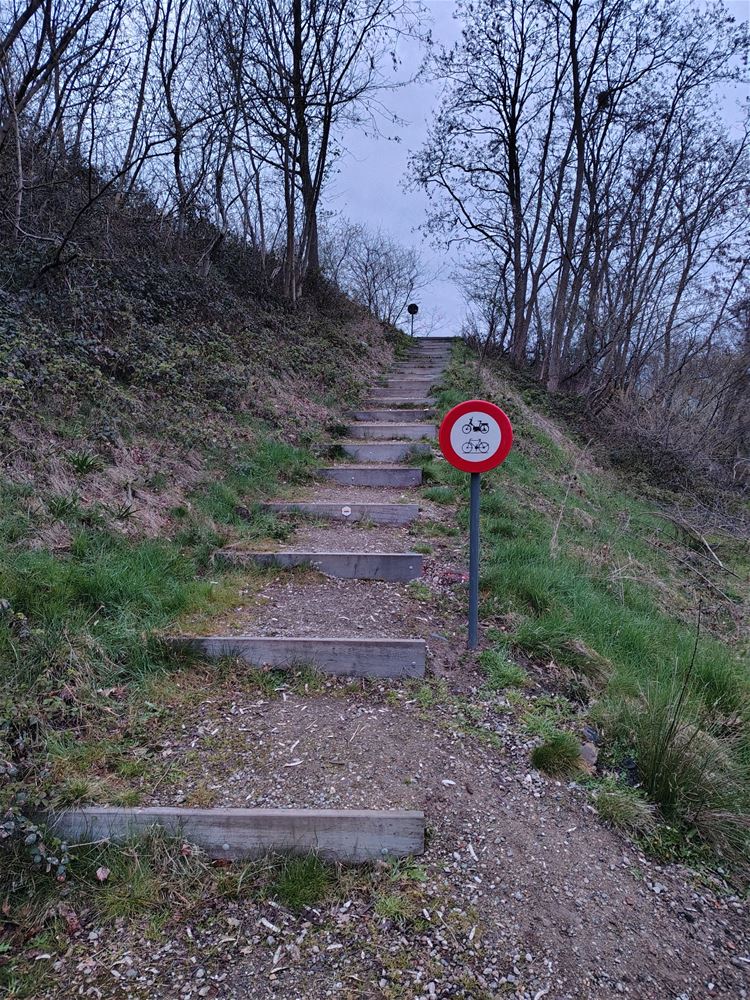 De ‘illegale’ toegangen tot het fietsroutenetwerk op het routeke vormen al maanden een terugkerend oppositie-item op de gemeenteraad. Ondertussen heeft de gemeente er borden laten plaatsen die de toegang voor tweewielers verbiedt. Voorbijgangers lachen zich te barsten want op die paden raken zelfs Wout Van Aert en Mathieu van der Poel nog niet boven. Een afdaling lijkt met enige ervaring wel haalbaar, maar niet raadzaam. (foto’s Philippe De Pauw)88261