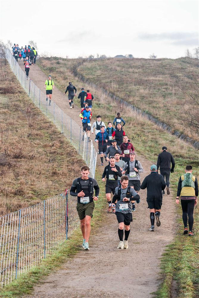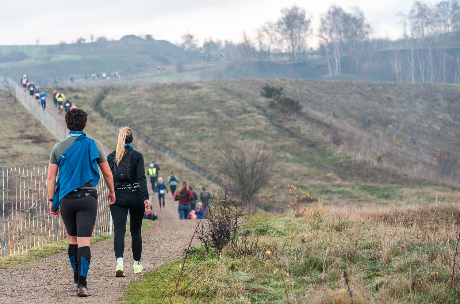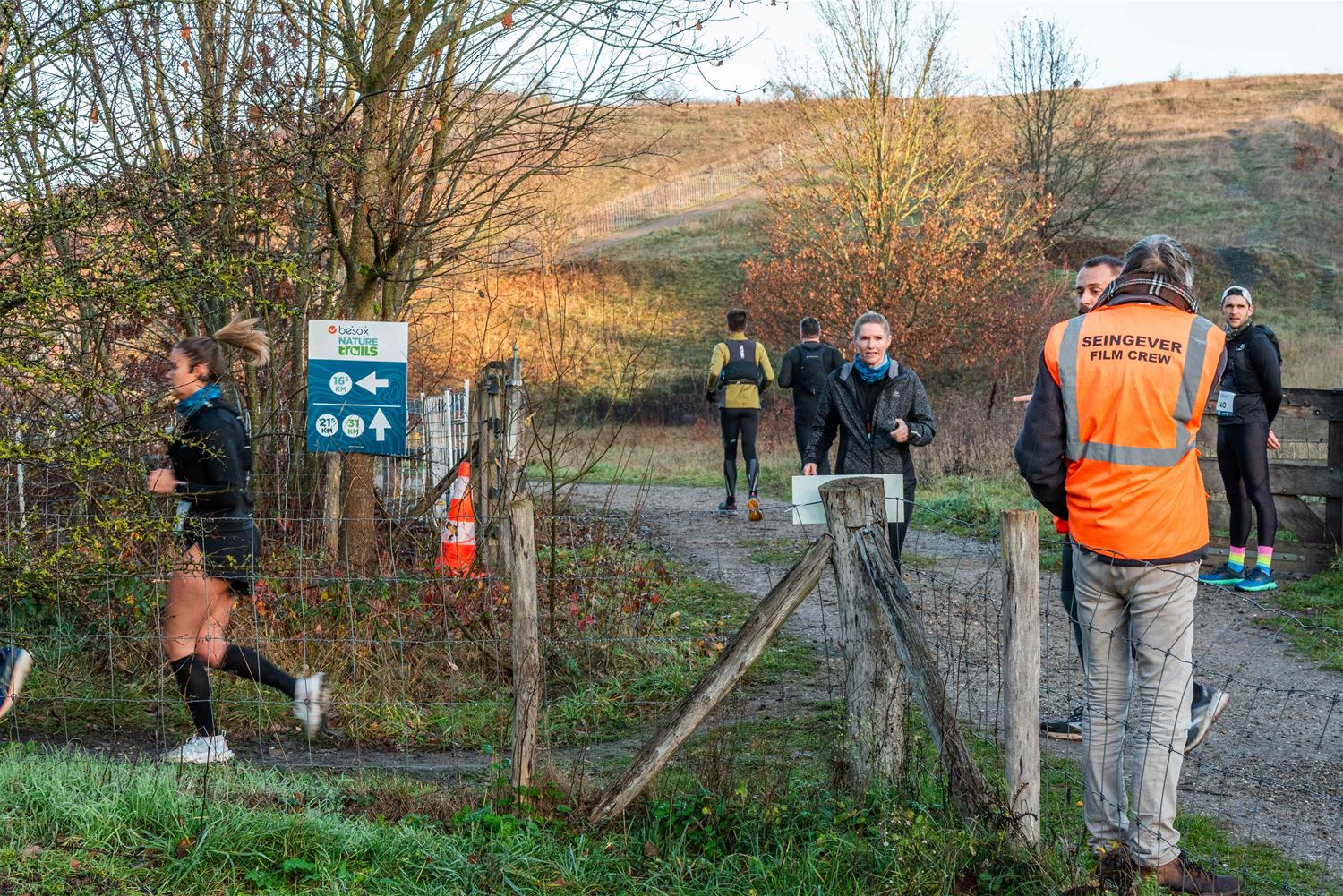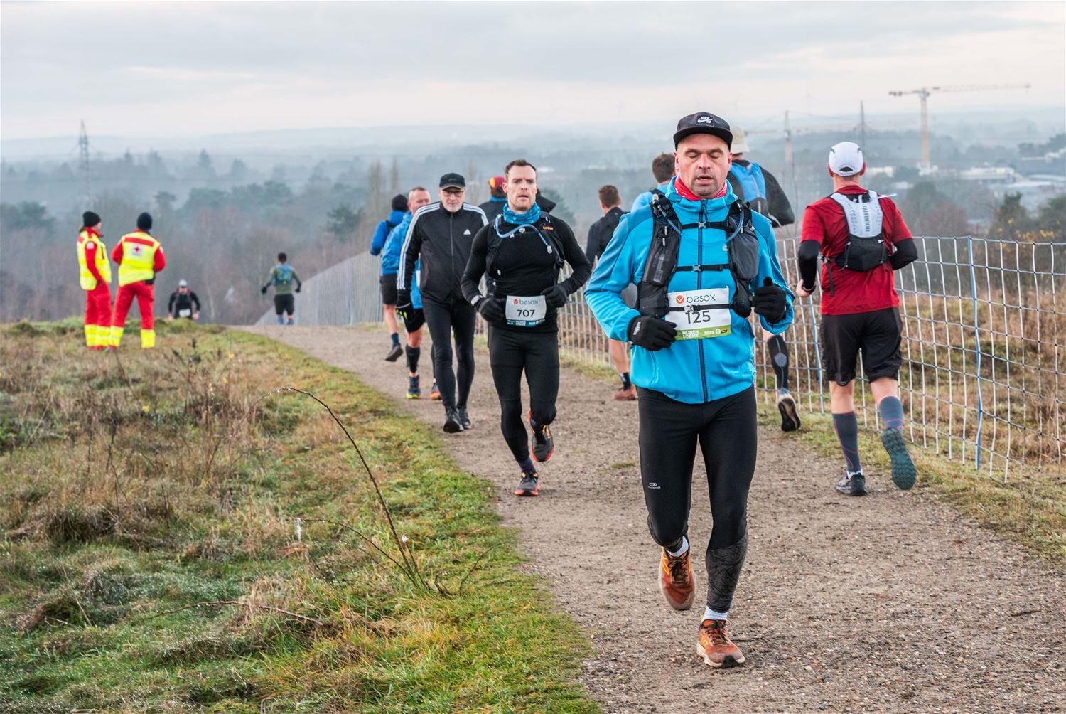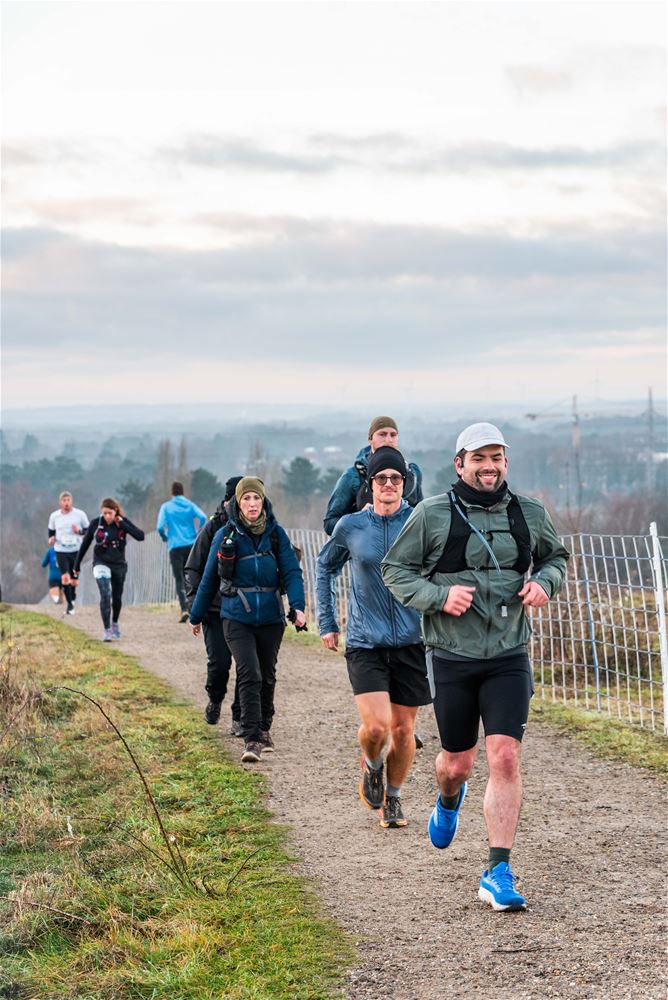 Het was vanmorgen erg druk op De Schacht want daar werd de start gegeven voor de langere afstandsnummers voor de Mijnentocht. In de balzaal van Muze was het aanschuiven om de nummers af te halen. Na de gezamenlijke opwarming gingen de eerste starters er meteen ambitieus tegenaan. Ze doorkruisten de lokale gebouwen zoals ZLDR Luchtfabriek en heel wat dapperen hadden er de mijnterril bijgenomen. Daar was het dan ook een drukte van jewelste van atleten die opwaarts klommen, terwijl anderen de afdaling al hadden ingezet. Wie er de tijd voor nam, werd op de top getrakteerd op een pittoresk uitzicht waarbij het ochtendlicht deels in de nevel werd opgeslorpt. Heel wat deelnemers deden het trouwens rustig aan, voor hen was aankomen en genieten onderweg belangrijker dan één of ander klassement. Vervolgens ging het door bos en groen richting Beringen, waar de finish wacht op be-MINE. (foto’s Ann Jordens)87227