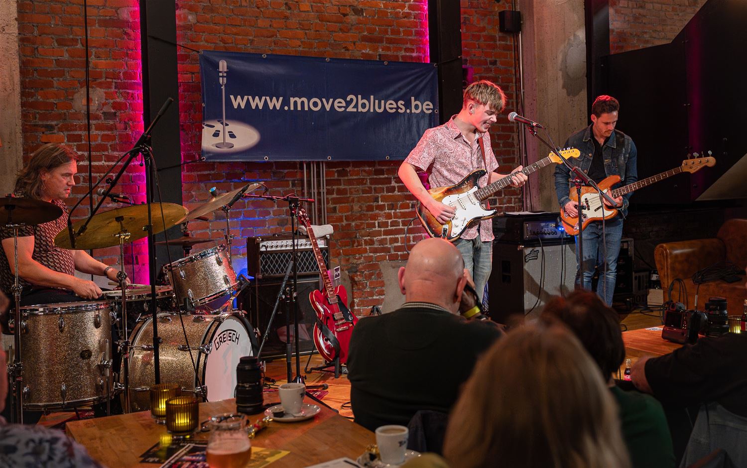 Move2Blues had donderdagavond de Nederlandse Luca Holkenborg Band uitgenodigd. De band staat onder leiding van de … 16-jarige gitarist Luca. Hij groeide op met de blues, speelde al met heel wat grote namen en heeft nu dus zijn eigen trio. Ze zijn op tal van festivals gepasseerd, vorig jaar kreeg hij ook de Award Jong Blues Talent. In het Muzecafé bewees hij dat hij die niet gestolen heeft: een indrukwekkend gitaarspel alsof hij al decennia niets anders doet en nummers die beïnvloed zijn door diverse klassieke en hedendaagse artiesten. (foto’s Roman Martyka)86577