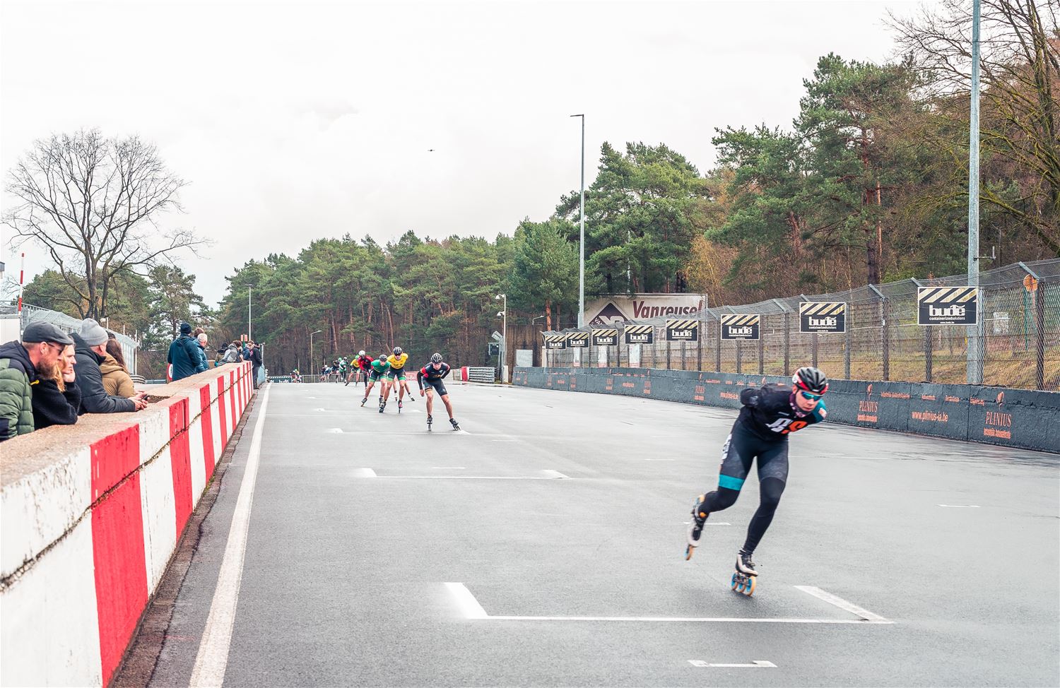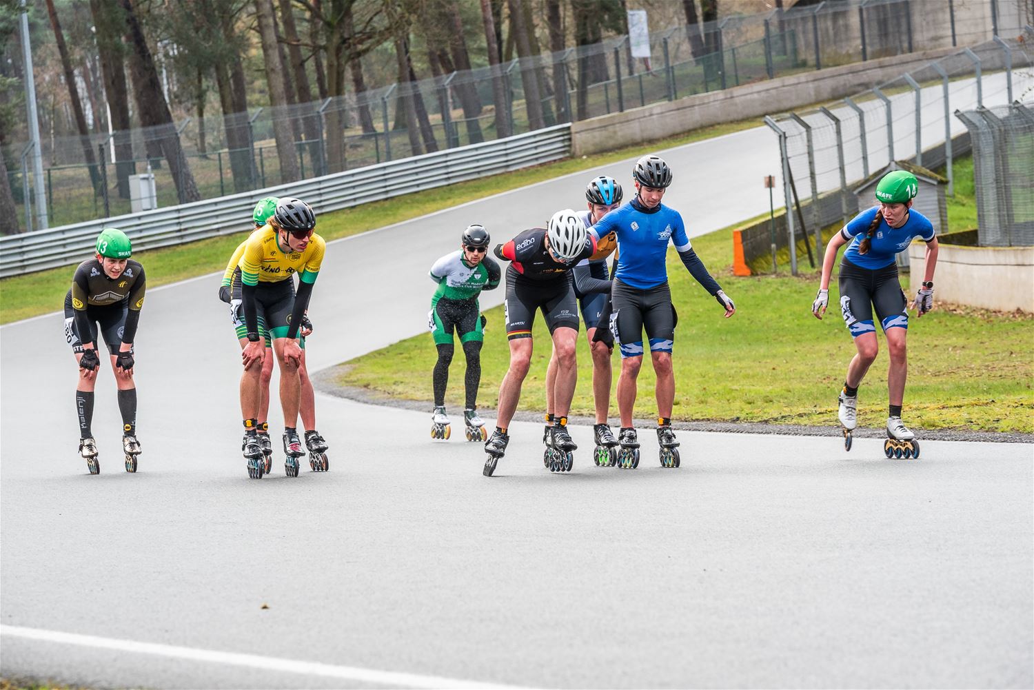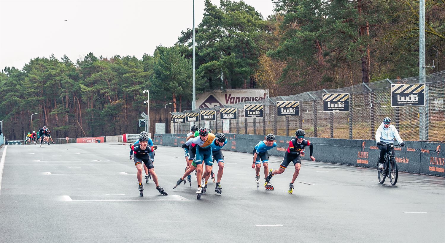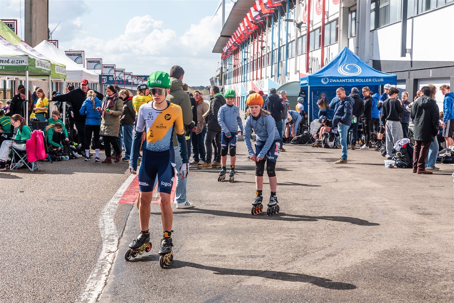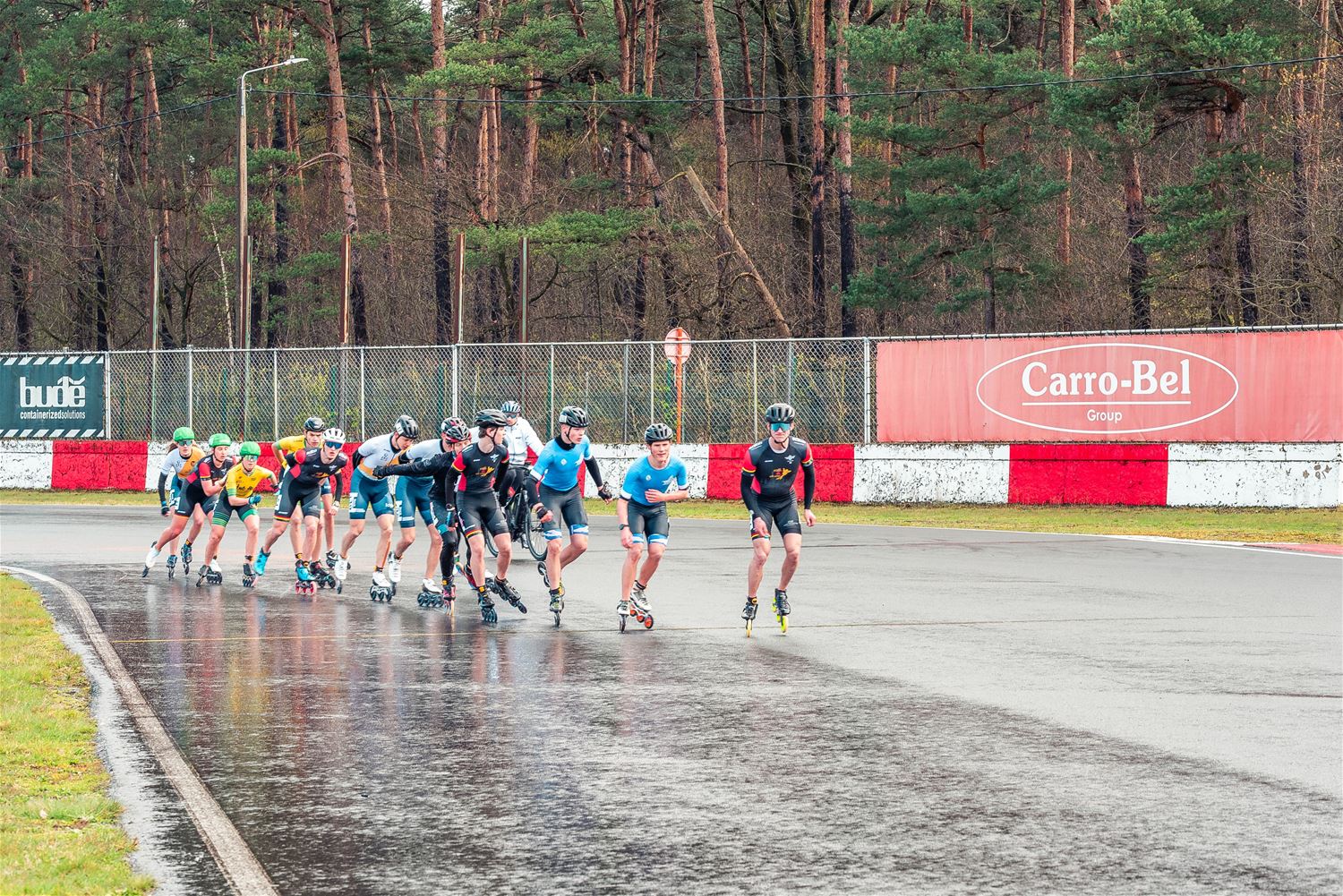 Vandaag werden op Circuit Zolder de wielen letterlijk onder de voeten gebonden. Een kleine 200 deelnemers uit binnen- en buitenland was afgezakt voor de Belgische kampioenschappen marathonskaten. Voor wie de volledige marathon koos betekende dat dus een dikke 42 km. Na de middag konden de recreanten in een stralend zonnetje skaten, maar de zowat 40 deelnemers aan de topwedstrijden in de voormiddag moesten het op een nat wegdek beslechten. De Belgische top 4 was helaas niet aanwezig wegens de wereldkampioenschappen in Shanghai. Joren Geerts kon zich bij de dames tot kampioen kronen, bij de heren werd Brecht Lippens kampioen. (foto’s Ann Jordens)88126