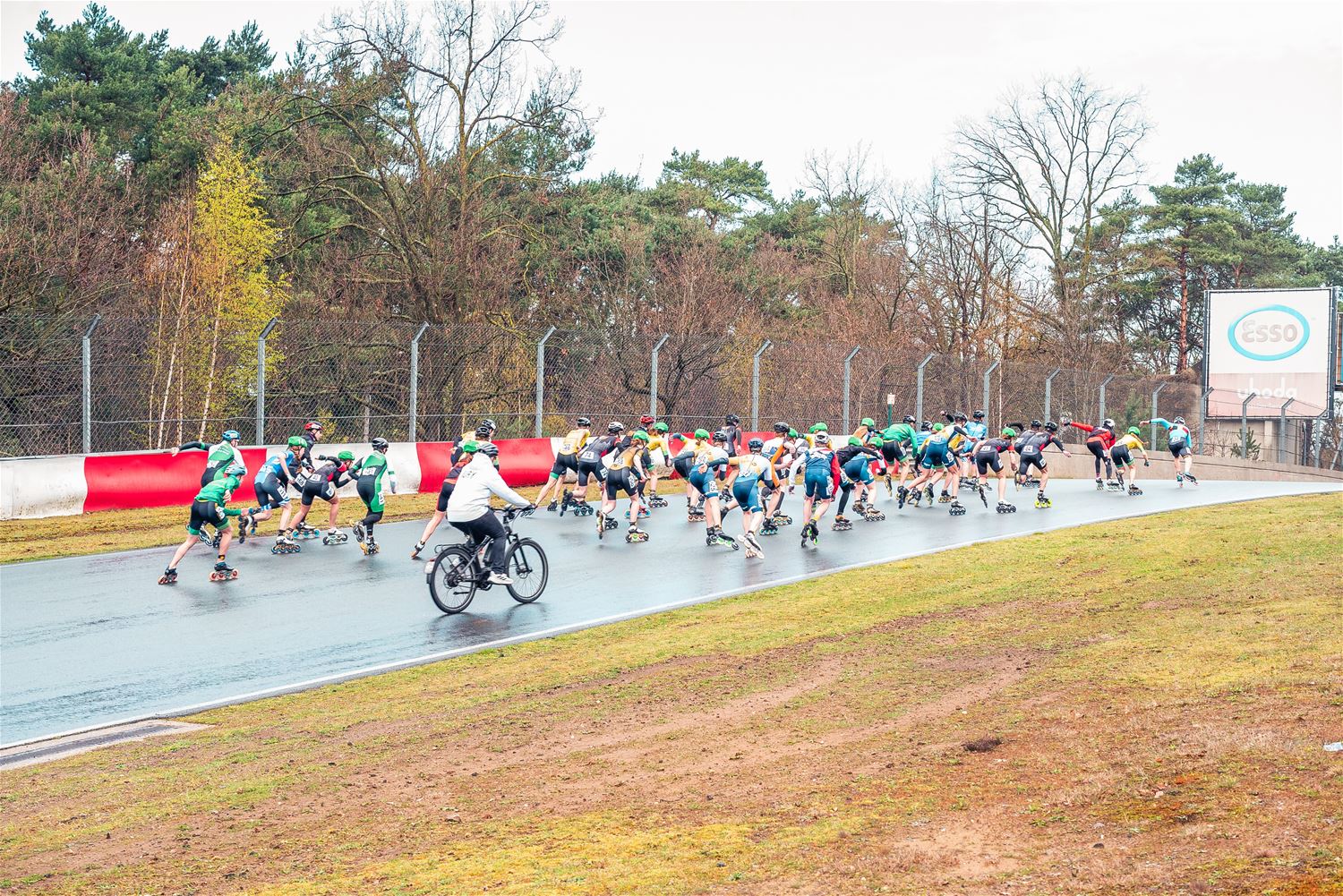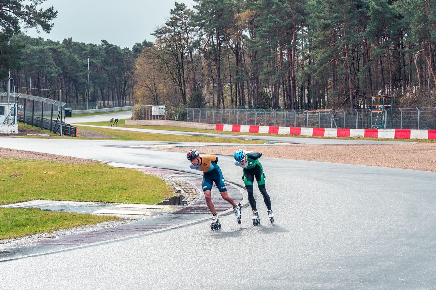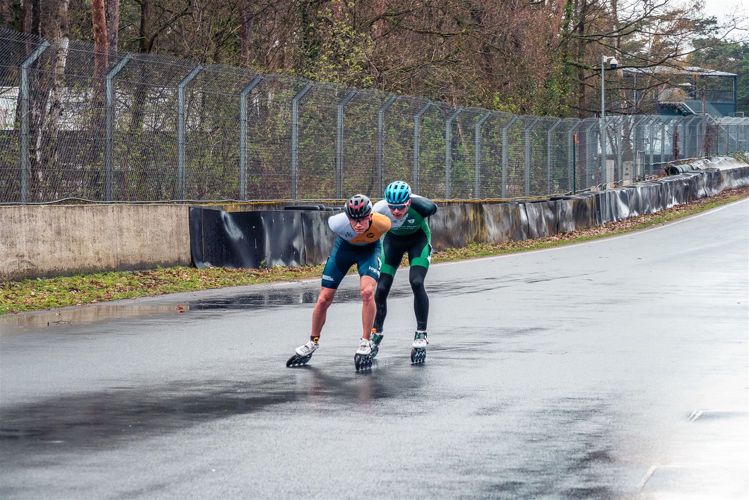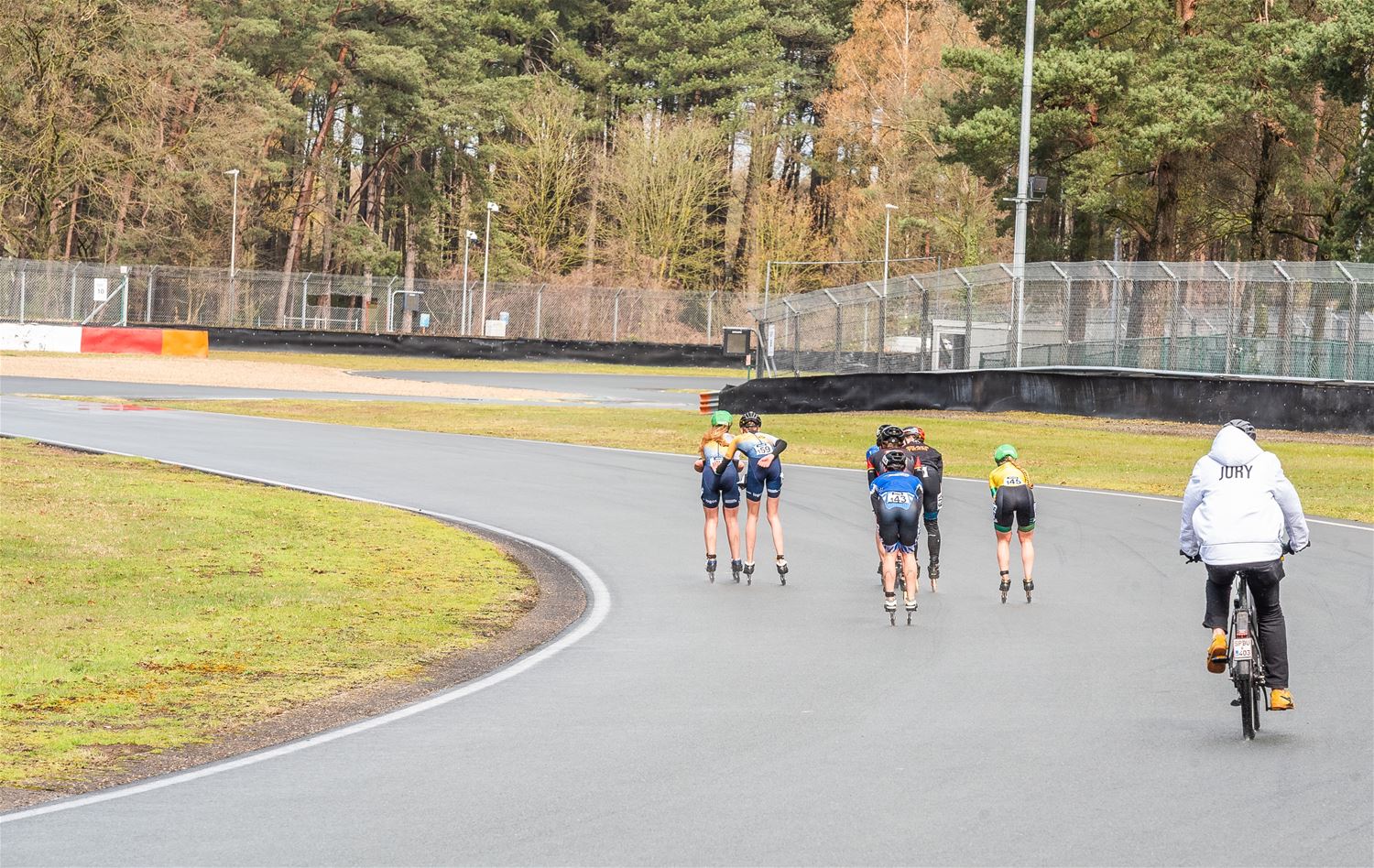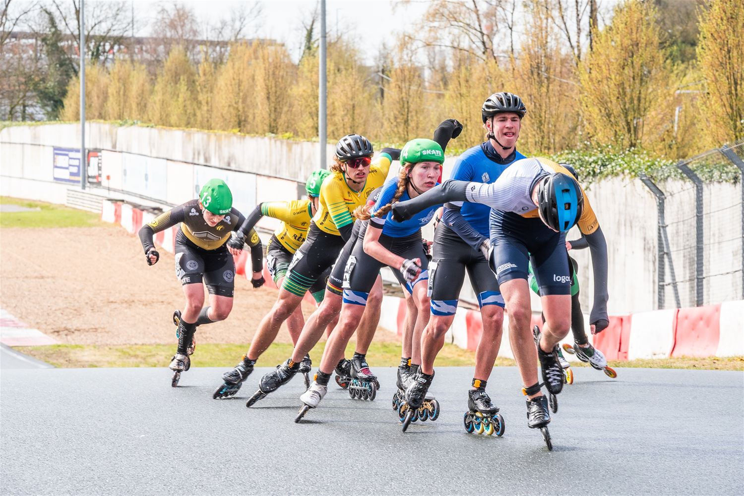 Vandaag werden op Circuit Zolder de wielen letterlijk onder de voeten gebonden. Een kleine 200 deelnemers uit binnen- en buitenland was afgezakt voor de Belgische kampioenschappen marathonskaten. Voor wie de volledige marathon koos betekende dat dus een dikke 42 km. Na de middag konden de recreanten in een stralend zonnetje skaten, maar de zowat 40 deelnemers aan de topwedstrijden in de voormiddag moesten het op een nat wegdek beslechten. De Belgische top 4 was helaas niet aanwezig wegens de wereldkampioenschappen in Shanghai. Joren Geerts kon zich bij de dames tot kampioen kronen, bij de heren werd Brecht Lippens kampioen. (foto’s Ann Jordens)88126