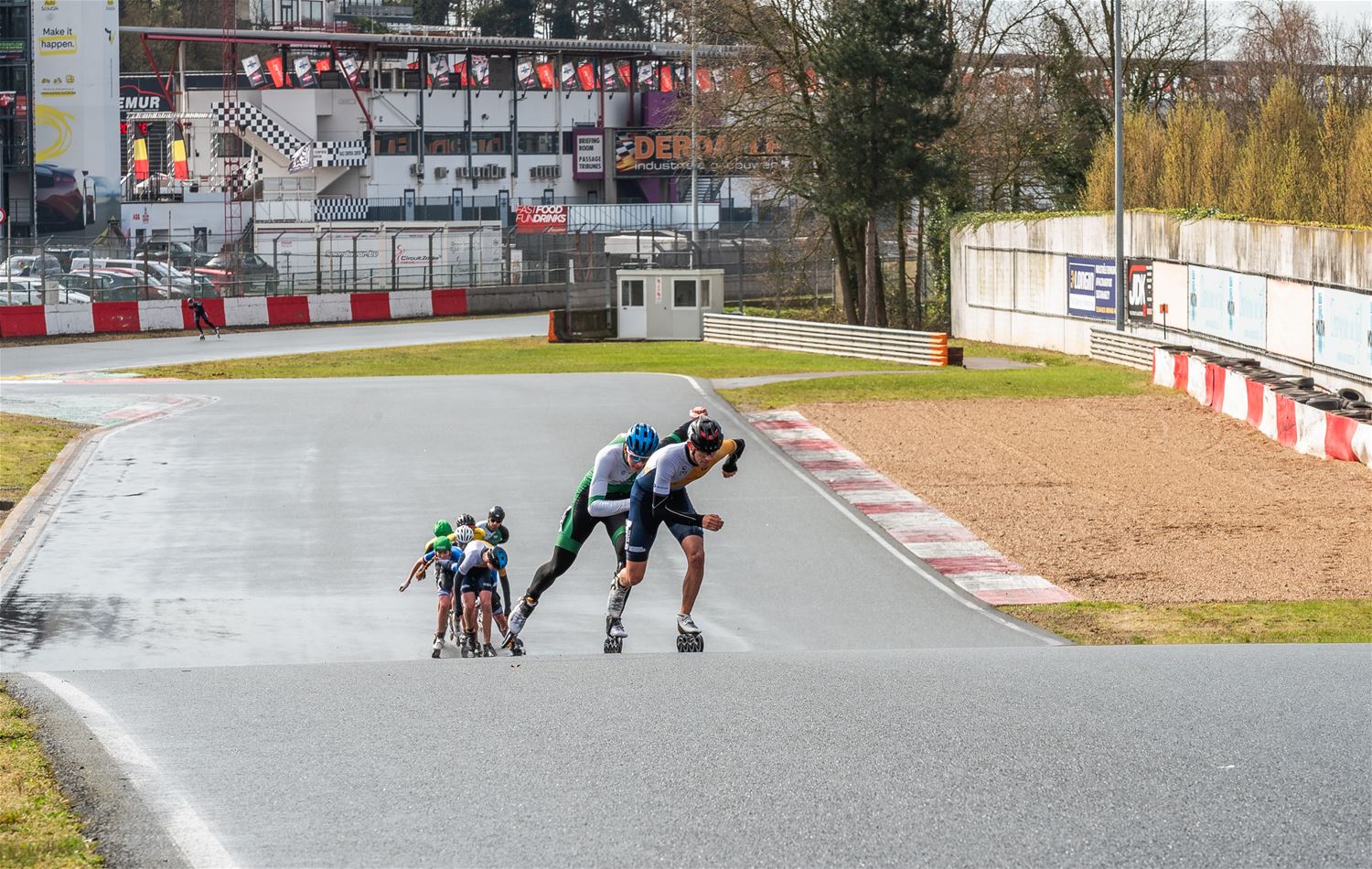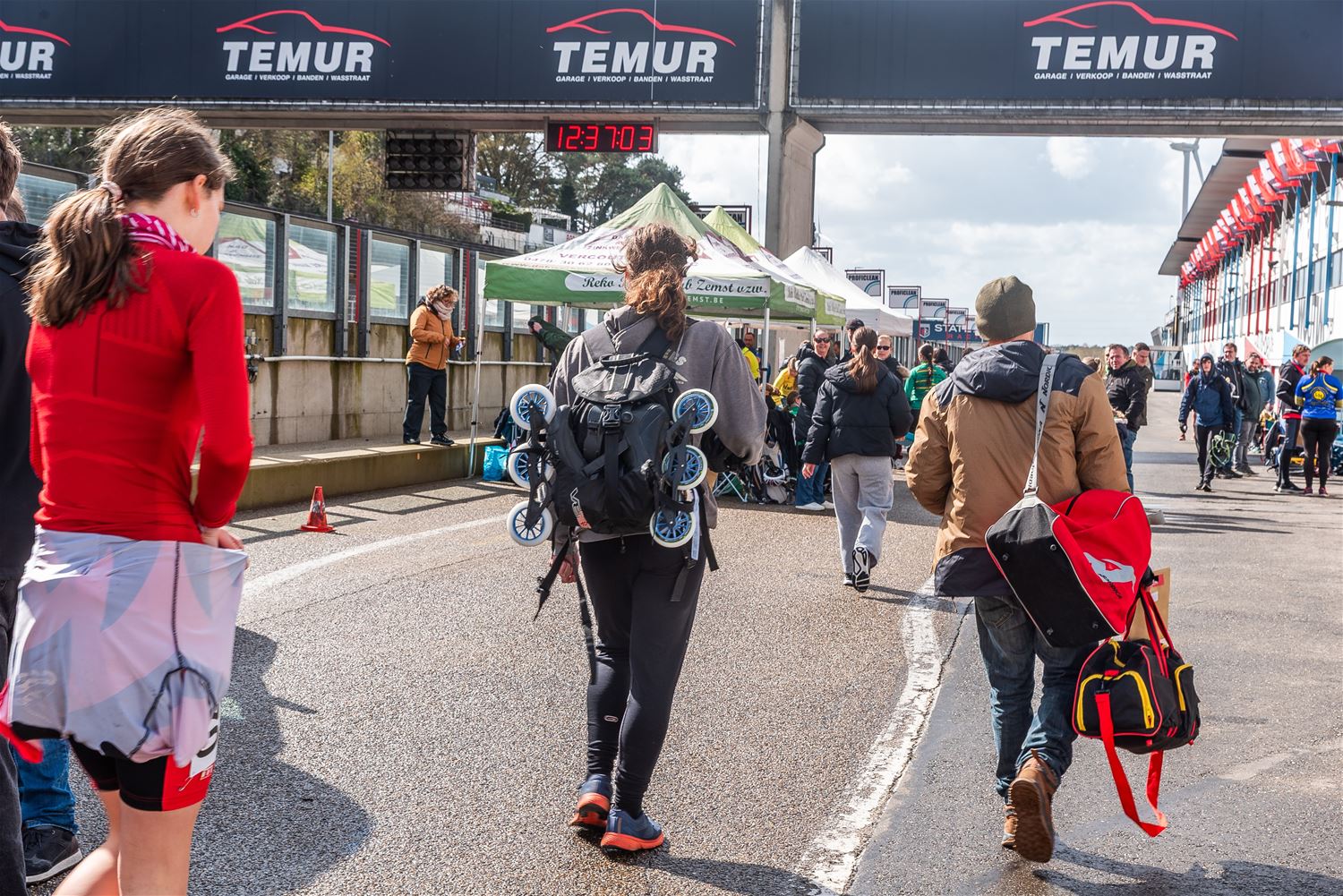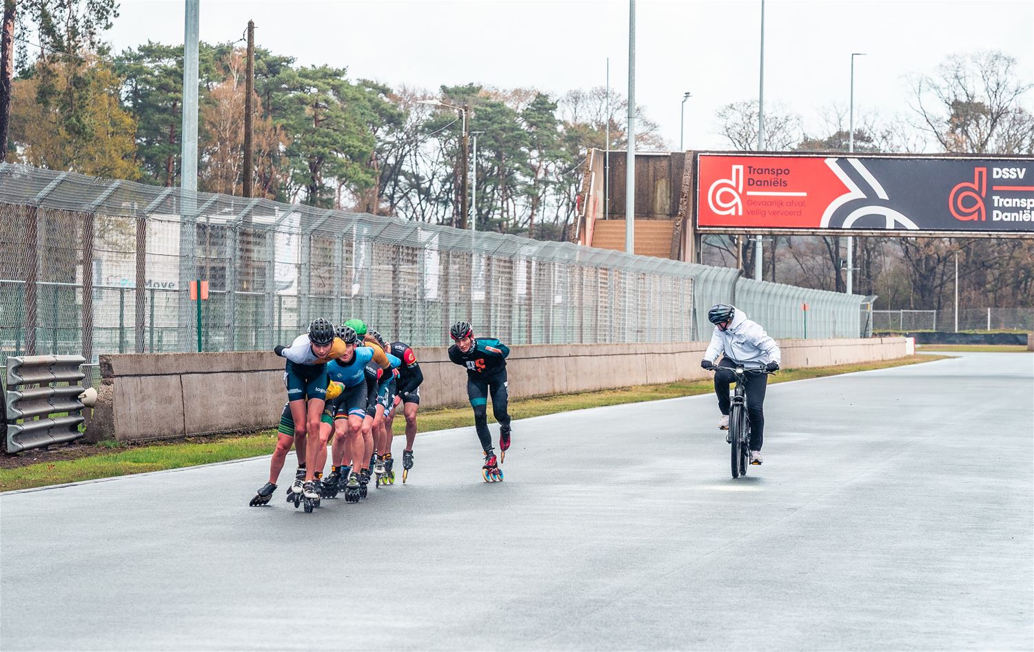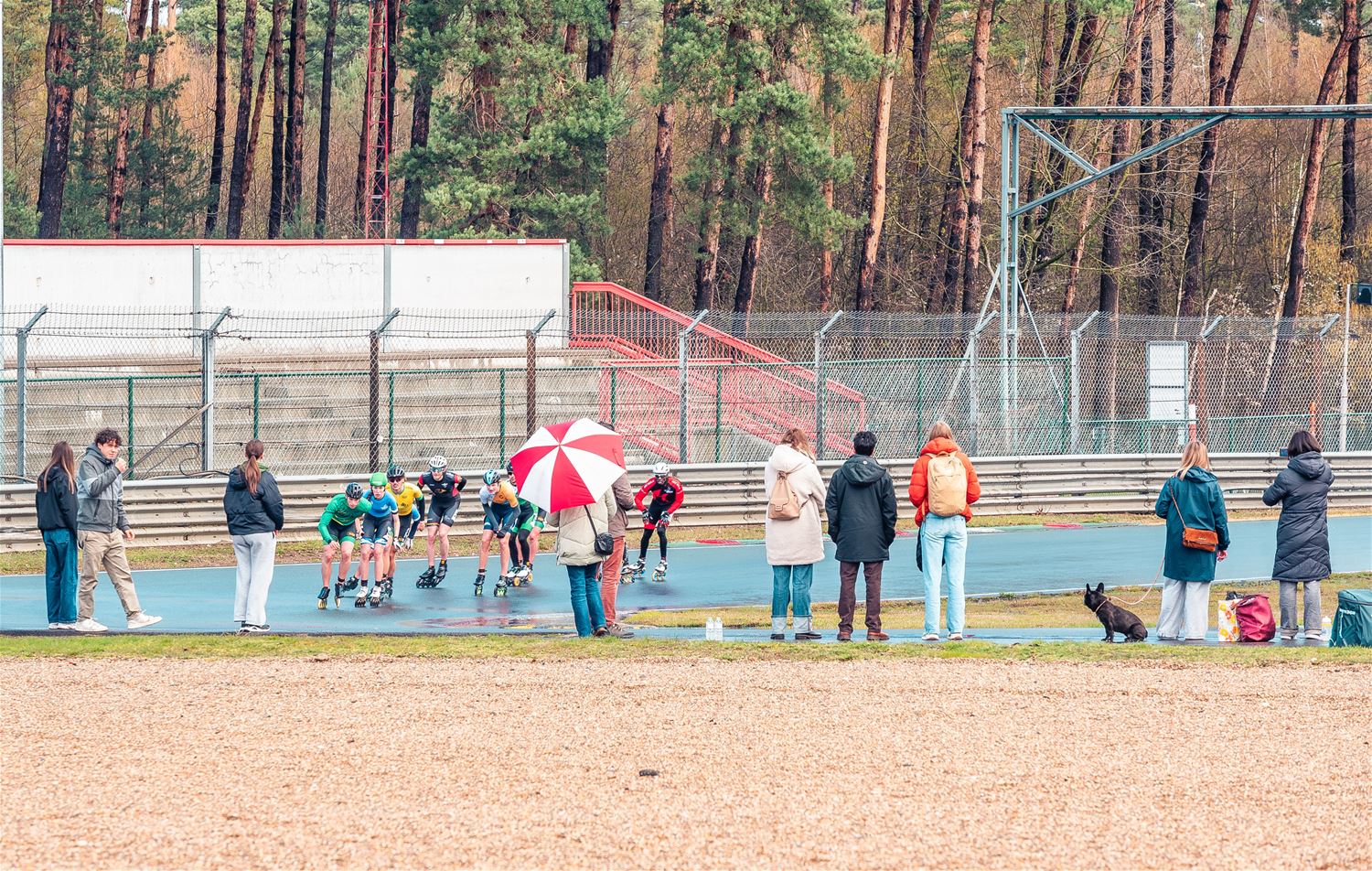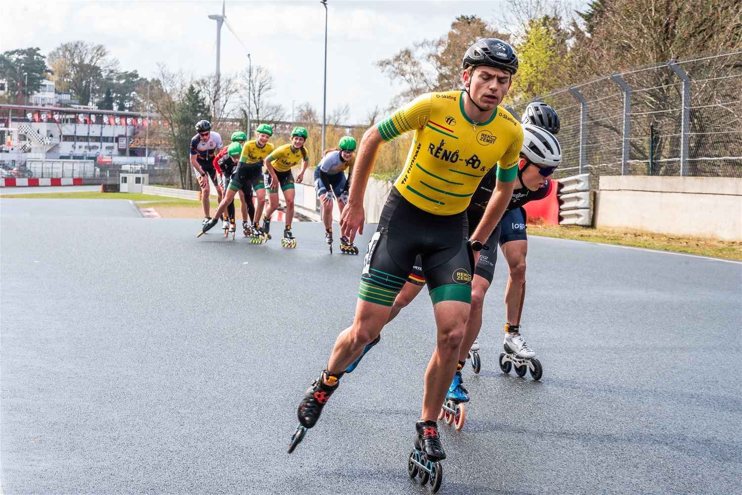 Vandaag werden op Circuit Zolder de wielen letterlijk onder de voeten gebonden. Een kleine 200 deelnemers uit binnen- en buitenland was afgezakt voor de Belgische kampioenschappen marathonskaten. Voor wie de volledige marathon koos betekende dat dus een dikke 42 km. Na de middag konden de recreanten in een stralend zonnetje skaten, maar de zowat 40 deelnemers aan de topwedstrijden in de voormiddag moesten het op een nat wegdek beslechten. De Belgische top 4 was helaas niet aanwezig wegens de wereldkampioenschappen in Shanghai. Joren Geerts kon zich bij de dames tot kampioen kronen, bij de heren werd Brecht Lippens kampioen. (foto’s Ann Jordens)88126