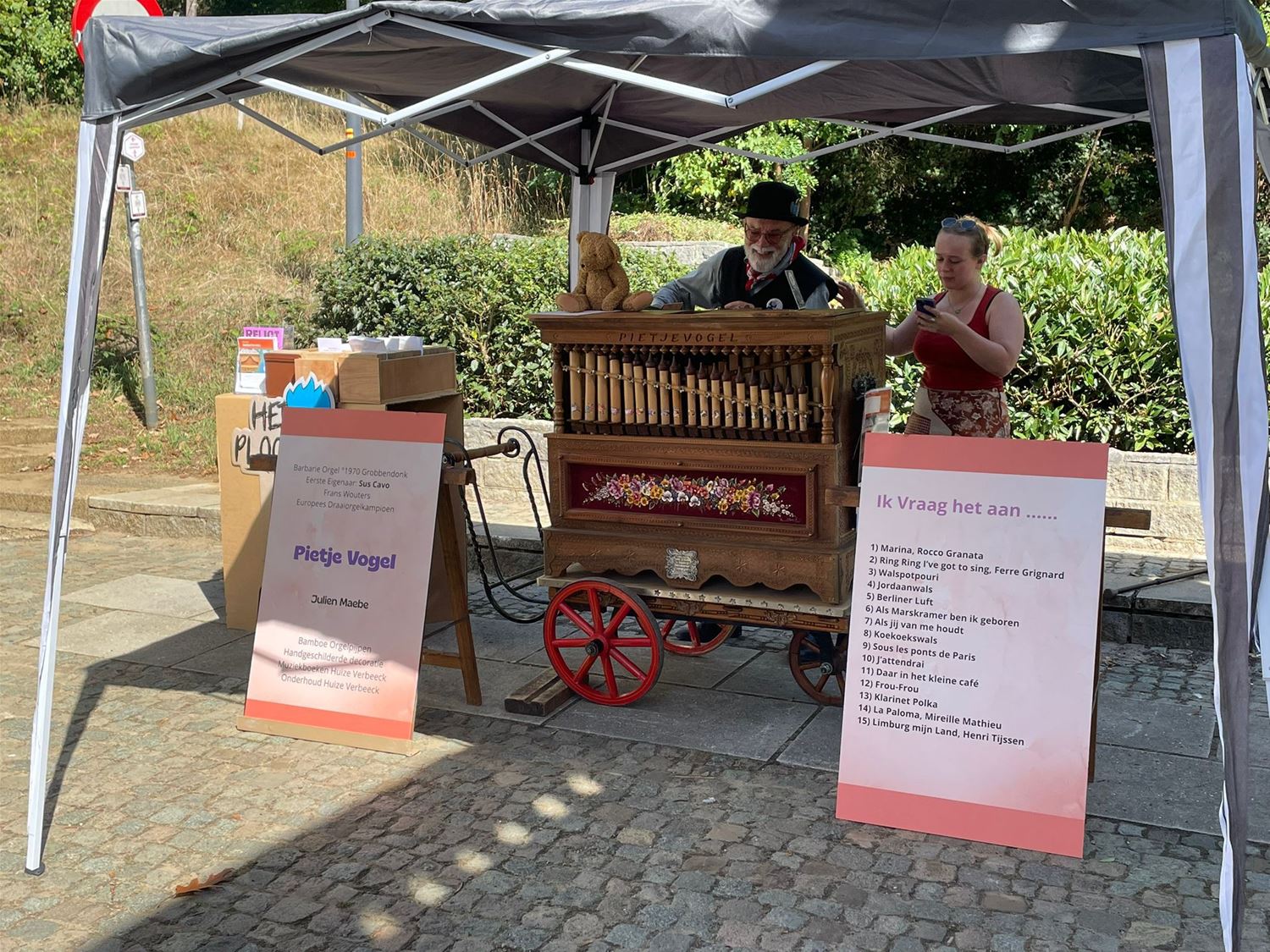 Op de Belgische kampioenschappen orgeldraaien in Diest heeft Julien Maebe de Limburgse titel behaald. Er waren twee Limburgse deelnemers, dus die moesten het binnen de algemene wedstrijd tegen elkaar opnemen voor de Limburgse beker. En die brengt Julien dus mee naar Heusden-Zolder. Overigens konden de passanten en de jury heel de tijd verzoeknummers kiezen uit een repertoire van 15 nummers. En na het behalen van de titel kon er wellicht nog een extra nummer van het Limburgs Volkslied af. Overigens danste de gloednieuwe reus Sus Cavo mee op de tonen van de orgelmuziek, hij wordt pas officieel aan het publiek getoond tijdens MijnKracht over twee weken, wanneer zijn doopfeest plaatsvindt. UPDATE (rechtsonder, meer foto's van Leen Beunens)86283