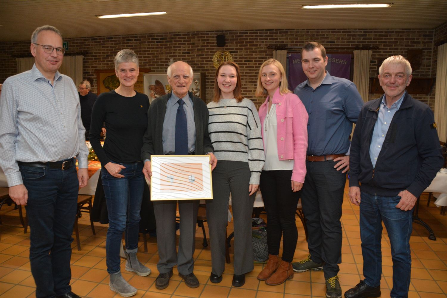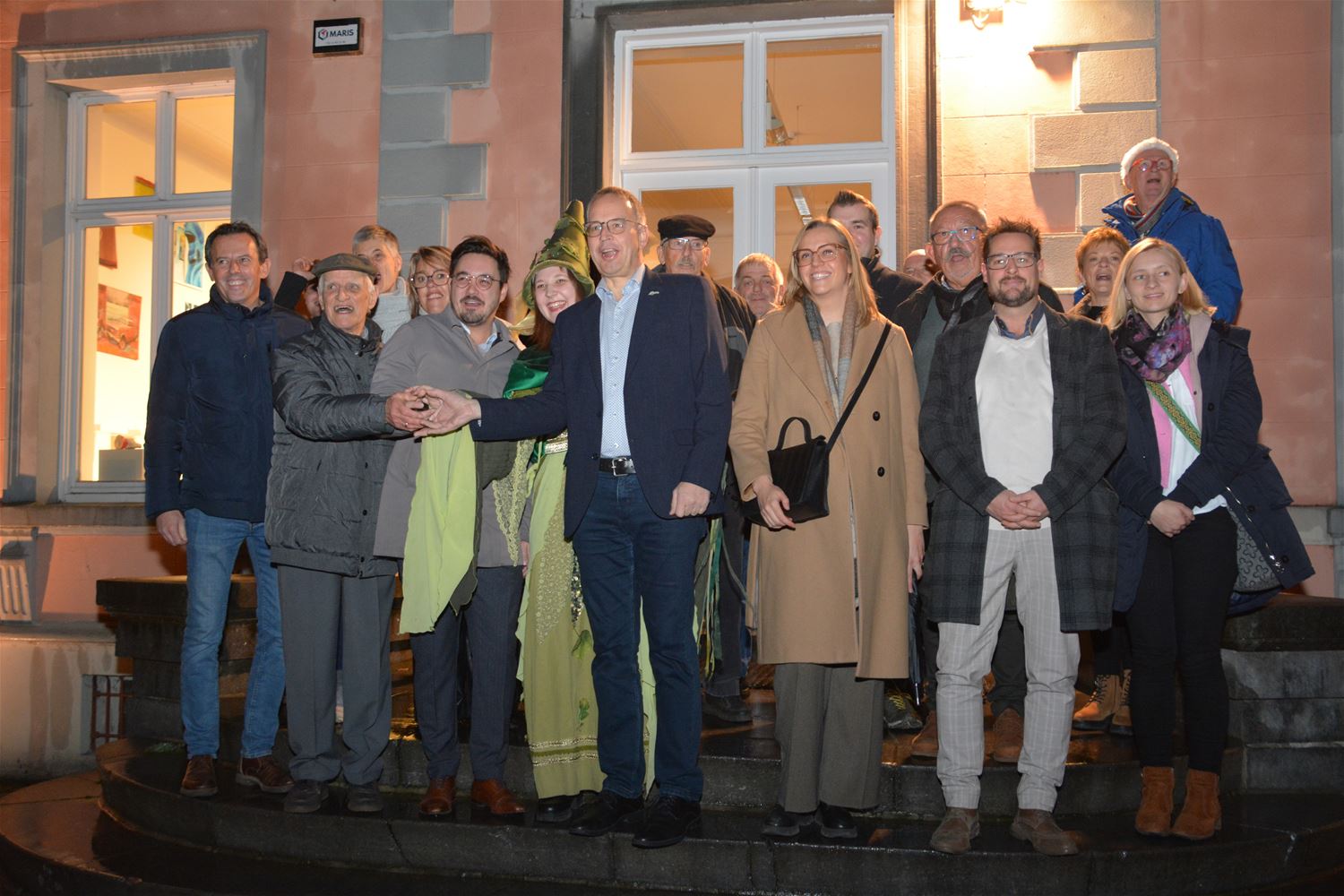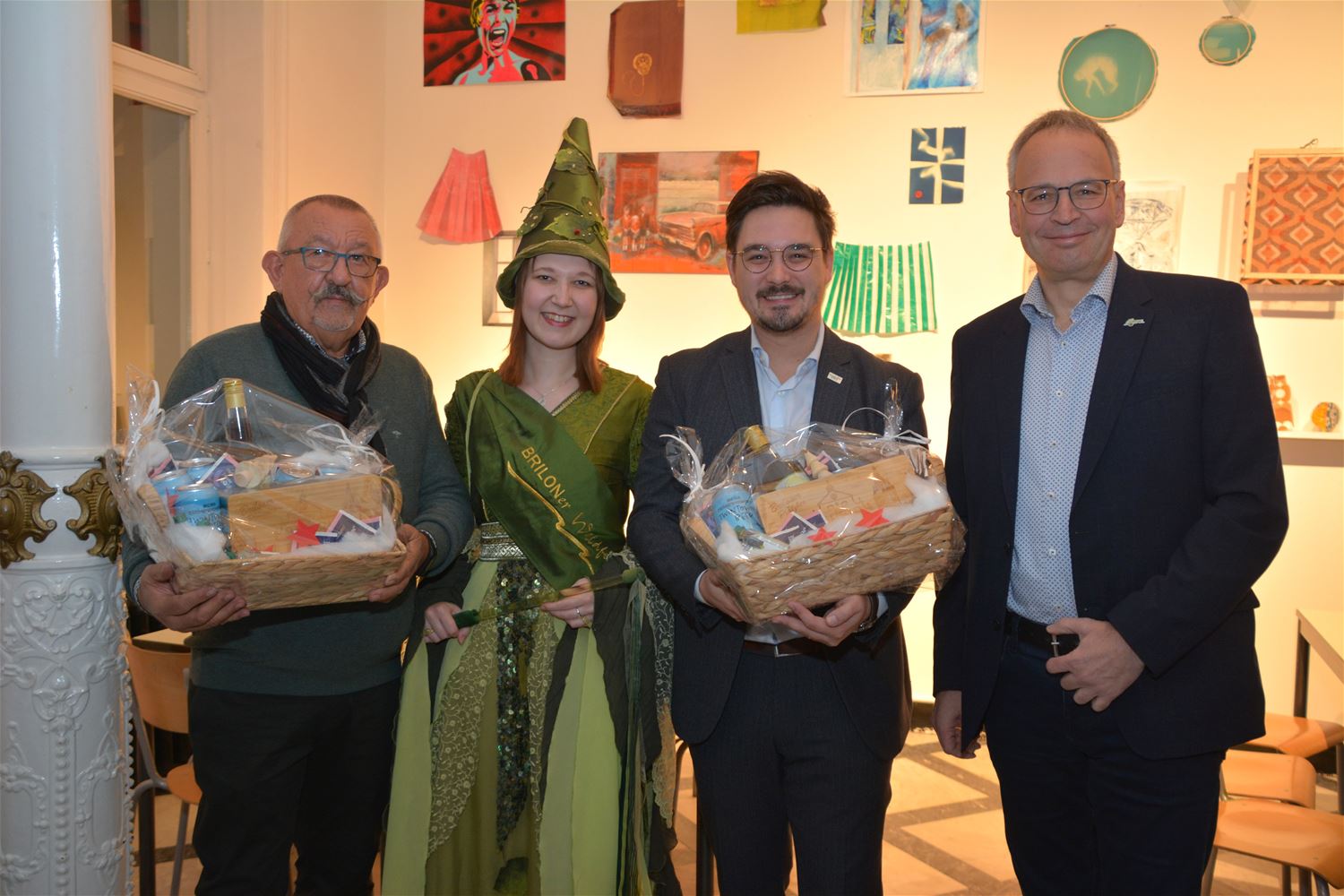 Met een plechtigheid zijn vanavond in kasteel Meylandt de lichtjes in de kerstboom van partnerstad Brilon ontstoken. Voorzitter Michel Oyen van het Verbroederingscomité was verheugd dat de traditie werd voortgezet waarmee Brilon een kerstboom schenkt aan Heusden-Zolder, een boom die een zichtbare plaats kreeg voor het kasteel en langs de Meylandtlaan. Schepen Marten Frederix benadrukte dat wij het allemaal goed hebben en een gezellige periode beleven maar dat we er ook moeten bij stilstaan dat voor veel volkeren in de wereld helemaal niet evident is, en dat zij in heel andere omstandigheden deze periode moeten doorkomen. Marcus Bange van het stadsbestuur van Brilon vertegenwoordigde burgemeester Christof Bartsch, die last minute door familiale omstandigheden moest verstek geven. Hij beloofde dat de traditie van de kerstboomschenking ook de volgende jaren zal voortgezet worden en misschien nog kan uitgebreid worden. Iets wat bij de aanwezigen in ieder geval als muziek in de oren klonk. Geschenken werden uitgewisseld met de nadruk op lokale specialiteiten. Opvallende aanwezige was ook Hannah Zwingelberg, de 20ste Waldfee van Brilon. De woudfee is een felbegeerde ambassadeursfunctie in een stad die door een enorme bosoppervlakte bedekt wordt. Tenslotte werd Jef Minten gehuldigd als ere-lid van het Verbroederingscomité. Jef zet zich al meer dan 50 jaar in als vrijwilliger voor de verbroedering, en voor heel wat andere verenigingen. Hij vertelde hoe alles in 1974 begon toen hij samen met andere collega’s van de post in Heusden – na hun dagelijkse ronde – met de bus naar Brilon trok voor een verbroedering met collega’s. Vooraf moest hij in de bibliotheek gaan opzoeken waar het toen nog onbekende Brilon lag. Datzelfde jaar volgde een tegenbezoek en de trein was vertrokken. Later nam de het Verbroederingscomité tot op vandaag de fakkel over. Momenteel bestaan trouwens heel wat plannen om die verbroedering extra impulsen te geven met uitwisselingen op meerdere vlakken.87154
