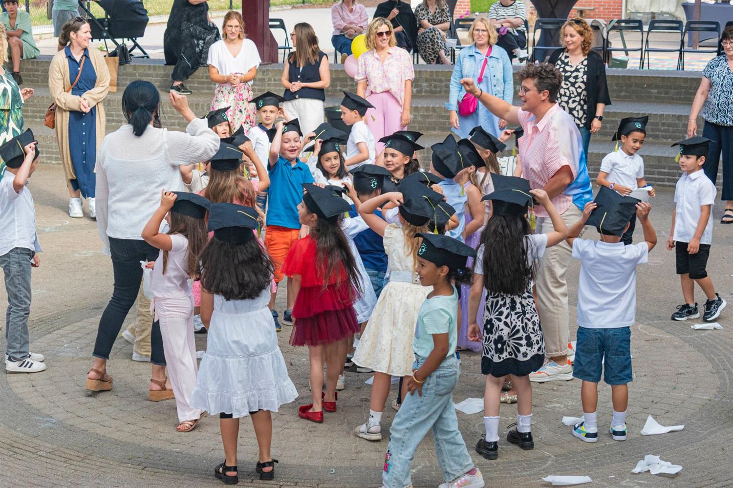 Het is de periode van afstuderen, aan de universiteiten, hogescholen, middelbare scholen, lagere scholen maar ook aan de kleuterscholen. Zo zwaaiden de kleuters van Straal af tijdens een feestelijk gebeuren. Na de vakantie wacht de lagere school 85655
