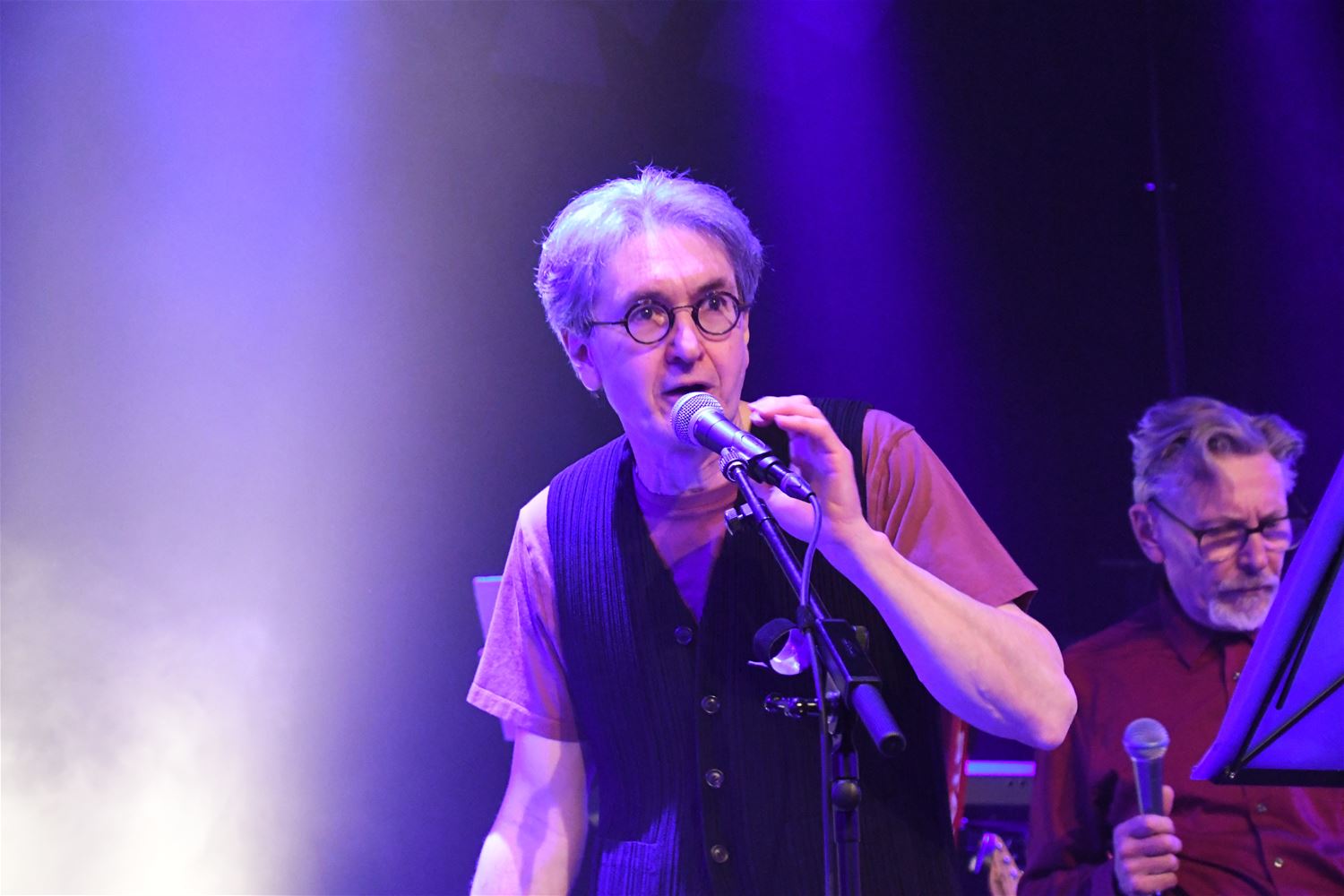 Tweede luik van de viering van de 70ste verjaardag van Kloot Per W was het concert in de balzaal. Kloot Per W bracht er samen met een pleiade aan artiesten een reeks nummers die een (bescheiden) staalkaartje vormden van zijn rijke repertoire. Hij is dan ook een icoon van de Belpop, met nummers die gaan van rock, pop tot postpunk en veel verder. Kloot Per W, topartiest en toffe pee, dat benadrukten ook de muzikanten en zangers die één of meer nummers kwamen meedoen: onder meer Marcel Vanthilt, Jan Houtekiet, Rudy Trouvé en ook dochter Moon. De show kreeg een visueel element met twee danseresenduo’s die zich zowel qua kleding, volume als bewegingen van elkaar onderscheidden. Aan het eind brachten alle muzikanten samen een anarchistische versie van Pick it Up, de legendarische hit van The Employees, nog een band met Kloot Per W. De jarige artiest dankte tenslotte met drie bisnummers. 86662