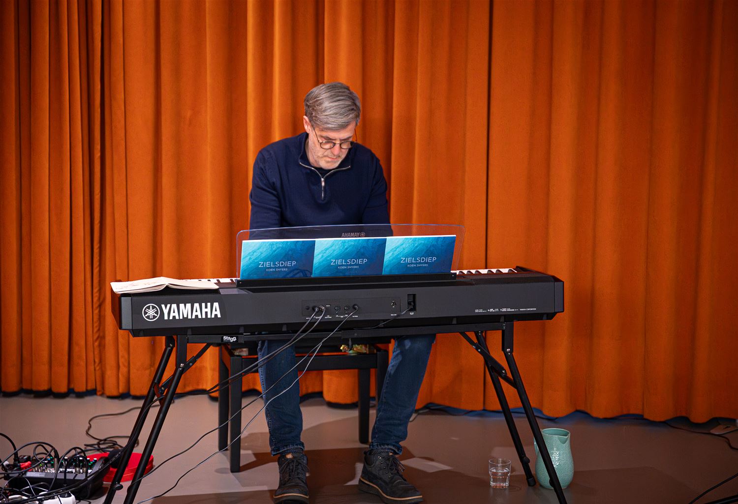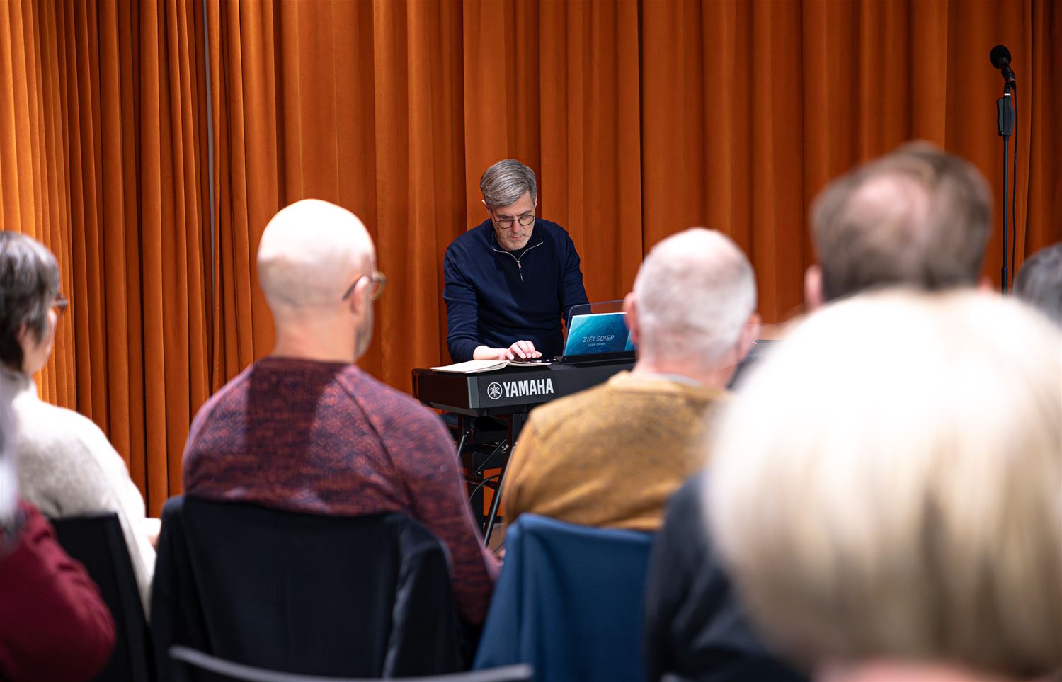 Een bijzondere voorstelling vanavond in de bibliotheek. Daar lagen zowaar mensen op de grond terwijl er live piano werd gespeeld. Het ging om de voorstelling ‘Feel Free & Zielsdiep’ met pianist, schrijver en inspirator Koen Snyers. Hij speelde zachte pianomuziek, afgewisseld met teksten die hij voordroeg uit zijn nieuwe poëziebundel ‘Zielsdiep’. Een deel van het publiek verkoos om de voorstelling liggend op een yogamatje mee te maken, de anderen zaten gewoon op een stoel. Er hing dus een zen-sfeer die de aanwezigen wellicht mee huiswaarts hebben genomen. (foto’s Roman Martyka)88153