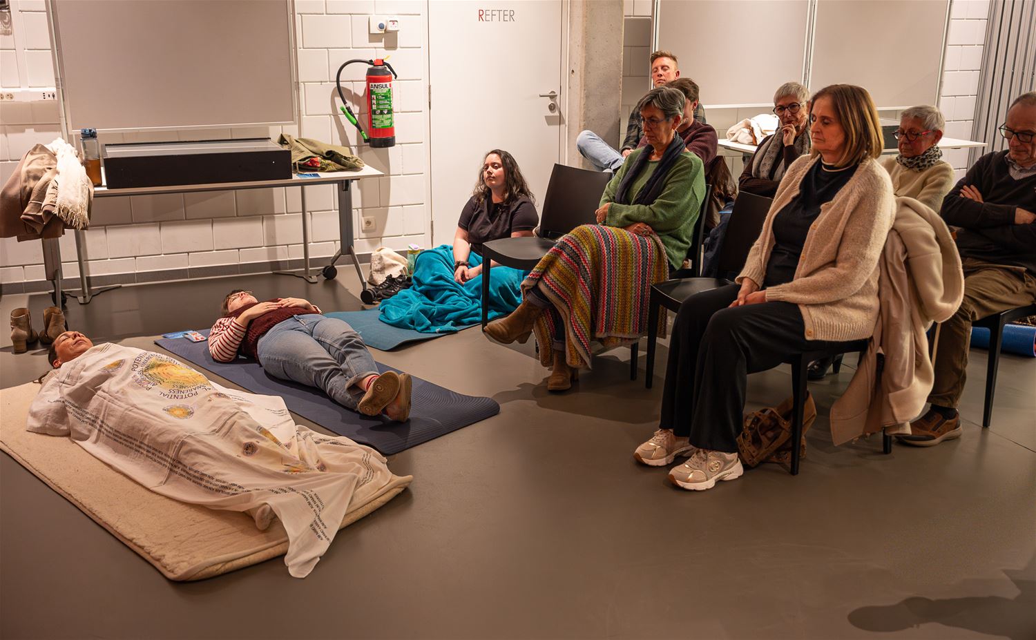 Liggend en zittend luisteren naar muziek en poëzie