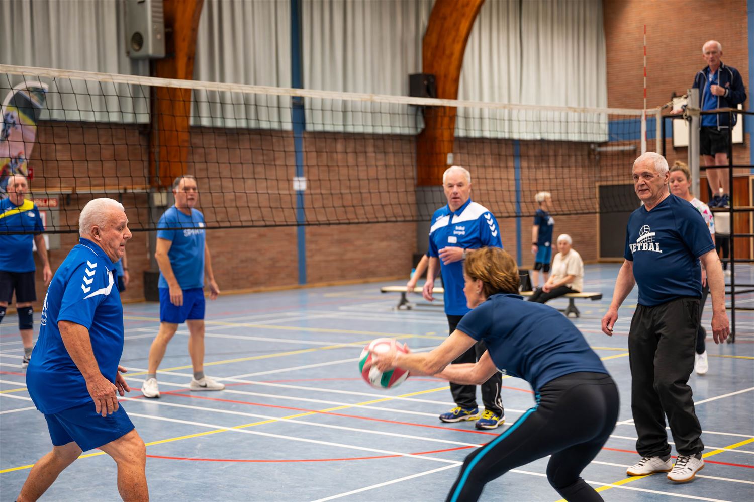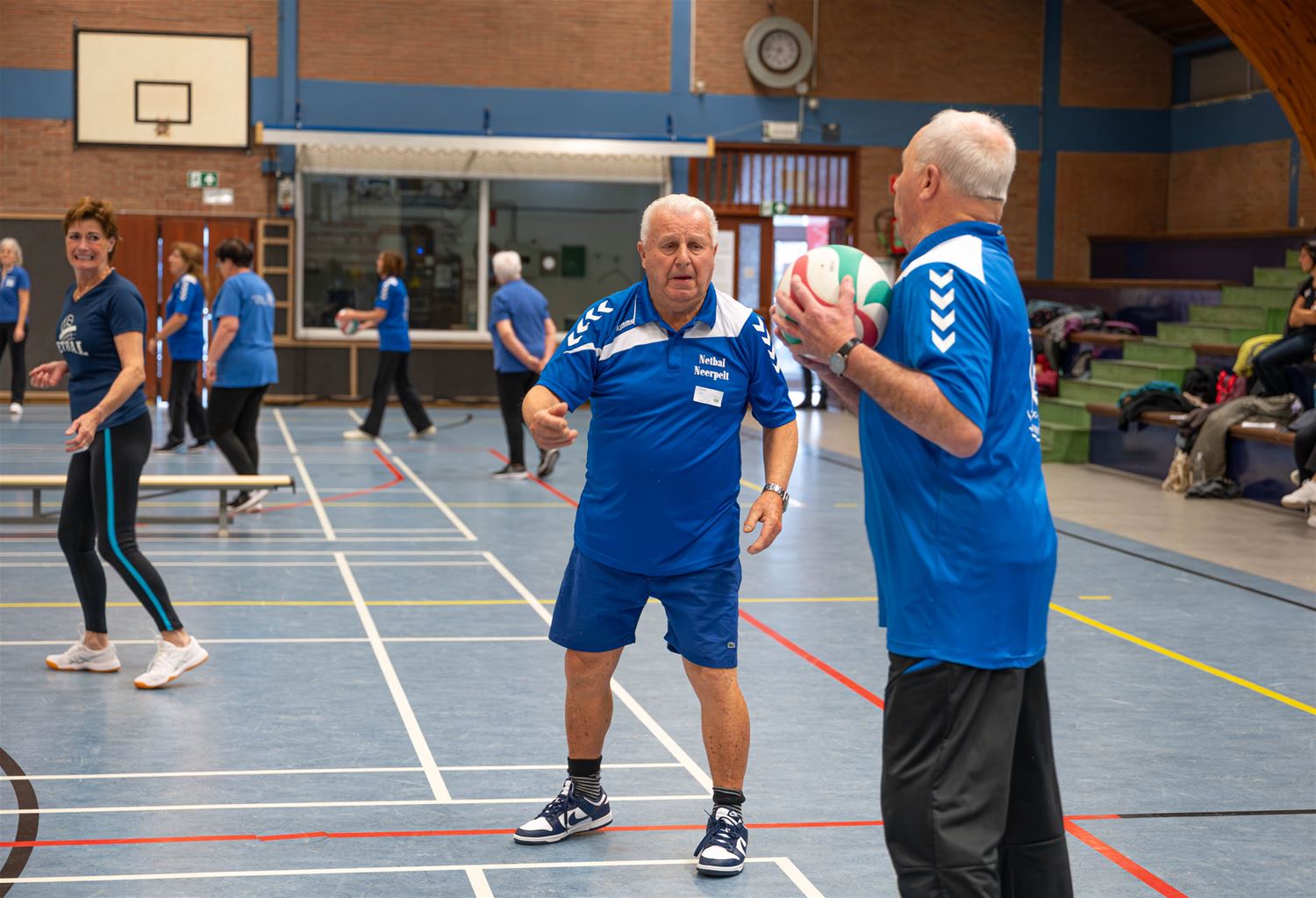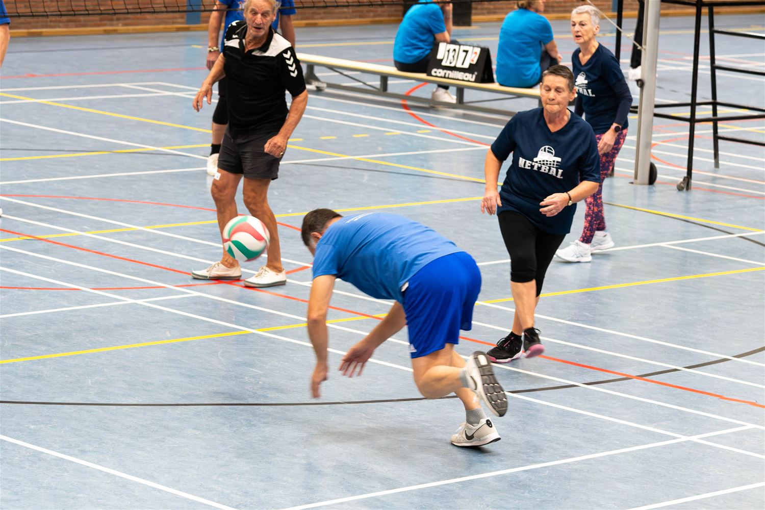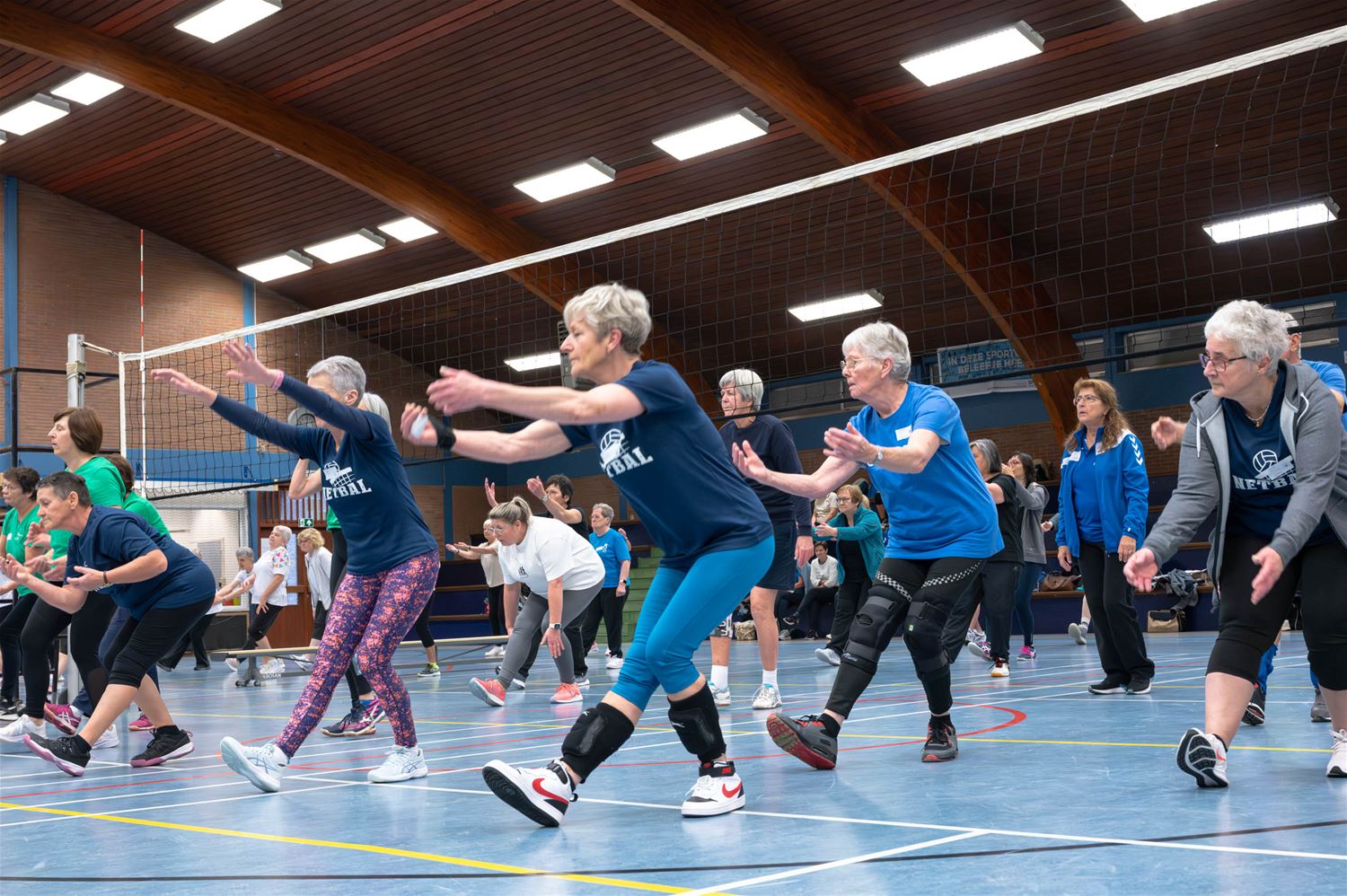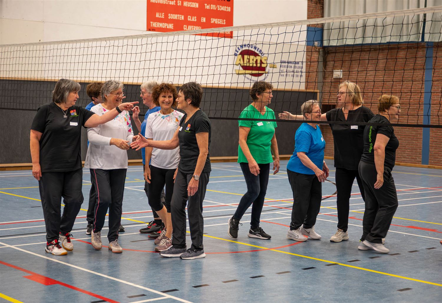 In sporthal Olympia werd vandaag het provinciaal netbaltornooi voor senioren gespeeld. Netbal is een vrij populaire sport bij mensen die niet meer tot de jongsten behoren en die toch aan hun conditie willen blijven werken. ’t Is ook een teamsport waarbij ook heel wat plezier gemaakt wordt. Dat betekent niet dat er vandaag niet gespeeld werd om te winnen, integendeel. Het startte vanmorgen met een collectieve opwarming. Nadien zorgden scheidsrechters dat alles in goede banen verliep tijdens de wedstrijden tussen herenploegen, damesteams en gemengde ploegen. In het totaal waren er 78 deelnemers uit Overpelt, Neerpelt, Diepenbeek, As, Neeroeteren, Hamont-Achel, Tongeren-Borgloon, Guigoven, Kortessem, Leopoldsburg en ook 10 uit Heusden-Zolder. De oudste deelnemer telt liefst 86 lentes. Team Sport van de gemeente zorgde mee voor de organisatie. (foto's Roman Martyka)86980