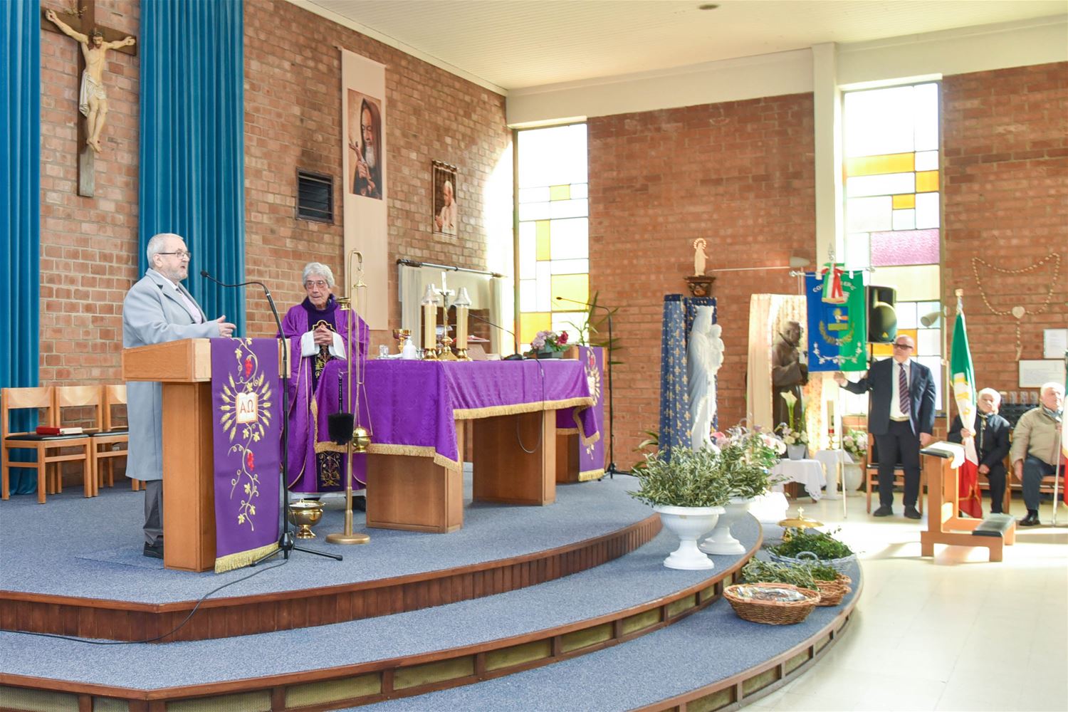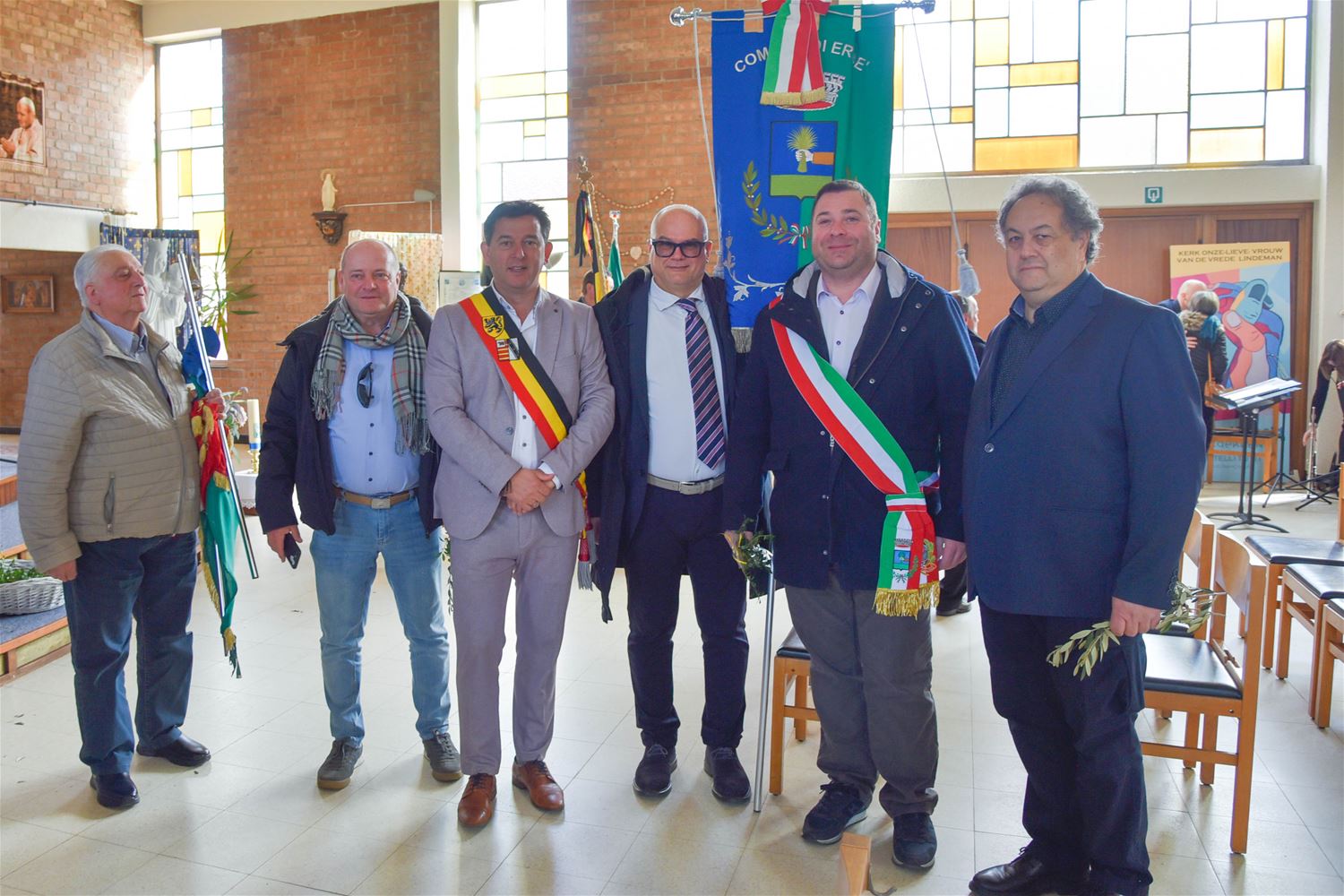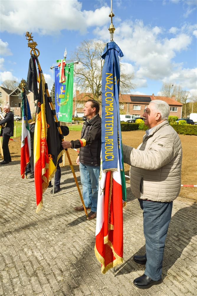 Palmzondag is zoals steeds een speciale dag in de wijk Lindeman. De Italiaanse vereniging ANCRI houdt dan een viering om de slachtoffers van oorlogen en arbeidsongevallen te herdenken, maar tegelijk staat die ook in het teken van vrede en verbroedering. Daarom was ook vandaag weer een delegatie van zustergemeente Erbè aanwezig, onder leiding van burgemeester Enrico Natali . Na de eucharistieviering, opgeluisterd door De Ware Vrienden, werden palmtakken uitgedeeld. Daarop trok het gezelschap in stoet naar het Volkerenplein. Er waren toespraken van burgemeester Mario Borremans, zijn collega Enrico Natali en Luciano Ferro van Ancri. De vredesboodschap klonk nu luider dan anders door. De harmonie speelde de nationale en Europese hymnes. Voor de aanwezigen volgde nog een feestprogramma. (foto’s David Amgad)88135