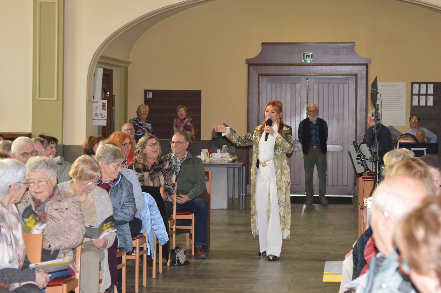 Er was heel wat volk opgedaagd in de Valentinuskerk in Berkenbos deze namiddag voor het concert met Lisa del Bo dat de parochie organiseerde. Zoals bekend vertolkt de populaire zangeres niet alleen haar hits als Liefde is een kaartspel en Vlinder maar heeft ze ook een speciaal programma met religieus geïnspireerde liederen. Ook daarvan heeft ze trouwens al verschillende CD’s uitgebracht. Lisa del Bo komt recht uit voor haar geloof en dat wil ze ook muzikaal uitdragen. Ze bracht vanmiddag een 15-tal nummers en het publiek kon die meezingen met de tekstboekjes die verspreid waren. Het concert werd dan ook bijzonder gesmaakt en met een stevig applaus gewaardeerd. (foto’s David Amgad)86856
