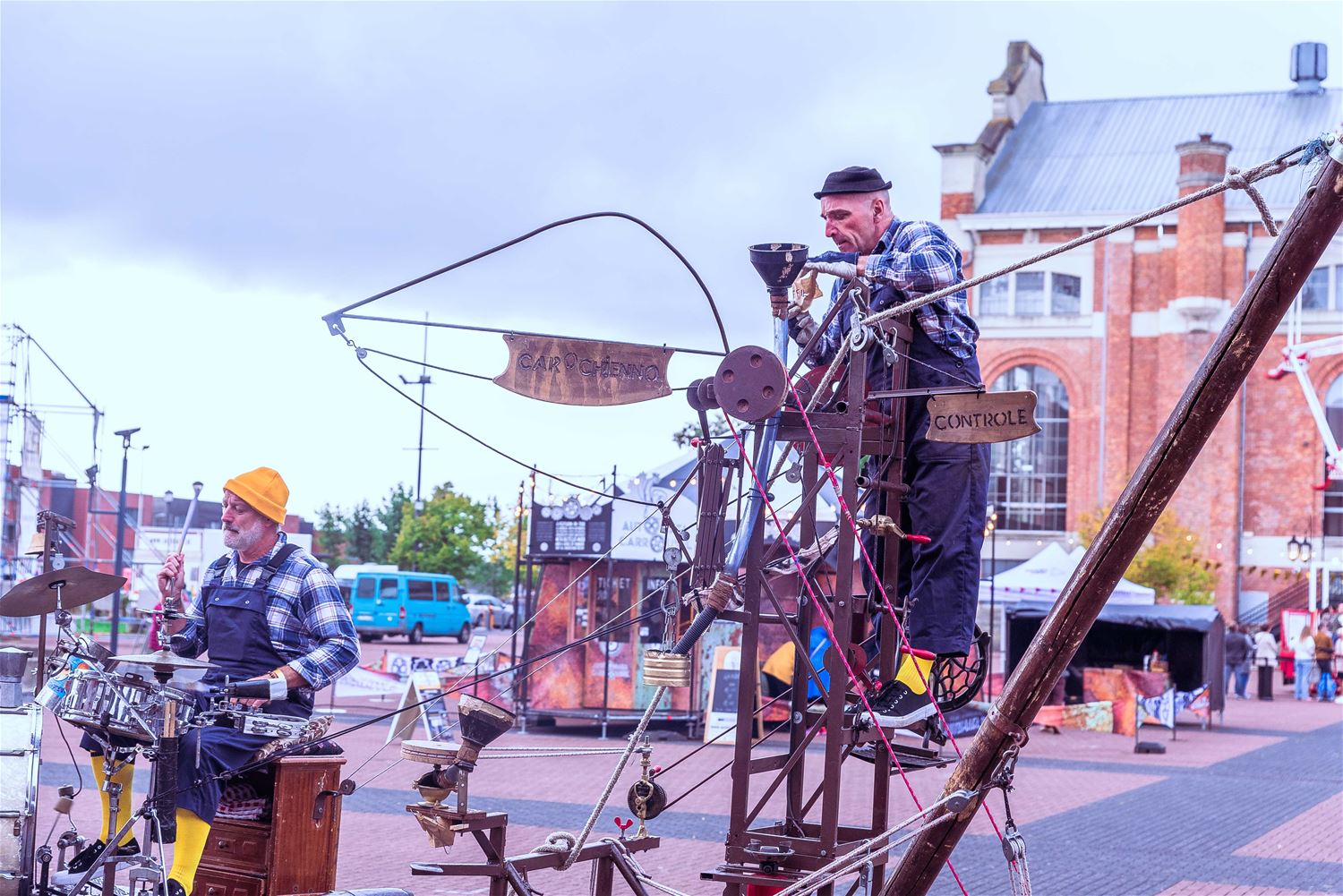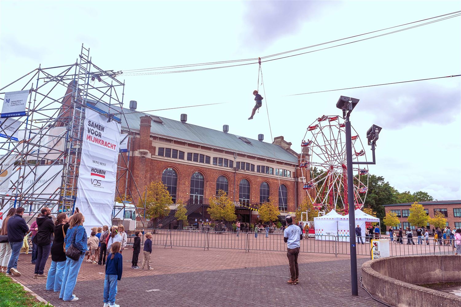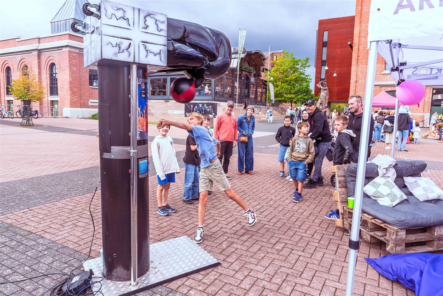 Terwijl de binnenvoorstellingen allemaal zowat uitverkocht waren, gebeurde er tijdens MIJN|KRACHT buiten op het plein ook enorm veel. Sportieve uitdagingen van het circuit, artistieke opdrachten van de academie, het jongerenwerk dat zich van zijn creatiefste kans toonde, miniatuurtheater, dans, muzikale optredens, het reuzenrad, Jef Cox die 60 meter boven de grond over een koord wandelde, maar gelukkig toch was vastgemaakt, visuele en auditieve acts, eten, drinken, … er gebeurde altijd wel iets voor jong en oud. Alleen jammer dat de regen even de pret kwam verstoren, wellicht was er bij beter weer nog meer volk geweest. (foto’s Ann Jordens)86404