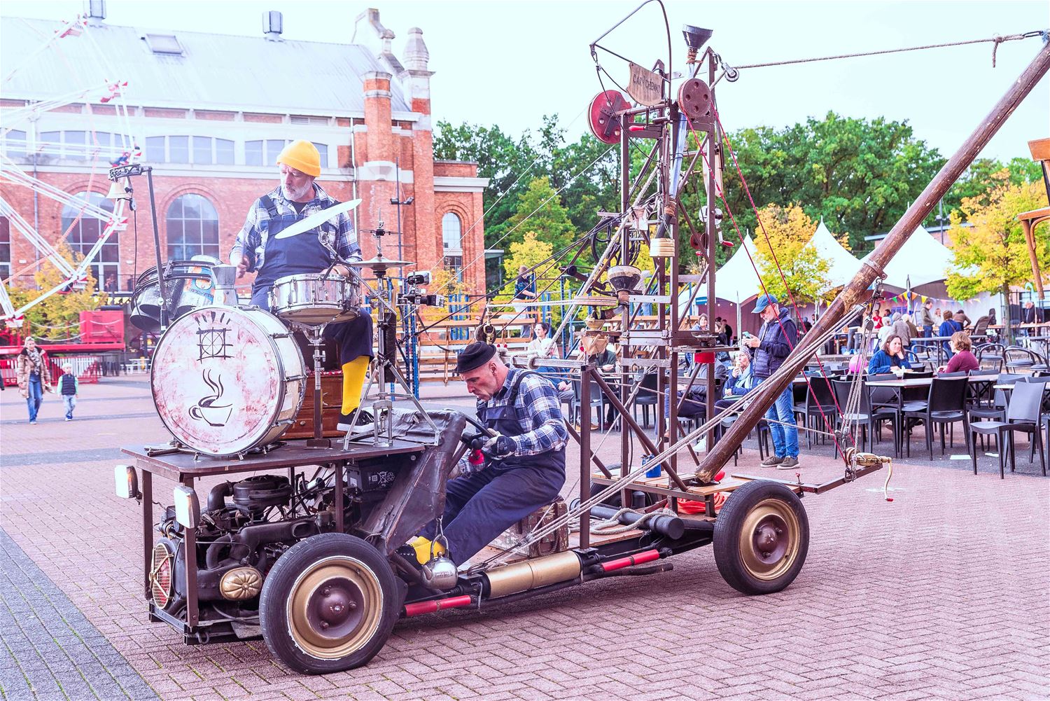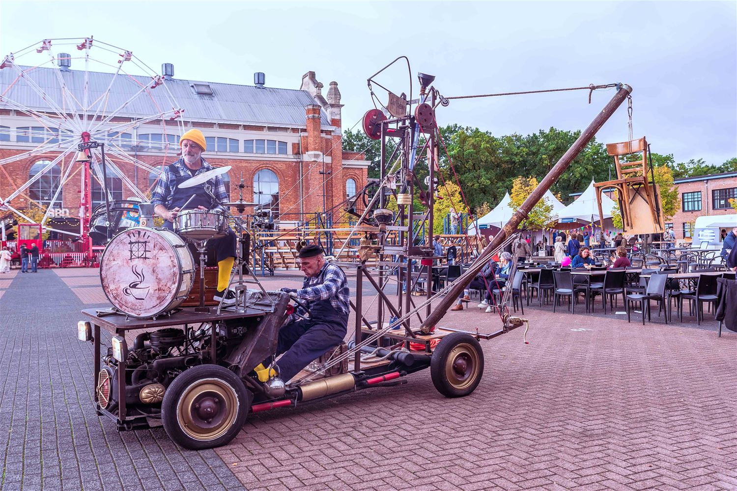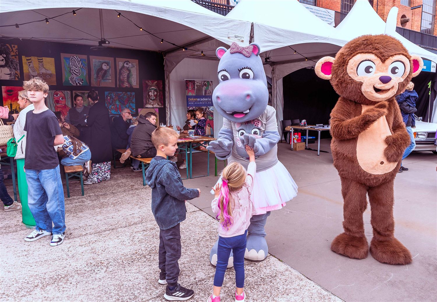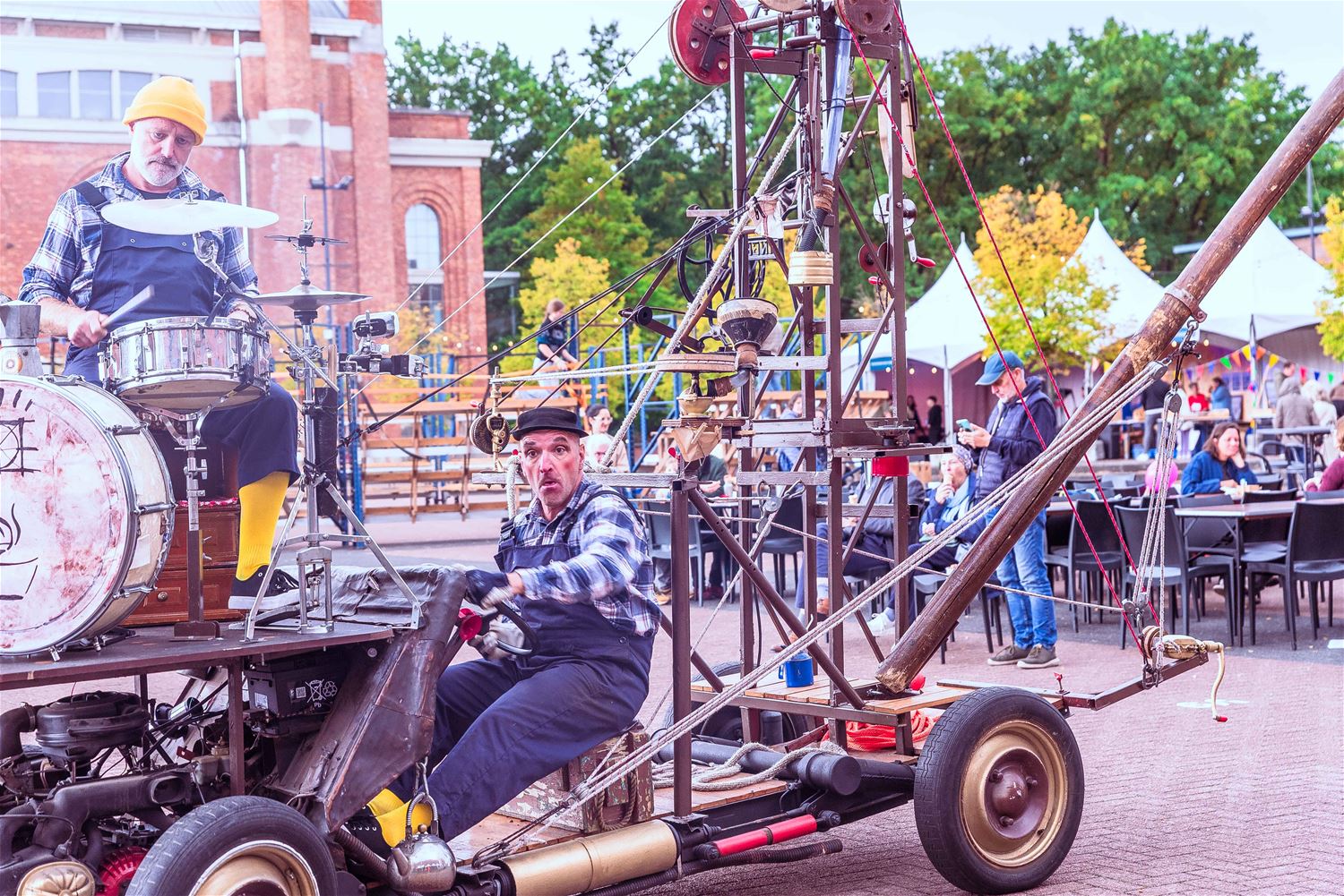 Terwijl de binnenvoorstellingen allemaal zowat uitverkocht waren, gebeurde er tijdens MIJN|KRACHT buiten op het plein ook enorm veel. Sportieve uitdagingen van het circuit, artistieke opdrachten van de academie, het jongerenwerk dat zich van zijn creatiefste kans toonde, miniatuurtheater, dans, muzikale optredens, het reuzenrad, Jef Cox die 60 meter boven de grond over een koord wandelde, maar gelukkig toch was vastgemaakt, visuele en auditieve acts, eten, drinken, … er gebeurde altijd wel iets voor jong en oud. Alleen jammer dat de regen even de pret kwam verstoren, wellicht was er bij beter weer nog meer volk geweest. (foto’s Ann Jordens)86404