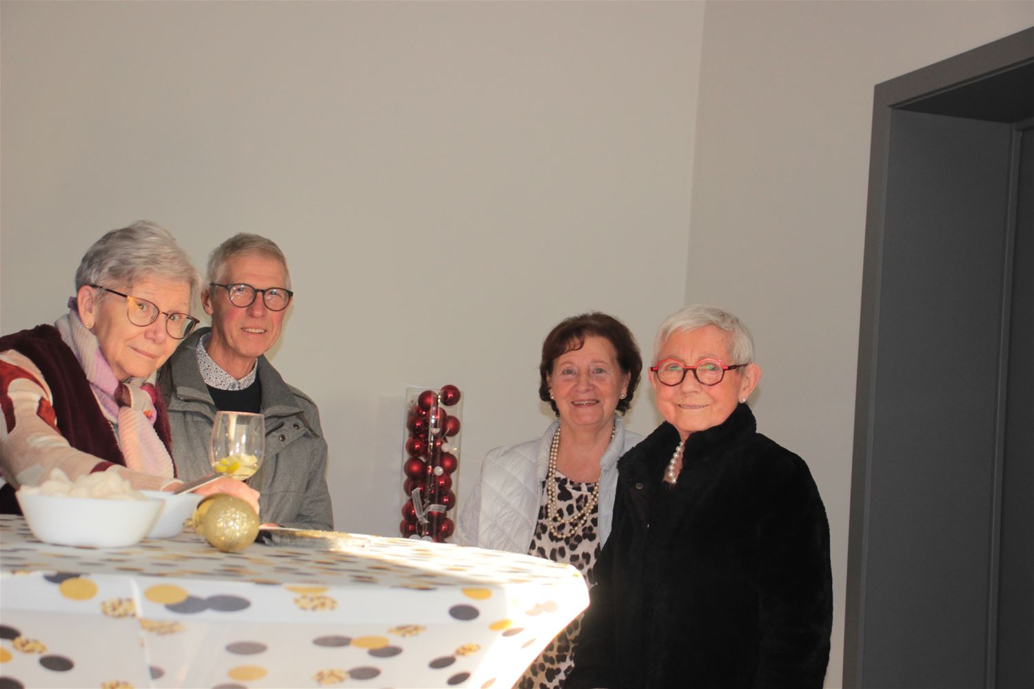 De bewoners van De Kapelanijen kwamen vandaag samen voor hun traditionele nieuwjaarsdrink. De raad van mede-zorgde voor de nodige dranken en hapjes en de sfeervolle aankleding. Het is ook een moment om wat bij te praten. Dat benadrukte ook bewoonster Betty in haar speech: het buurtfeest zorgt voor verbondenheid, de bewoners leren elkaar beter kennen en bevestigen het engagement om elkaar te helpen als het nodig is. Het is ook een ogenblik om nieuwtjes uit de residentie ter sprake te brengen, zoals huurders die komen en gaan, onderhoudswerkzaamheden, enz. (foto’s Louis Mentens)87524