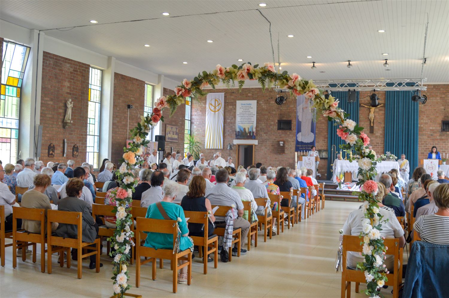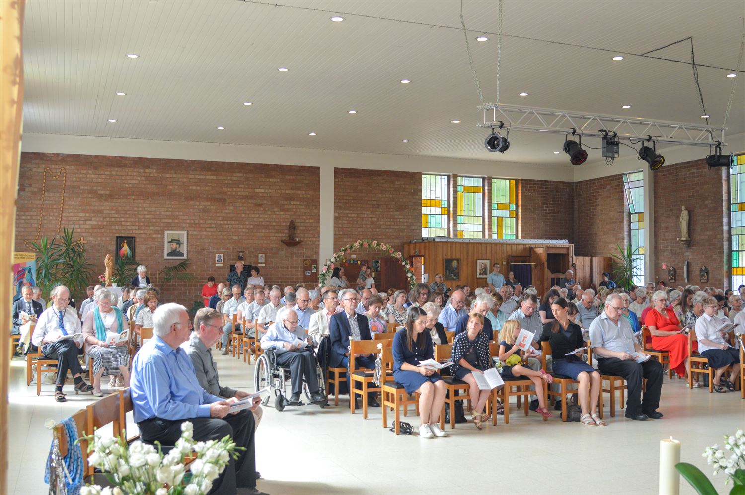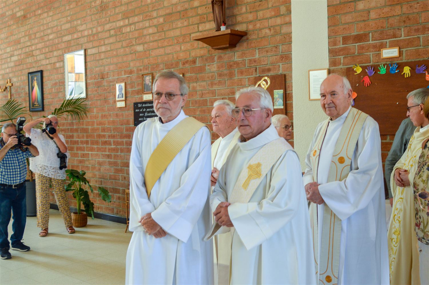 In een volle kerk parochiekerk O.L.V. van de Vrede in Lindeman werd deze voormiddag een feestelijke eucharistieviering opgedragen voor het priesterjubileum van pastoor Guido De Waegeneere. Het is deze maand 25 jaar geleden dat hij tot priester werd gewijd. De eucharistieviering werd voorgegaan door pastoor Guido samen met deken Mathieu Plessers, priesters en diakens en opgeluisterd door het zangkoor. De mis werd bijgewoond door gelovigen uit de verschillende Heusdense parochies en burgemeester Mario Borremans. Nadien was er nog een receptie in La Baracca waar iedereen de kans kreeg om de jubilaris persoonlijk te feliciteren. (foto’s David Amgad)85836