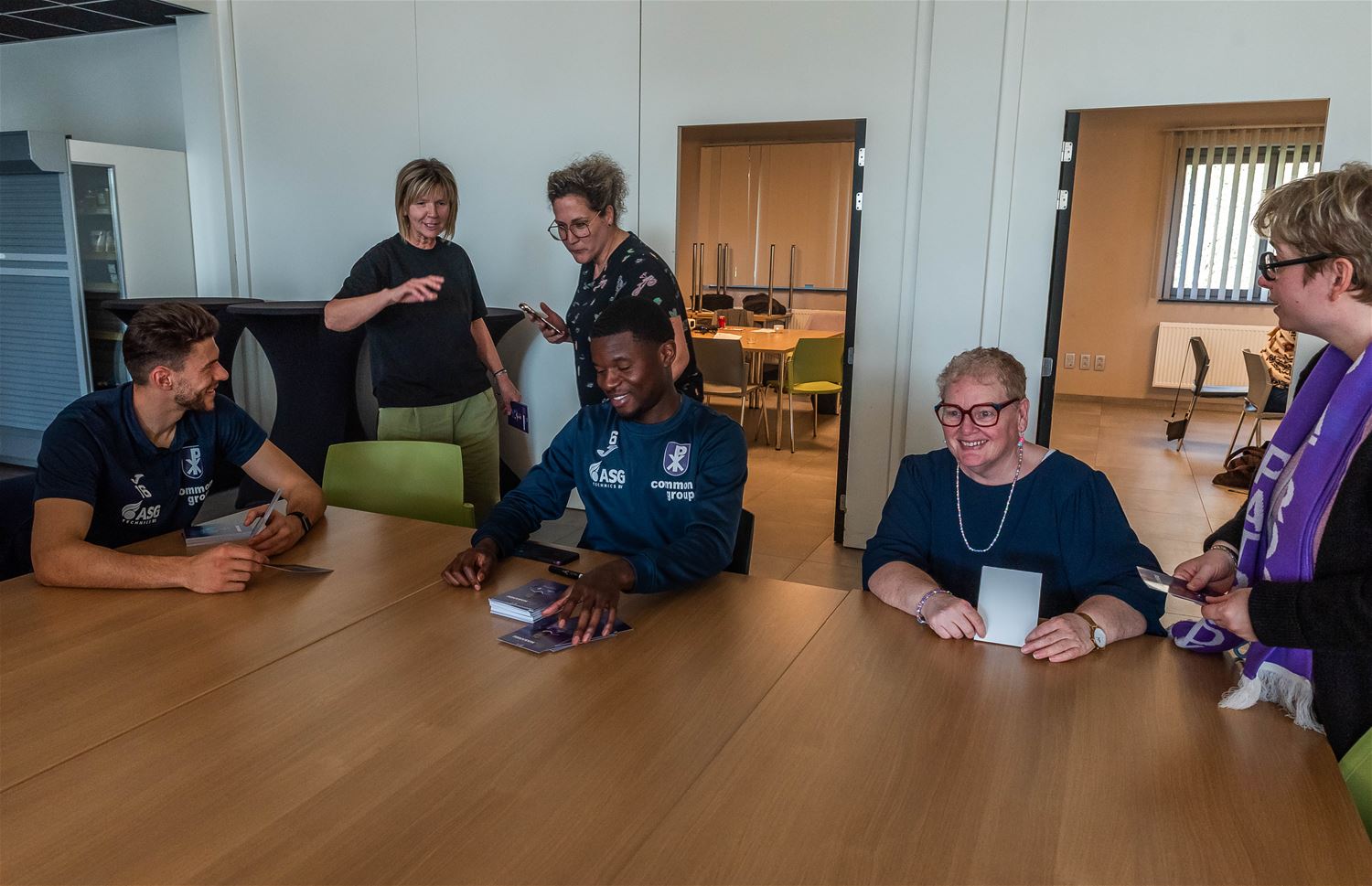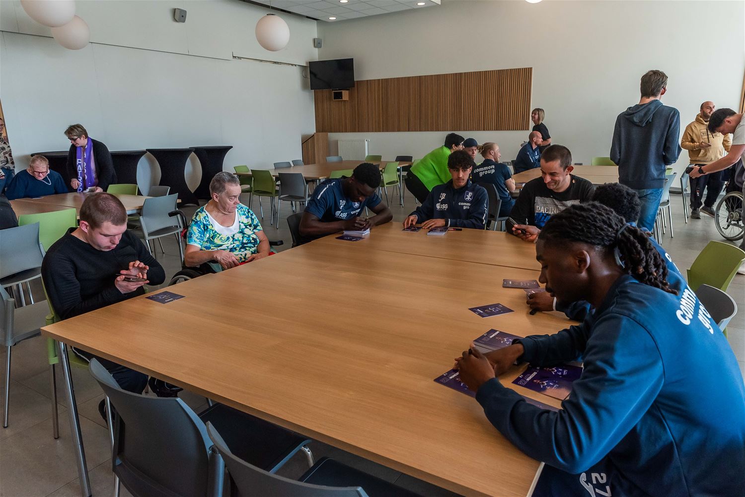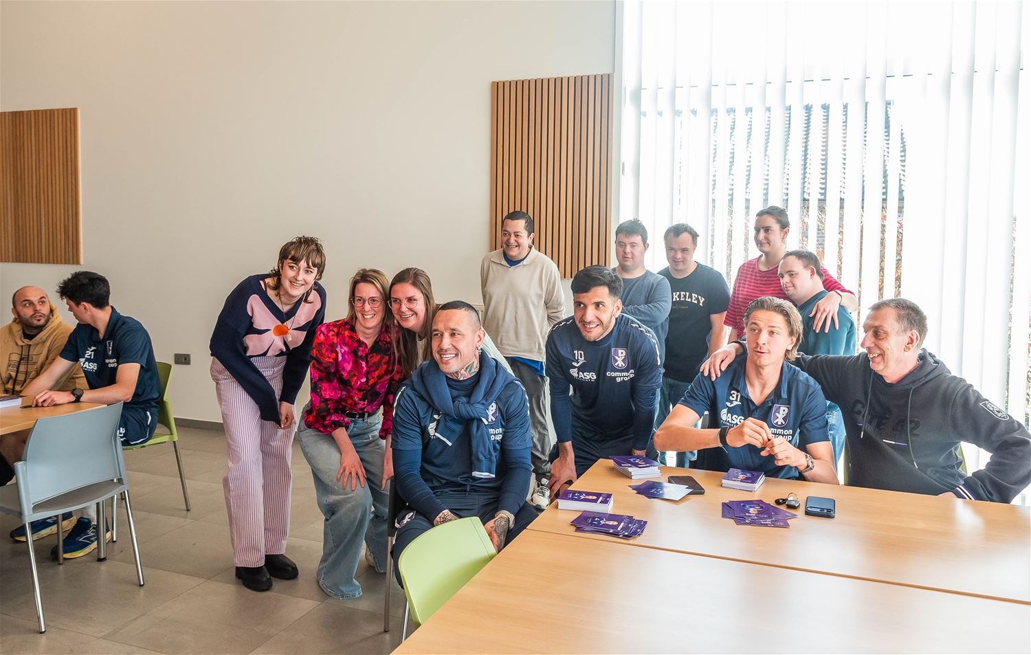 Het was vandaag een absolute topdag voor de gasten van ’t Weyerke. Ze kregen de spelers van voetbalclub Patro Eisden op bezoek. En jawel, ook de absolute topvedette Radja Nainggolan was erbij. Radja ging met iedereen op de foto, deelde foto’s en handtekeningen uit en bezorgde menig voetbalfreak een onvergetelijk moment. Als het aan de gasten (en heel wat medewerkers) van ’t Weyerke ligt, dan mag Patro volgend jaar zeker weer in de hoogste klasse spelen. (foto’s Ann Jordens)87929