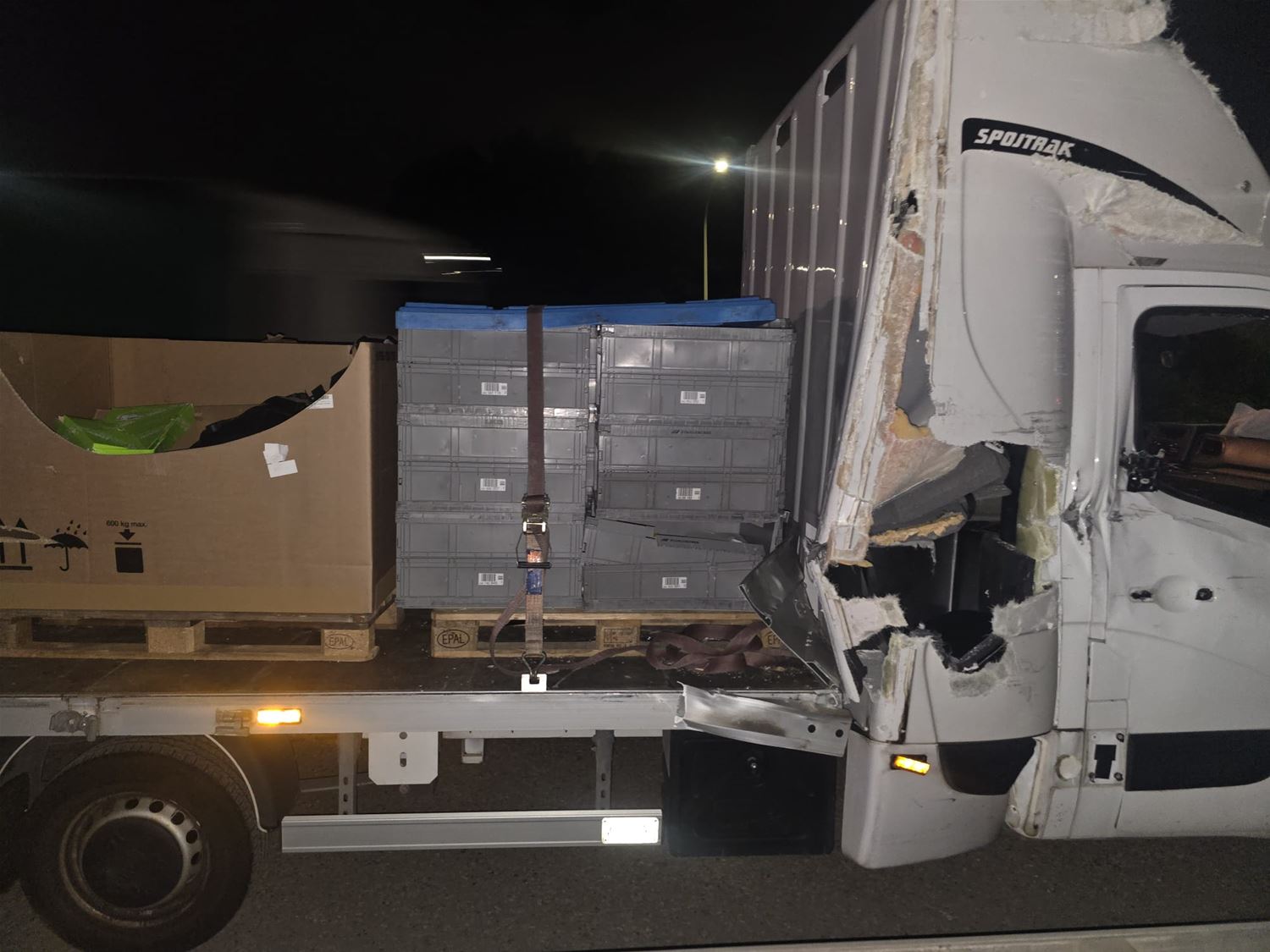Vanmorgen vroeg, rond half 5, is op de E314 richting Lummen een ongeval gebeurd. Ter hoogte van het Total tankstation in Zolder stond een vrachtwagen deels op de rijbaan, hij kon niet verder door geblokkeerde remmen. Een Poolse bestelwagen kon de vrachtwagen niet meer ontwijken en botste er achterop. Er vielen geen gewonden maar het was een behoorlijke ravage met brokstukken die verspreid lagen. Brandweer en takeldienst hadden de handen vol om alles op te ruimen.86316