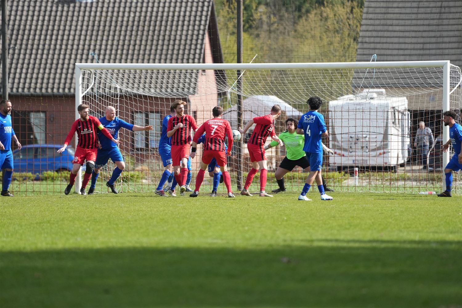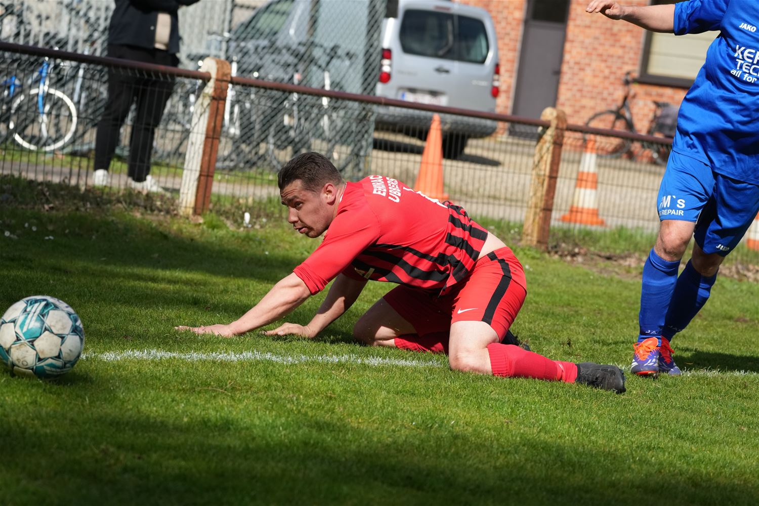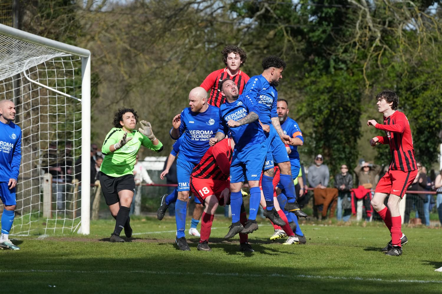In een zinderende bekerfinale voor 400 toeschouwers heeft RP Products de beker uiteindelijk tijdens de strafschoppen zien ontglippen. Zo werd Pool Keramo A de triomfator na een match die op zijn zachtst uitgedrukt bijzonder potig verliep. Al lang voor de aftrap hing er een echte cupsfeer rond het terrein van Eendracht Ubbersel. Alles was er klaar voor een bekerfeest en heel de partij lang hing er een kolkende sfeer. Bij momenten was het niet fraai, zeker niet tussen de lijnen. Er werd evenwel niet gescoord, hoewel de partij een kookpunt bereikte toen RP Products bij een 0-0 stand een doelpunt onterecht afgekeurd zag voor buitenspel. Zo kwamen er verlengingen. Daarin kwamen de bezoekers eerst 0-1 voor. RP Products maakte gelijk, volgens velen deze keer wel vanuit buitenspel. Gelijkspel dus ook na verlengingen en zo kwam het tot strafschoppen, waardoor deze bekerfinale werkelijk alles te bieden had. De spanning steeg ten top bij het nemen van de penalty’s. Die van Pool Keramo behielden het meest hun ‘cool’ en scoorden 4-2. En zo zagen ze bij RP Products met lede ogen de beker vertrekken richting Schoonbeek. Gelukkig behouden ze nog een grote kans om de titel binnen te halen. (foto’s Johan Put)88206