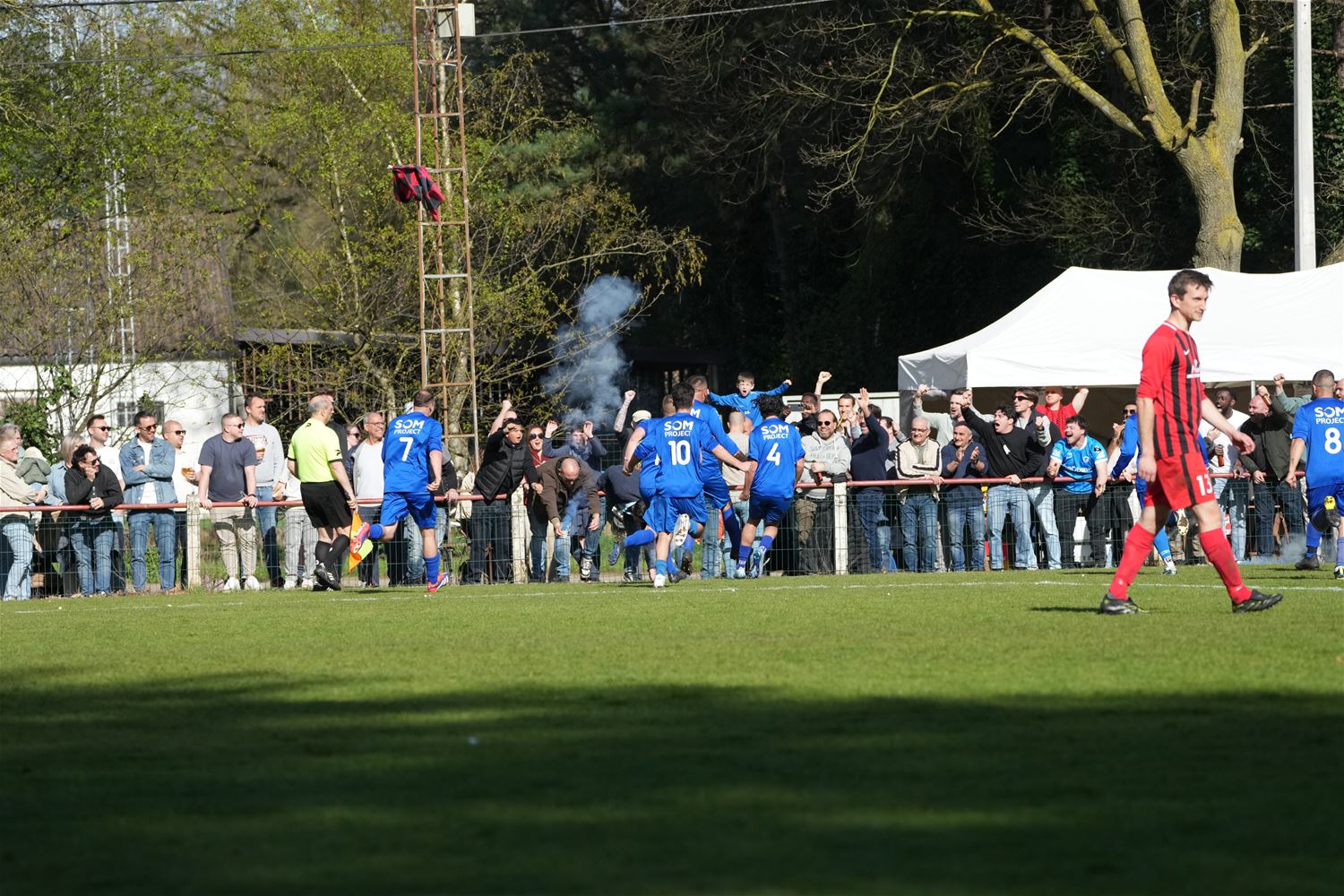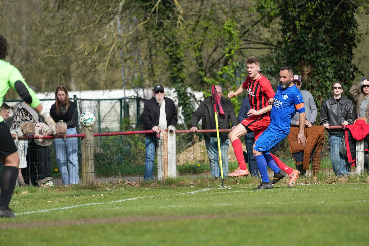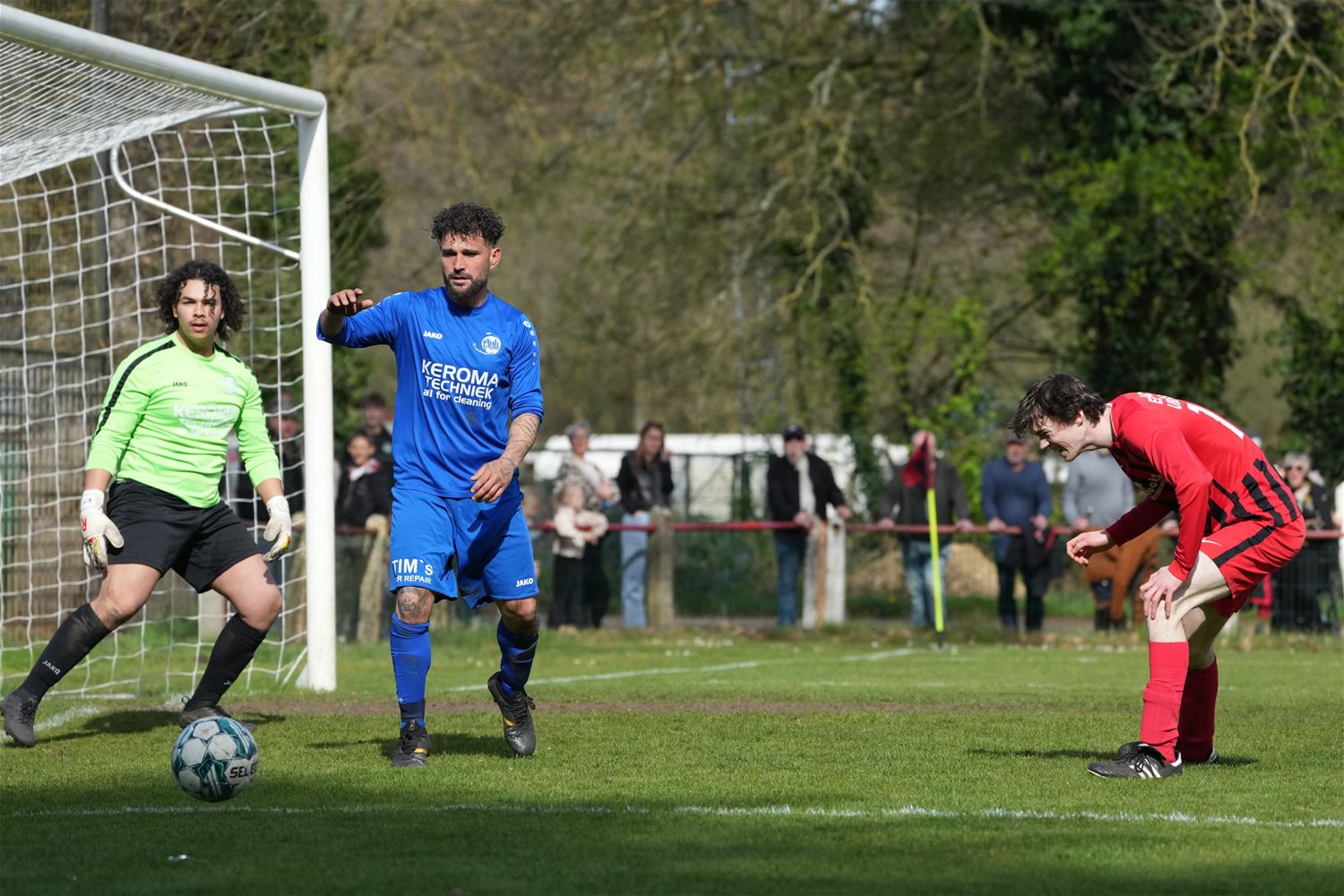 In een zinderende bekerfinale voor 400 toeschouwers heeft RP Products de beker uiteindelijk tijdens de strafschoppen zien ontglippen. Zo werd Pool Keramo A de triomfator na een match die op zijn zachtst uitgedrukt bijzonder potig verliep. Al lang voor de aftrap hing er een echte cupsfeer rond het terrein van Eendracht Ubbersel. Alles was er klaar voor een bekerfeest en heel de partij lang hing er een kolkende sfeer. Bij momenten was het niet fraai, zeker niet tussen de lijnen. Er werd evenwel niet gescoord, hoewel de partij een kookpunt bereikte toen RP Products bij een 0-0 stand een doelpunt onterecht afgekeurd zag voor buitenspel. Zo kwamen er verlengingen. Daarin kwamen de bezoekers eerst 0-1 voor. RP Products maakte gelijk, volgens velen deze keer wel vanuit buitenspel. Gelijkspel dus ook na verlengingen en zo kwam het tot strafschoppen, waardoor deze bekerfinale werkelijk alles te bieden had. De spanning steeg ten top bij het nemen van de penalty’s. Die van Pool Keramo behielden het meest hun ‘cool’ en scoorden 4-2. En zo zagen ze bij RP Products met lede ogen de beker vertrekken richting Schoonbeek. Gelukkig behouden ze nog een grote kans om de titel binnen te halen. (foto’s Johan Put)88206