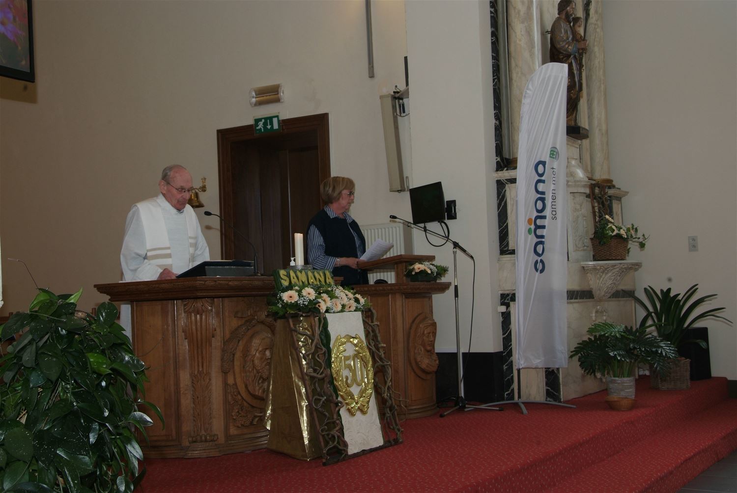 Een feestelijke dag vandaag in Eversel want daar vierde Samana Eversel zijn 50ste verjaardag. Het vroegere Ziekenzorg biedt heel het jaar door geregeld activiteiten aan voor de leden of staat klaar voor wie nood heeft aan een babbel of bezoek. De feestelijkheden startten vandaag met een eucharistieviering. Daarna schoven 79 genodigden aan voor een fijne maaltijd. Burgemeester Mario Borremans kwam de jubilerende vereniging feliciteren met een cheque van het lokaal bestuur. (foto’s Rudi Rykers)88116