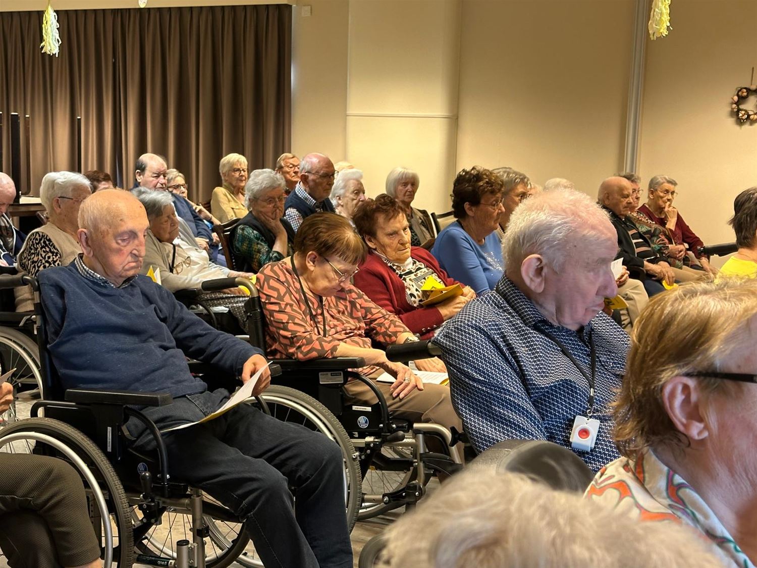 Woonzorgcentrum Hof ter Bloemen organiseert rond belangrijke momenten altijd mis- en andere vieringen. Gisteren stond een paasviering op het programma. Het seniorenkoor Singhet Scone zorgde voor een sfeervolle muzikale begeleiding onder leiding van dirigent Raymond Remans en aan de piano Guido Leenders. Voor de bewoners waren het mooie momenten. (foto’s Christiane Vos)88225