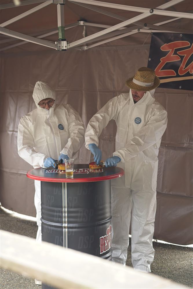 Er liepen mensen in witte pakken rond in café Etalage vandaag. Was er een misdaad gepleegd? Een gevaarlijke situatie ontstaan? Niet echt, maar wel een niet alledaagse uitdaging: de Surströmming Challenge. Surströmming is een Zweeds gerecht van gegiste oostzeeharing. Tijdens het gisten ontstaan organische zwavelverbindingen die een geur verspreiden zoals die van rotte eieren, of een stinkbom. De blikken werden dan ook niet binnen geopend, want dan zou de geur dagenlang blijven hangen. En ja, enkele dapperen waagden het om de haring door te slikken. Of ze die ook binnen hebben gehouden en hoeveel pinten nodig waren om na te spoelen heeft onze fotograaf tijdens zijn vlucht naar buiten niet meer kunnen opvangen. (foto’s Johan Put)86801