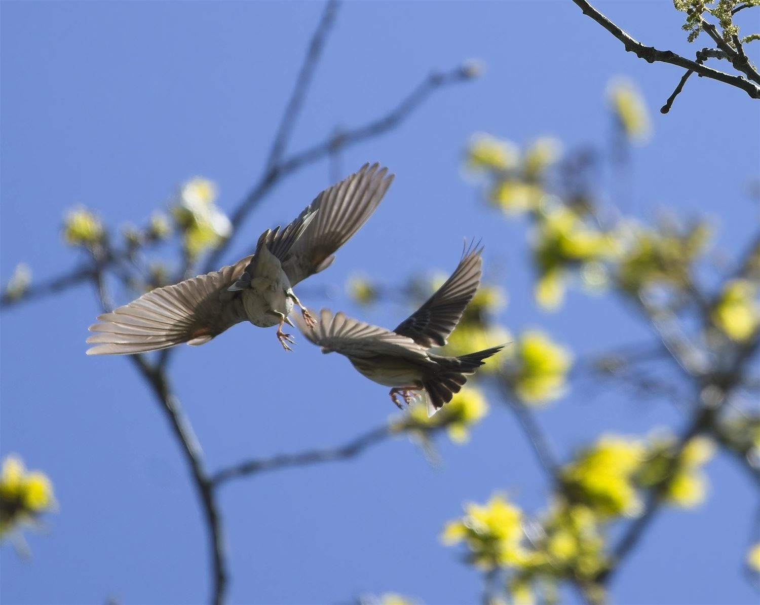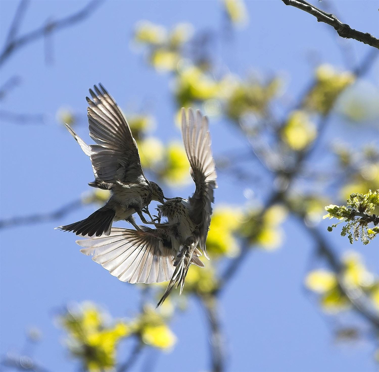 Als twee rivaliserende mannetjes boompiepers het tegen elkaar opnemen, kan het er stevig aan toegaan. Johan Put slaagde er in om zo’n gevecht in beeld te brengen. 88358
