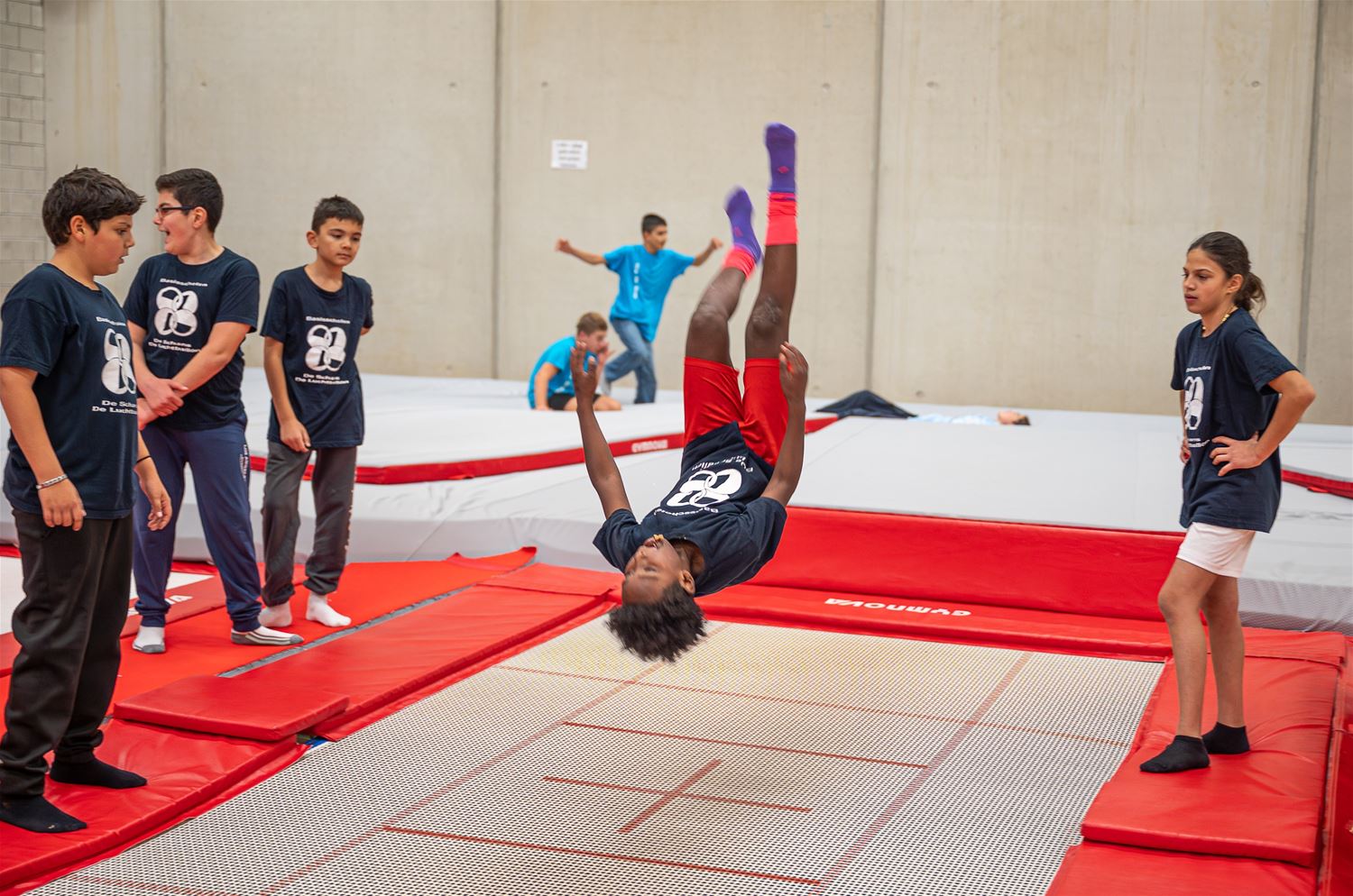 Vandaag was het de eerste dag van de sportbeurs voor de lagere scholen. Gespreid over twee dagen krijgen 2.200 leerlingen van 12 lagere scholen de kans om met allerlei sporten en spelen kennis te maken daarbij geholpen door deskundige begeleiders en trainers. Vandaag kwam de eerste groep afgezakt naar de Velodroom en het terrein aan het openlucht zwembad. Vooral voor de buitenactiviteiten was het bijzonder guur, maar dat lieten de kranige jongeren zich niet aangaan. Ze kregen trouwens een breed gamma aan sporten aangeboden, ’t was soms moeilijk kiezen. Voor morgen zijn warmere temperaturen voorspeld. (foto’s Roman Martyka)86435