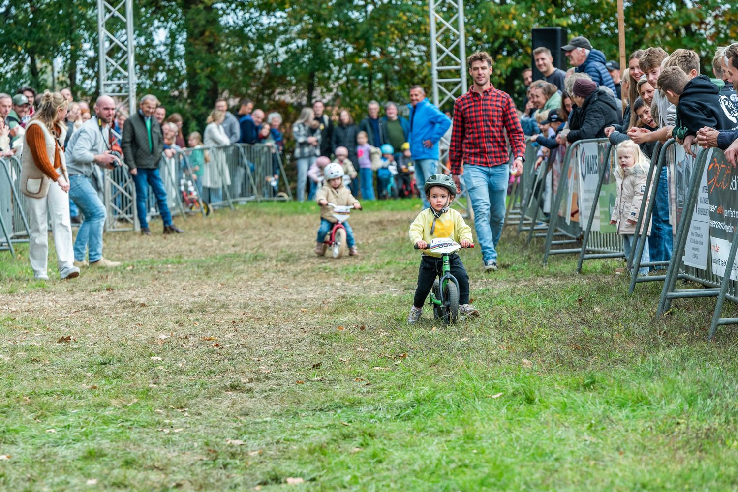 Eén van de hoogtepunten van de tweedaagse veldrijden van wielerclub Berg-Op Eversel, was de afsluiter van vandaag: het wereldkampioenschap loopfietsen, een organisatie samen met de Gezinsbond Bolderberg. Kleuters mochten in verschillende leeftijdscategorieën hun eigen wedstrijden betwisten, daarbij luid aangemoedigd door familie en supporters. Er waren enkele valse starts maar iedereen heeft glorierijk de finish gehaald. Daar wachtte een kleurrijk molentje als trofee. Misschien zien we sommigen over een aantal jaren terug bij de andere wedstrijden ... (video en foto's Ann Jordens)86657