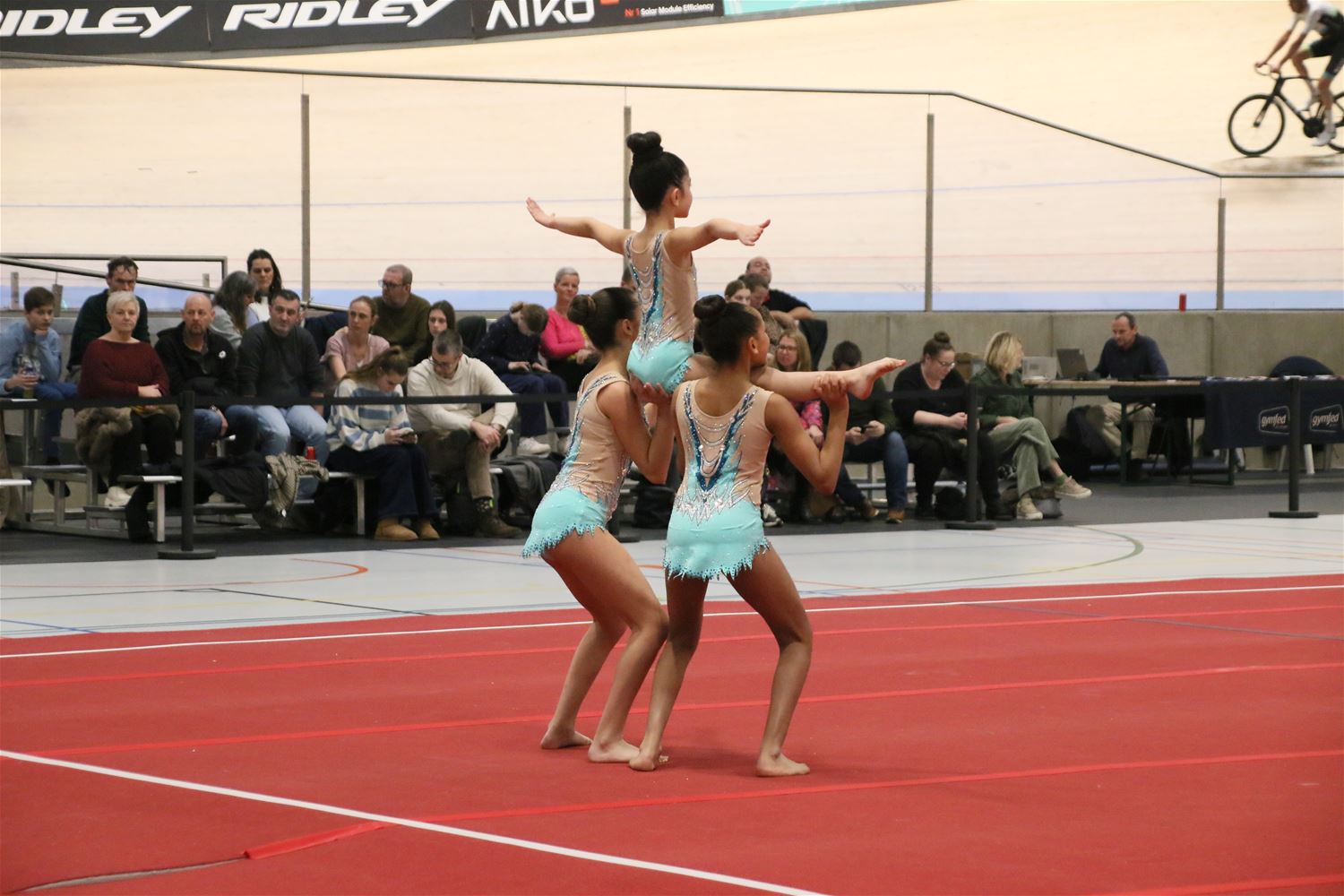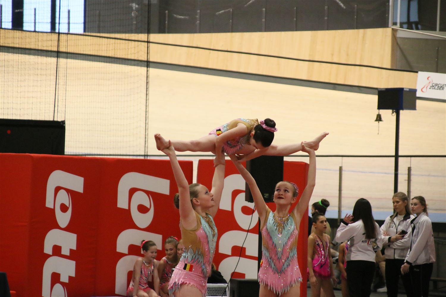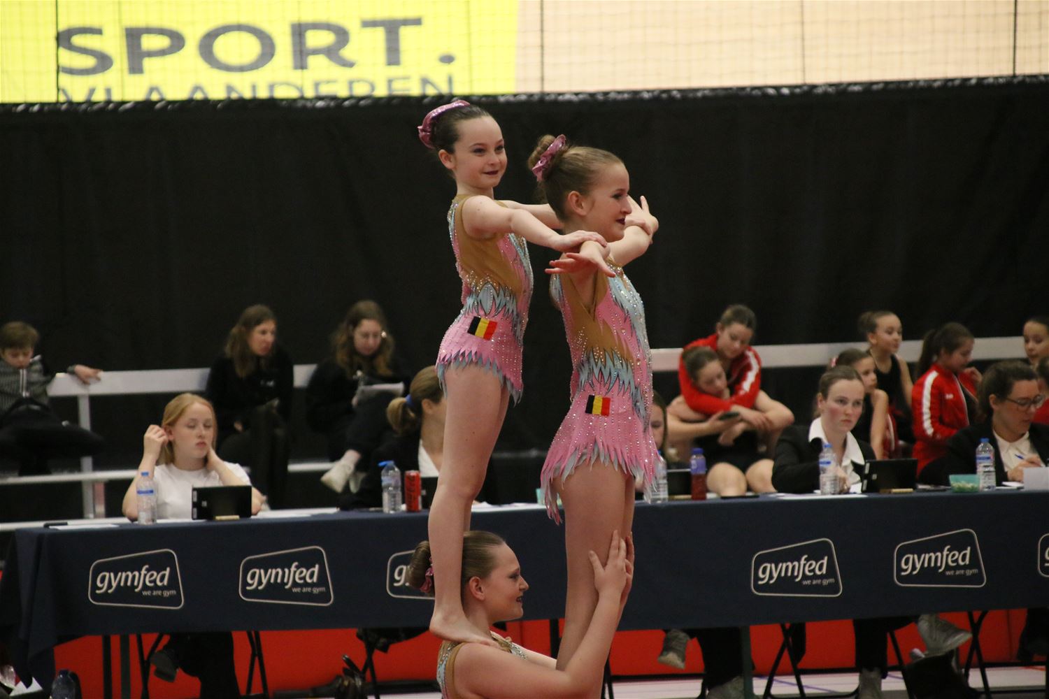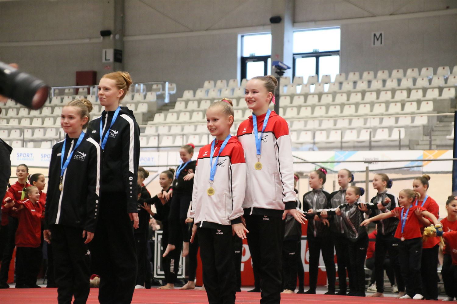 Op de eerste dag van het acro-tornooi voor recreanten dat Moed en Volharding in de Velodroom organiseert viel er al heel wat te beleven. Het publiek was bijzonder talrijk aanwezig en kreeg prachtige acro-nummers voorgeschoteld. Ook de allerjongste deelnemers dwongen bewondering af met hetgeen zij al op de mat presteerden. Overigens gaat het hier om gymnasten die tussen 2 en 5 uur per week trainen. En de ultieme beloning voor de jonge deelnemers was natuurlijk de medaille die aan het einde wachtte. Vandaag waren er drie sessies, morgen staan er nog twee op het programma. (foto’s Kyano Liefsoens)87844