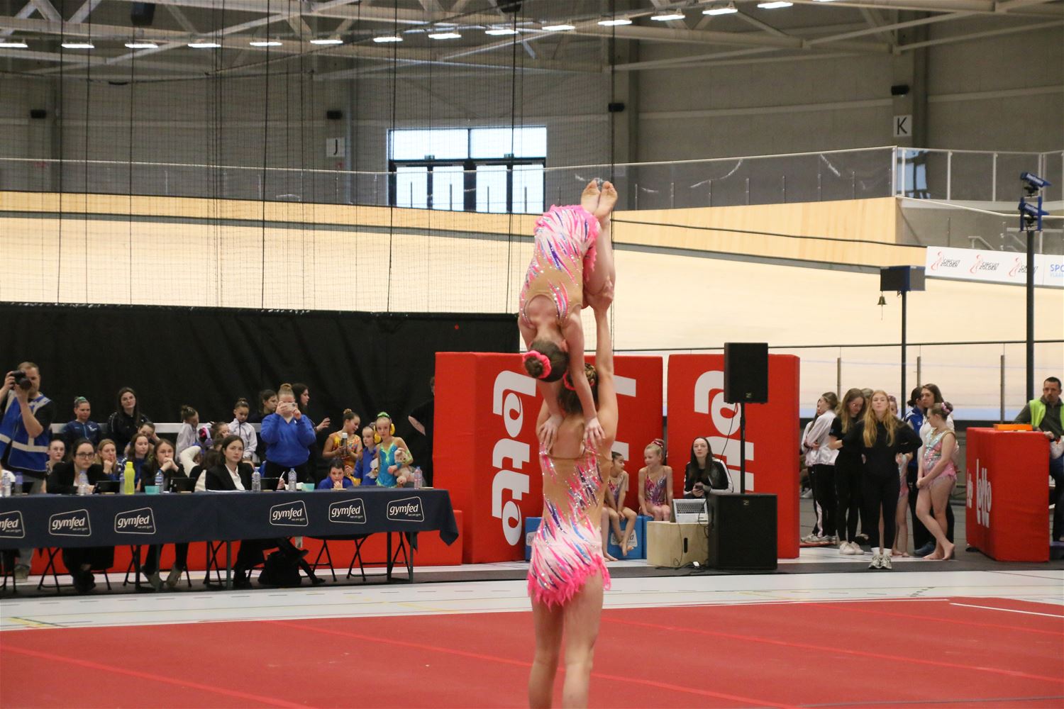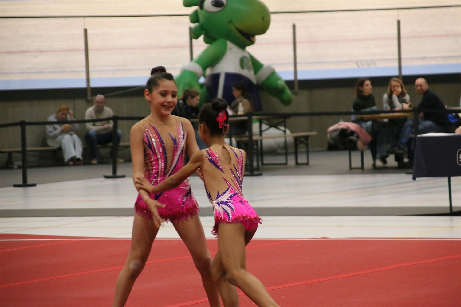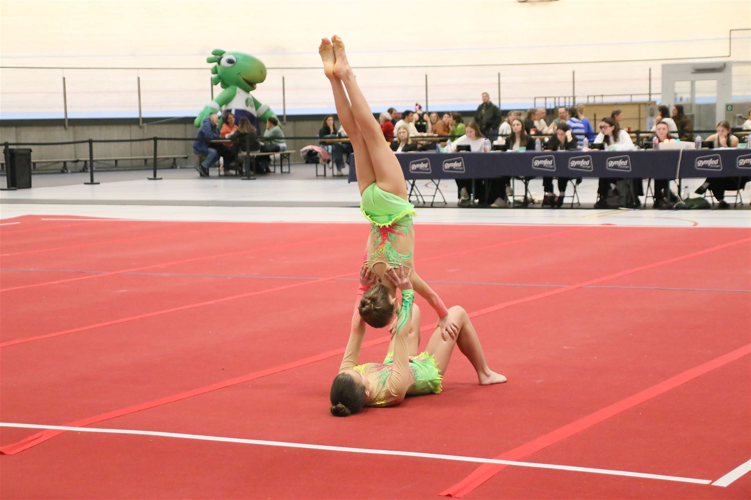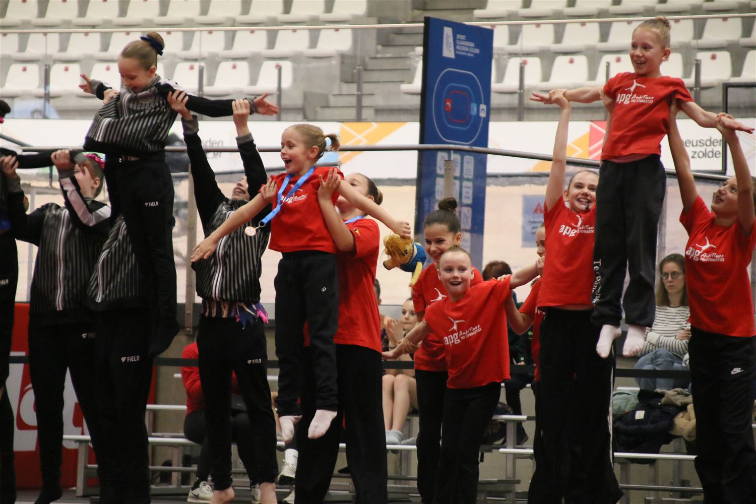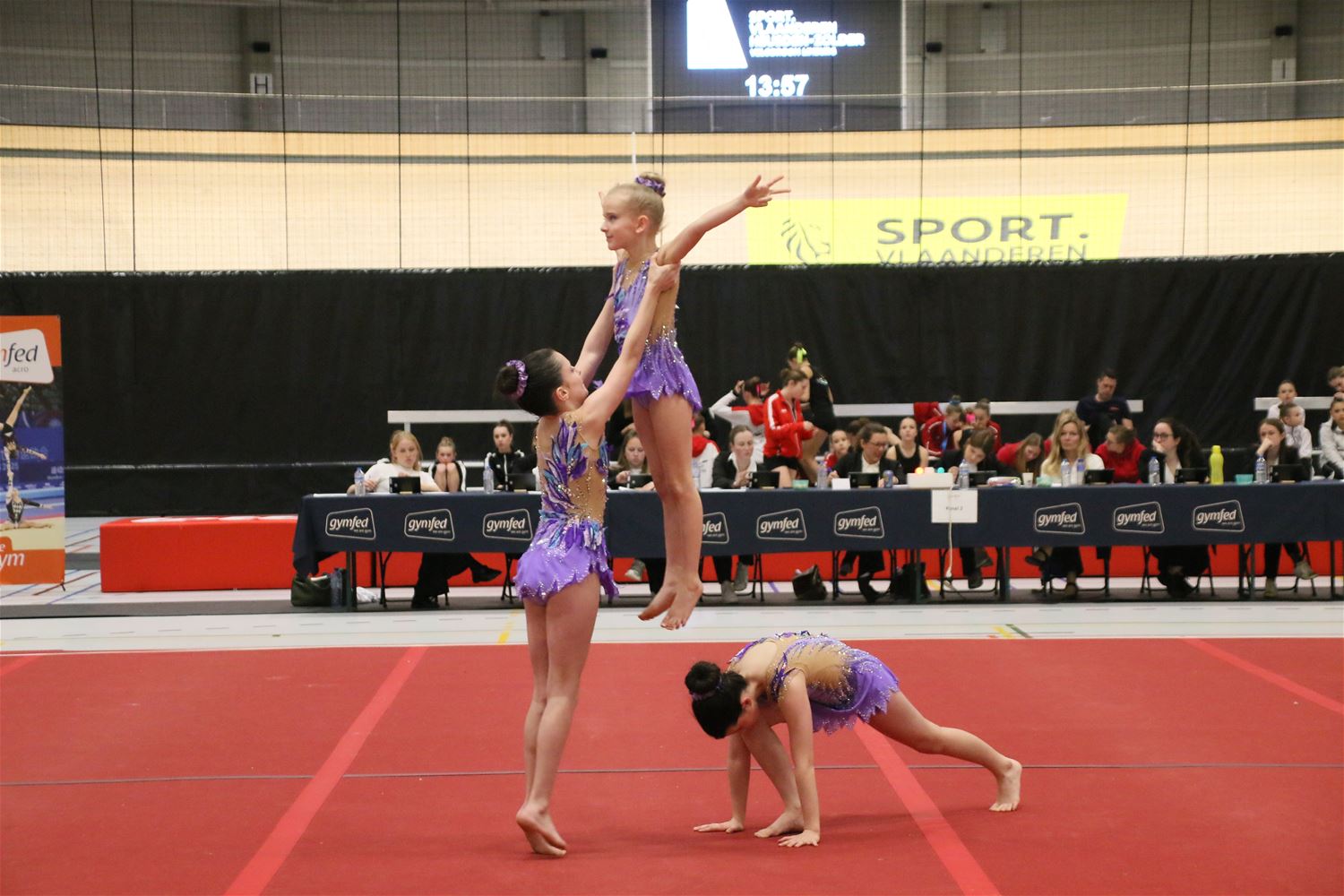 Op de eerste dag van het acro-tornooi voor recreanten dat Moed en Volharding in de Velodroom organiseert viel er al heel wat te beleven. Het publiek was bijzonder talrijk aanwezig en kreeg prachtige acro-nummers voorgeschoteld. Ook de allerjongste deelnemers dwongen bewondering af met hetgeen zij al op de mat presteerden. Overigens gaat het hier om gymnasten die tussen 2 en 5 uur per week trainen. En de ultieme beloning voor de jonge deelnemers was natuurlijk de medaille die aan het einde wachtte. Vandaag waren er drie sessies, morgen staan er nog twee op het programma. (foto’s Kyano Liefsoens)87844
