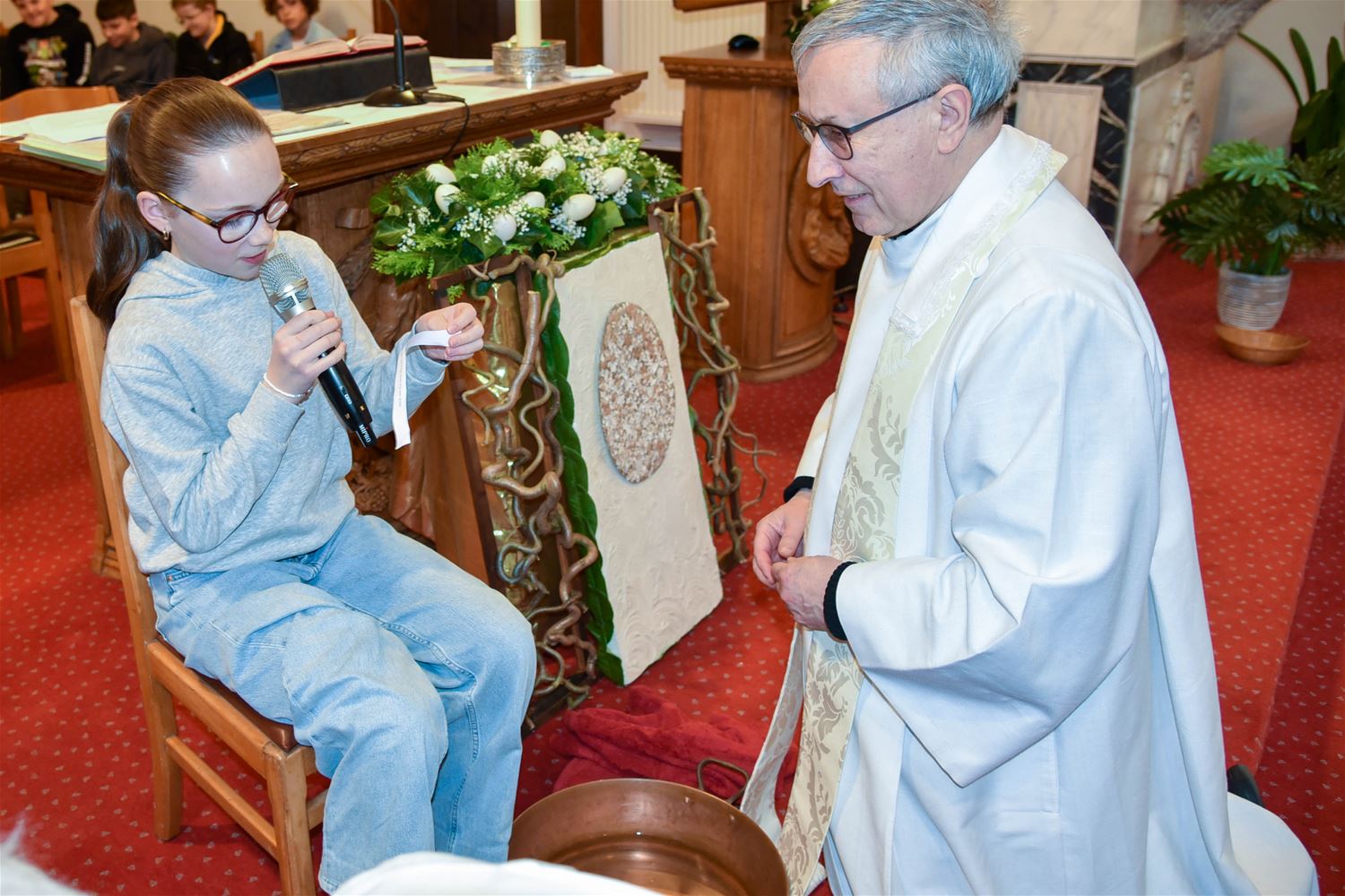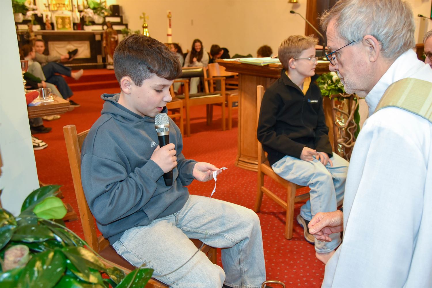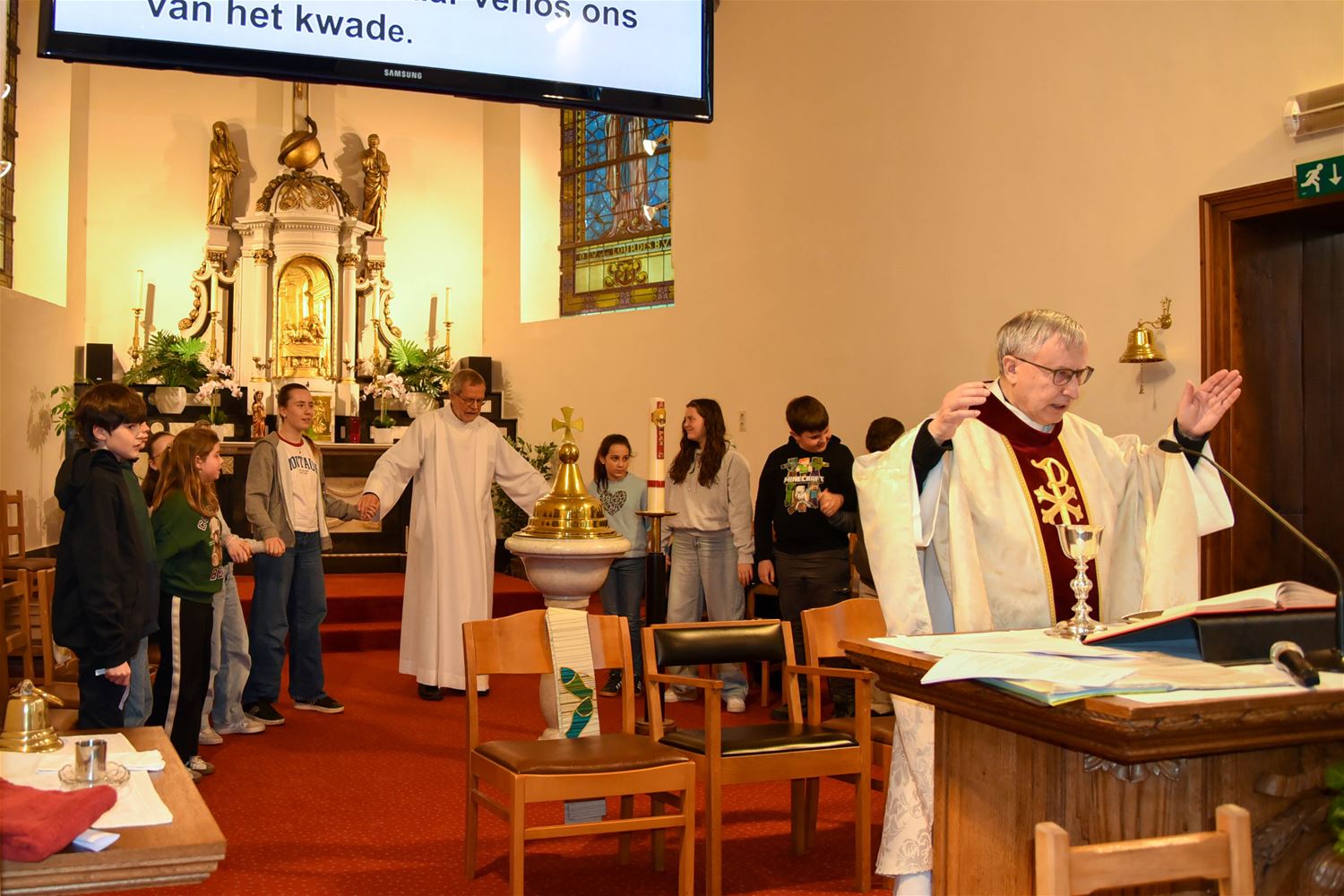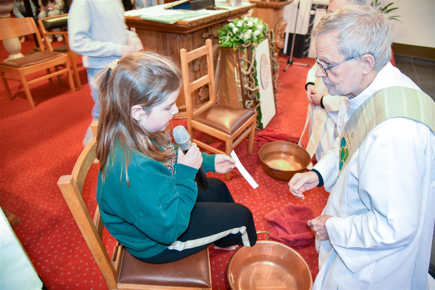 In de kerk van Eversel hebben vanavond enkele tientallen gelovigen de Witte Donderdag viering bijgewoond. Die werd voorgegaan door pastoor Guido De Waegeneere en diaken Ward Ceyssens. Ook de vormelingen hadden hun rol in de viering en pastoor en diaken gingen over tot hun symbolische voetenwassing, verwijzend naar het Laatste Avondmaal. Daarmee zijn de paasdagen ingezet. (foto’s David Amgad)