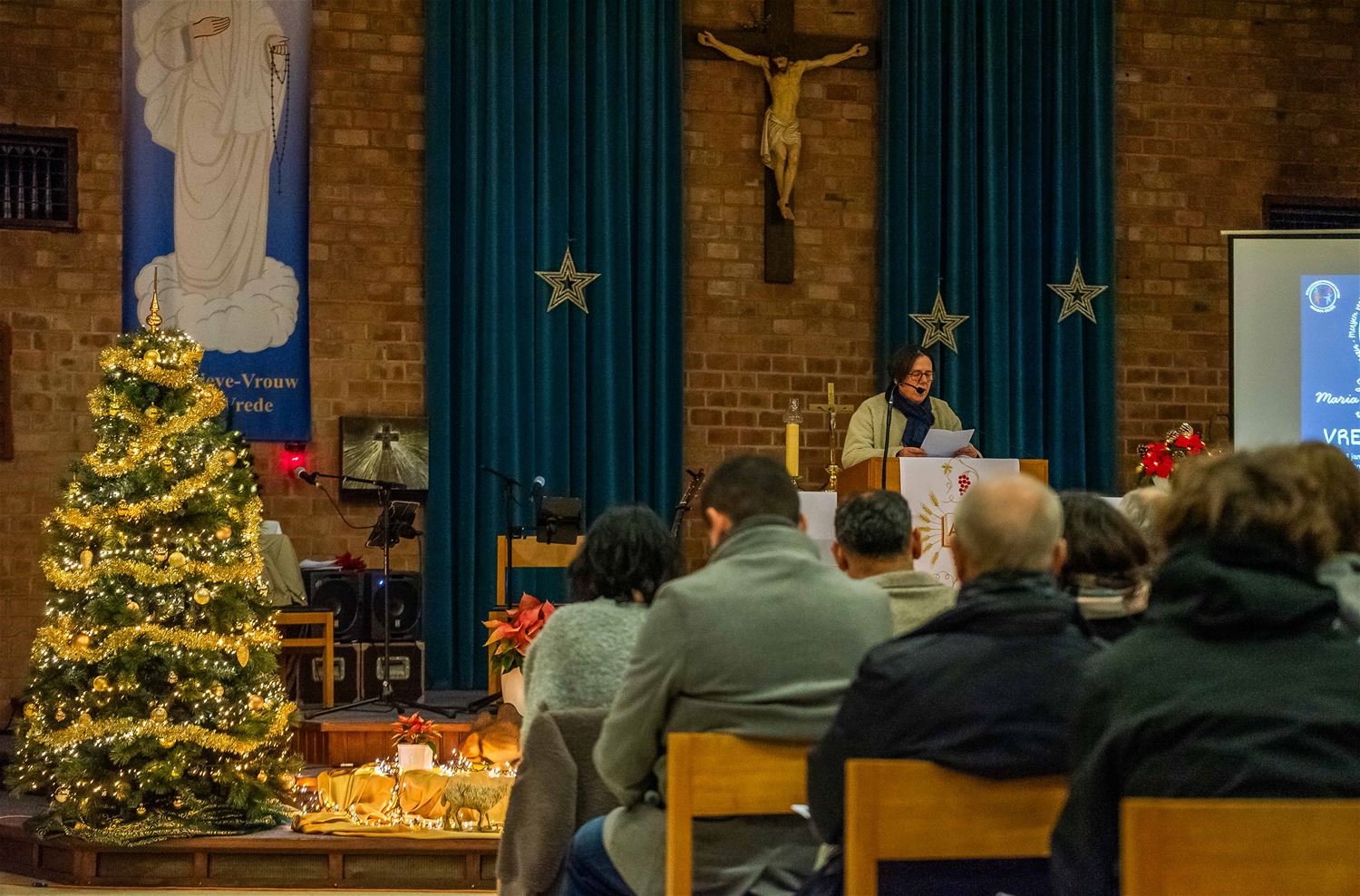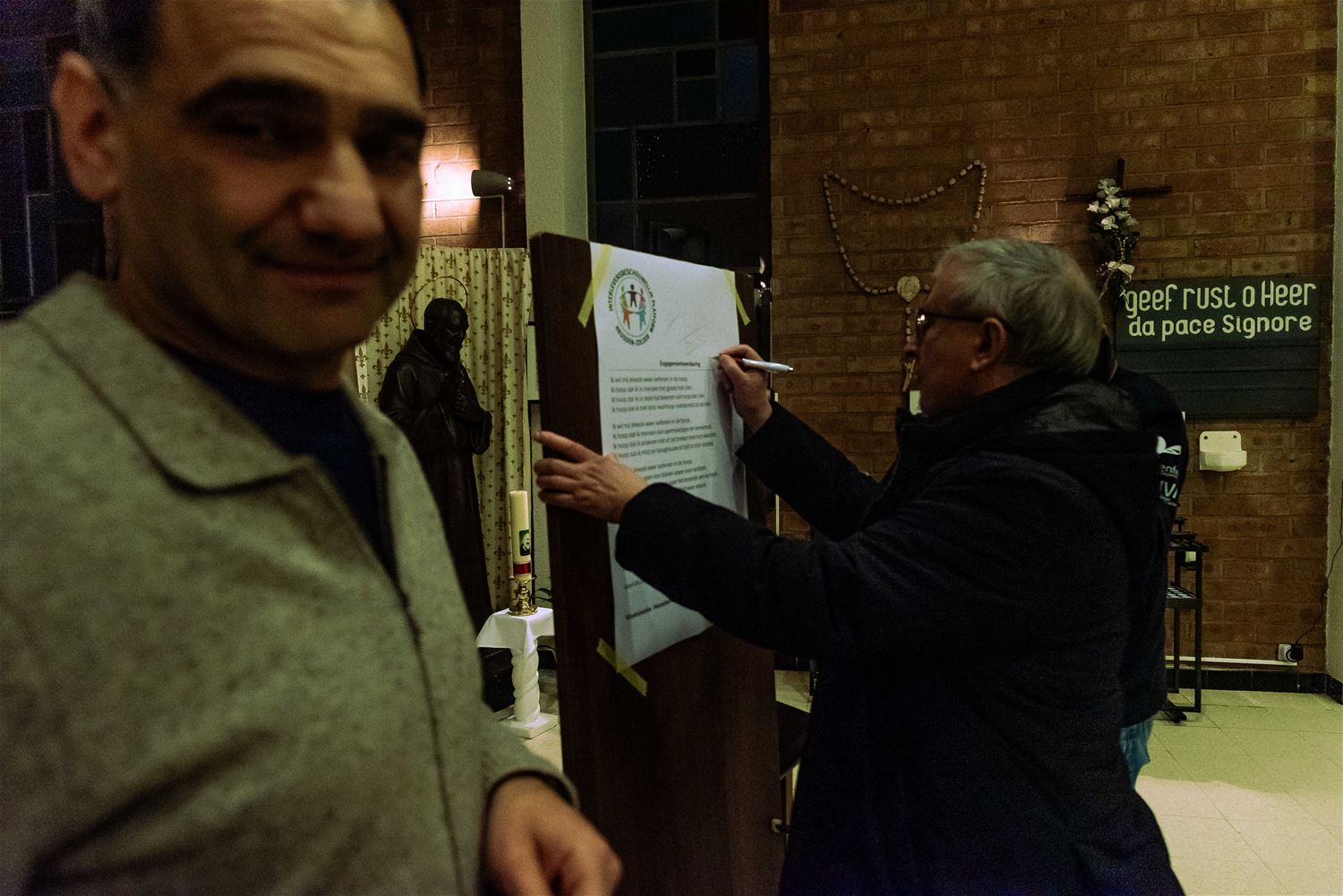De OLV kerk van Lindeman was goed gevuld voor de jaarlijkse vredeswake die in het teken stond van ‘Samen met Maria-Meryem voor vrede’. Christenen, islamieten en alevieten kwamen samen om Maria te eren, een naam die in al deze godsdiensten voorkomt. Er werden teksten voorgelezen en er werd gezongen. Daarna werd er een gemeenschappelijke verklaring met een engagement voorgelezen en ondertekend. Elke aanwezige kreeg een aandenken, en na de vredeswake werd een receptie aangeboden door parochie. (foto’s Ann Jordens)87390