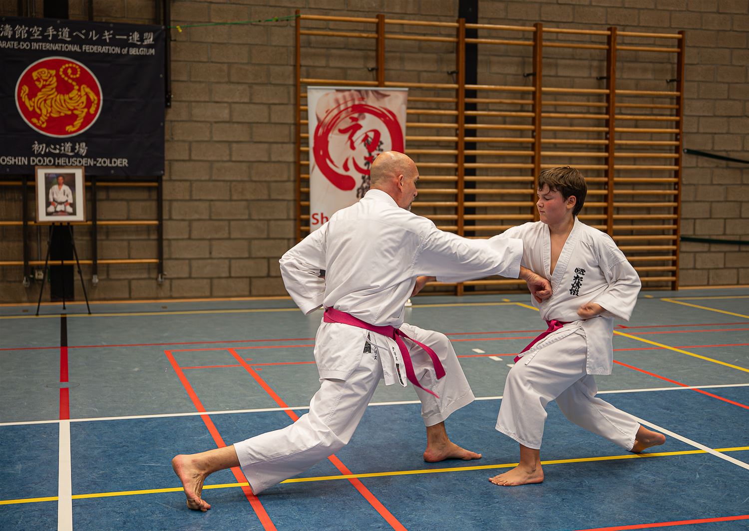 Een bijzonder moment vanavond bij karateclub Shoshin dojo in Bolderberg. De leerlingen van de dojo hebben allemaal een roze gordel omgord. En dat in het kader van de wereldwijde Breast Cancer Awareness Month Oktober. Ook bij Shosin dojo vinden ze dat niemand in zijn strijd tegen borstkanker alleen hoeft te staan. Maar in die strijd zijn ook doorzettingsvermogen, verbondenheid en veerkracht nodig, waarden die ook hoog aangeschreven staan bij de karateclub. De leerlingen dragen onder de noemer Pink Belt of Solidarity: Fighting as One, een maand lang een roze obi (gordel) als teken van solidariteit met iedereen die met kanker in aanraking is gekomen of er zelf tegen vecht, het overwonnen heeft, of een dierbare kent die getroffen is. (foto’s Roman Martyka)