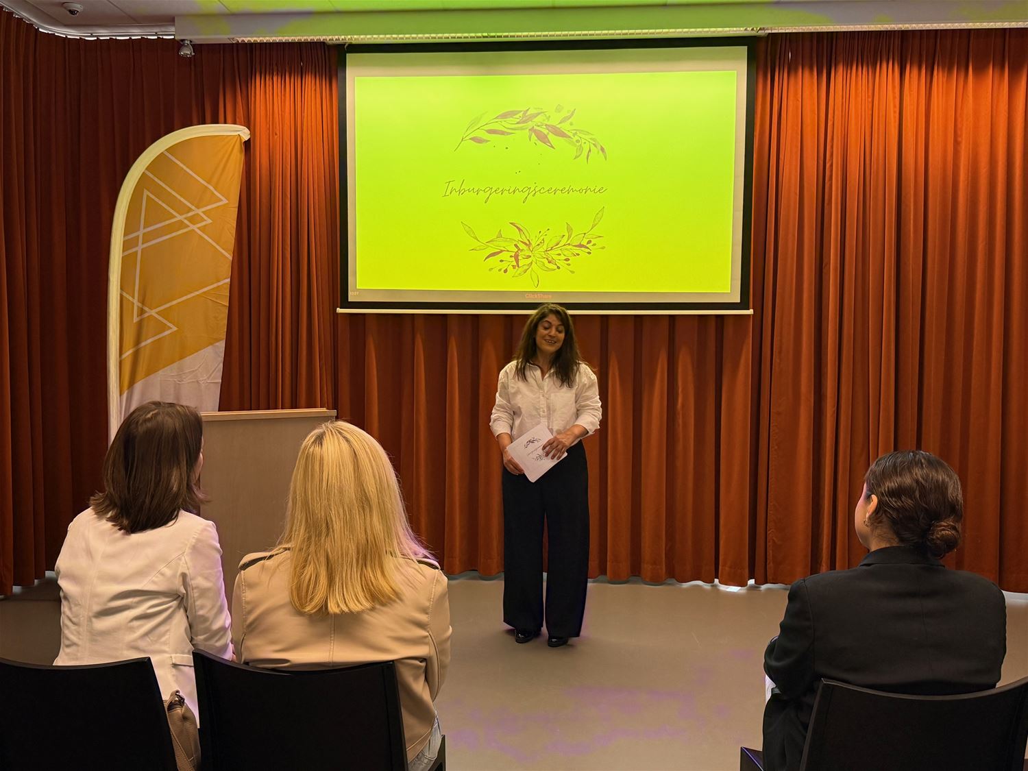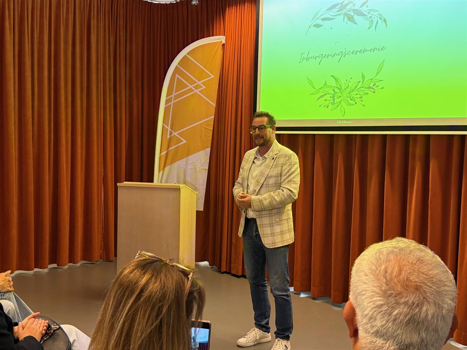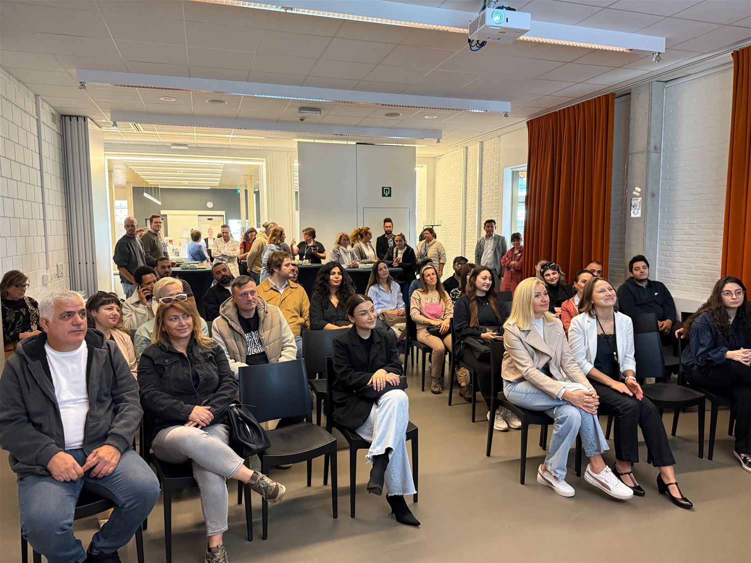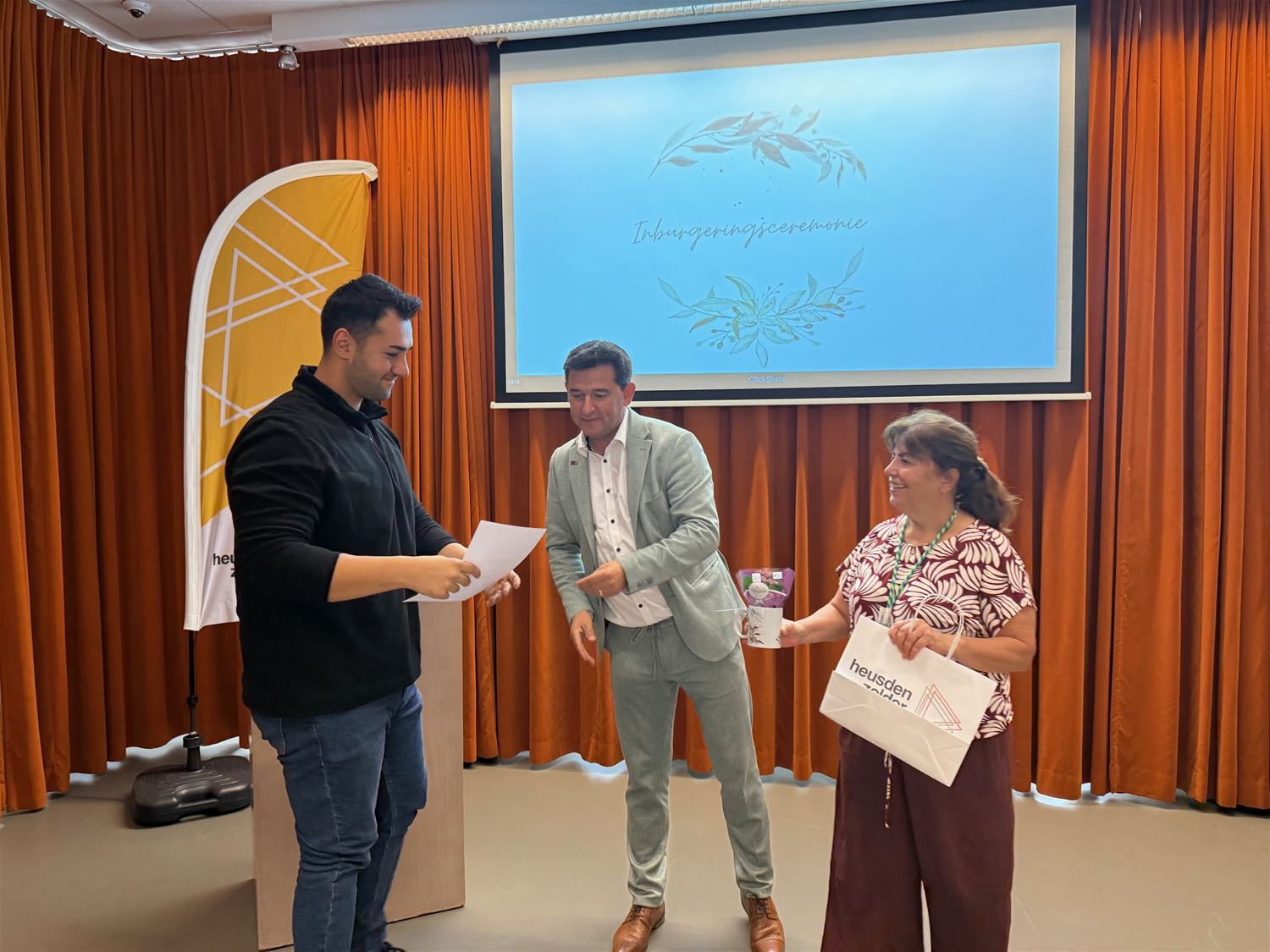 In de bibliotheek hebben vandaag 27 mensen hun certificaat in ontvangst genomen nadat ze hun inburgeringsattest behaalden bij het Agentschap Integratie en Inburgering. Niet alle nieuwkomers die de lessen gevolgd hadden waren aanwezig, in het totaal namen 52 mensen uit alle windstreken deel. Ze kregen onder meer felicaties van schepen Steven Goris en burgemeester Mario Borremans. Niet toevallig werden de certificaten uitgereikt bij het begin van de Week van het Nederlands. Daarom had aansluitend ook een talenmarkt plaats waar allerlei organisaties zich voorstelden bij wie de nieuwkomers kunnen aankloppen. Van de gemeente Heusden-Zolder kregen ze een promotasje en een bloemetje. (foto’s Julien Maebe)