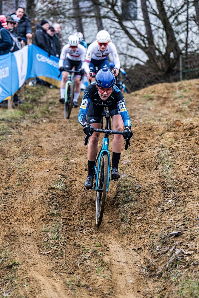 De vijfde manche van de Superprestige bij de vrouwen is gewonnen door de Franse kampioene Amandine Fouquenet. Europees kampioene Inge Van der Heijden nam de meteen na de start de leiding, met in haar spoor Vas, Fouquenet, Van Alphen, Marie Schreiber, Belgisch kampioenen Norbert-Riberolle en de Limburgse Fleur Moors. Helaas lag het tempo vooraan te hoog voor de Belgische dames, ze moesten afhaken en Norbert-Riberolle kreeg bovendien een lekke band. In de voorlaatste ronde versnelde Fouquenet, ze ging met 10 seconden voorsprong de slotronde in en won uiteindelijk. De Hongaarse Kata Blanka Vas won de sprint voor de tweede plaatse voor de Nederlanders Aniek van Alphen en Inge van der Heijden. (foto's DD)