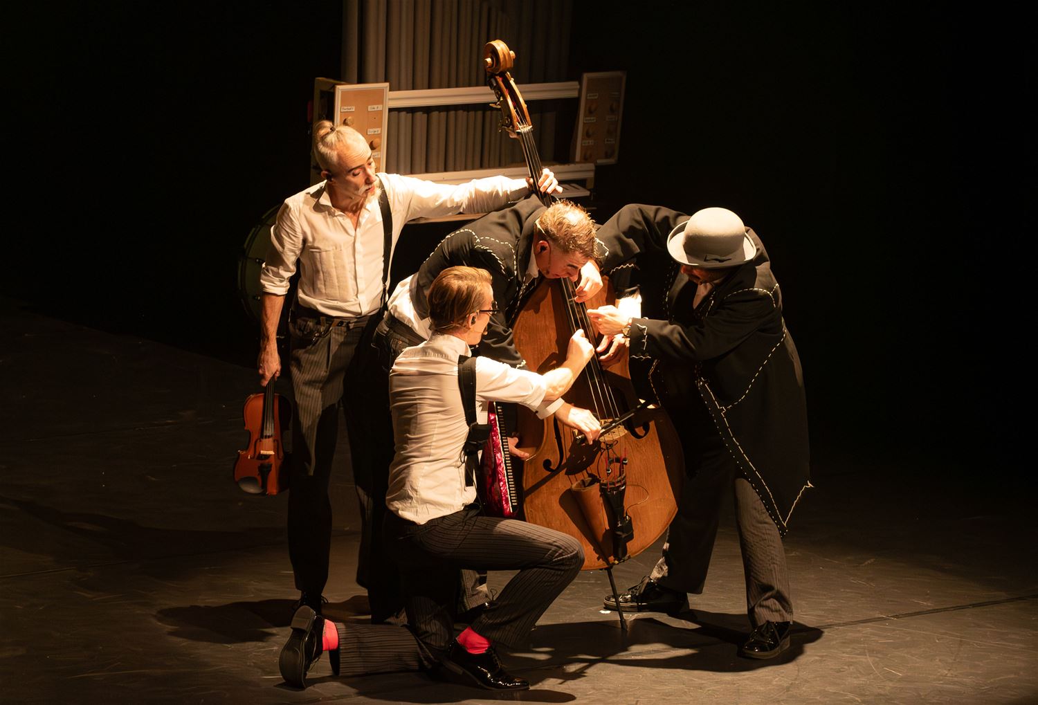 Humor en klassieke muziek, die hand in hand gaan. Het mag dan niet alledaags lijken maar Släpstick brengt het wel samen in de voorstelling 'Schërzo’ - Where Chaplin meets Tchaikovsky, vanavond in de Muzeschouwburg. Het zijn vijf muzikale alleskunners die het publiek meenemen op een kolderieke trip langs de meesterwerken van Rossini, Brahms, Saint-Saëns, Gershwin en andere componisten. Op onnavolgbare wijze [be]speelt het vijftal de grote klassiekers en eert en passant comedy-helden als Victor Borge en Charlie Chaplin. Er zijn nog enkele tickets. (foto Duncan McGlynn)