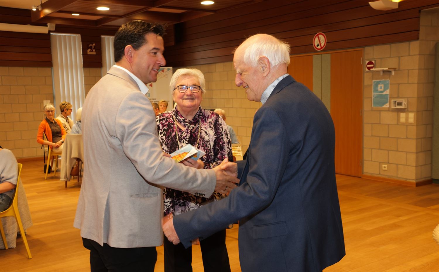 Een feestje in De Zandloper, daar werd een ontbijt geserveerd om de vrijwilligers te danken tijdens de Week van de Vrijwilliger. Een 60-tal personen schoof aan voor het ontbijt. Burgemeester Mario Borremans kwam hen bedanken voor hun inzet. Hij onderstreepte het belang van de vrijwilligers, zeker ook voor een organisatie als dienstencentrum De Zandloper. Daarna had hij nog een presentje voor Jef Minten en Steffie die beiden al 25 jaar actief zijn als vrijwilligers. (foto’s Robert Bos)