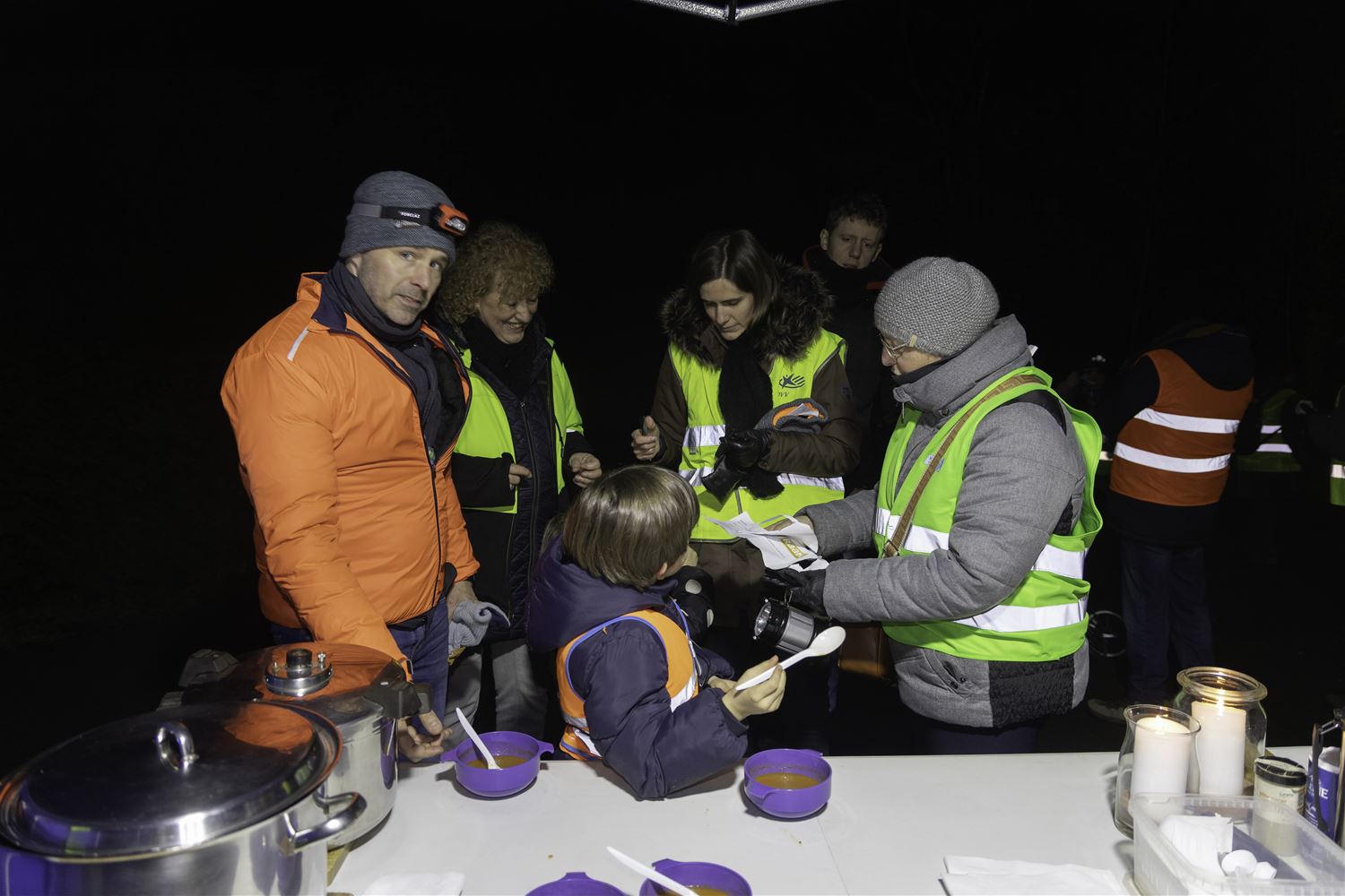 Raak Heusden-Centrum mocht vanavond 125 wandelaars verwelkomen voor zijn Pitslampentocht. Daarmee haalde de vereniging een oud evenement vanonder het stof, maar het concept bleek allerminst verouderd. 125 kinderen en volwassenen waren erg enthousiast om - ondanks de koude - met de pitslamp een gepijlde route over de Heusdense Voort te volgen. Het ging deels over verhard, deels over een onverhard traject, waar af en toe wel moest opgelet worden voor de modder. Op de stopplaats, na zowat twee van de vier kilometer - werd soep geserveerd, en die was meer dan welkom. Daarna was het nog even doorstappen tot aan het eindpunt, de tent in de Kruisvijverstraat waar nog chocomelk, glühwein, bier, frisdrank en hotdogs wachtten. En oh ja, de kinderen konden onderweg een rebus oplossen, die was iets makkelijker dan de schiftingsvraag aan het einde: daar stond een bokaal met koord in en de vraag was hoeveel millimeter de koord lang was. Voor de winnaars wachten toegangstickets voor Tarzan & Jane. En volgend jaar ... komt er wellicht een nieuwe Pitslampentocht. (foto's Joseph Bams)84265