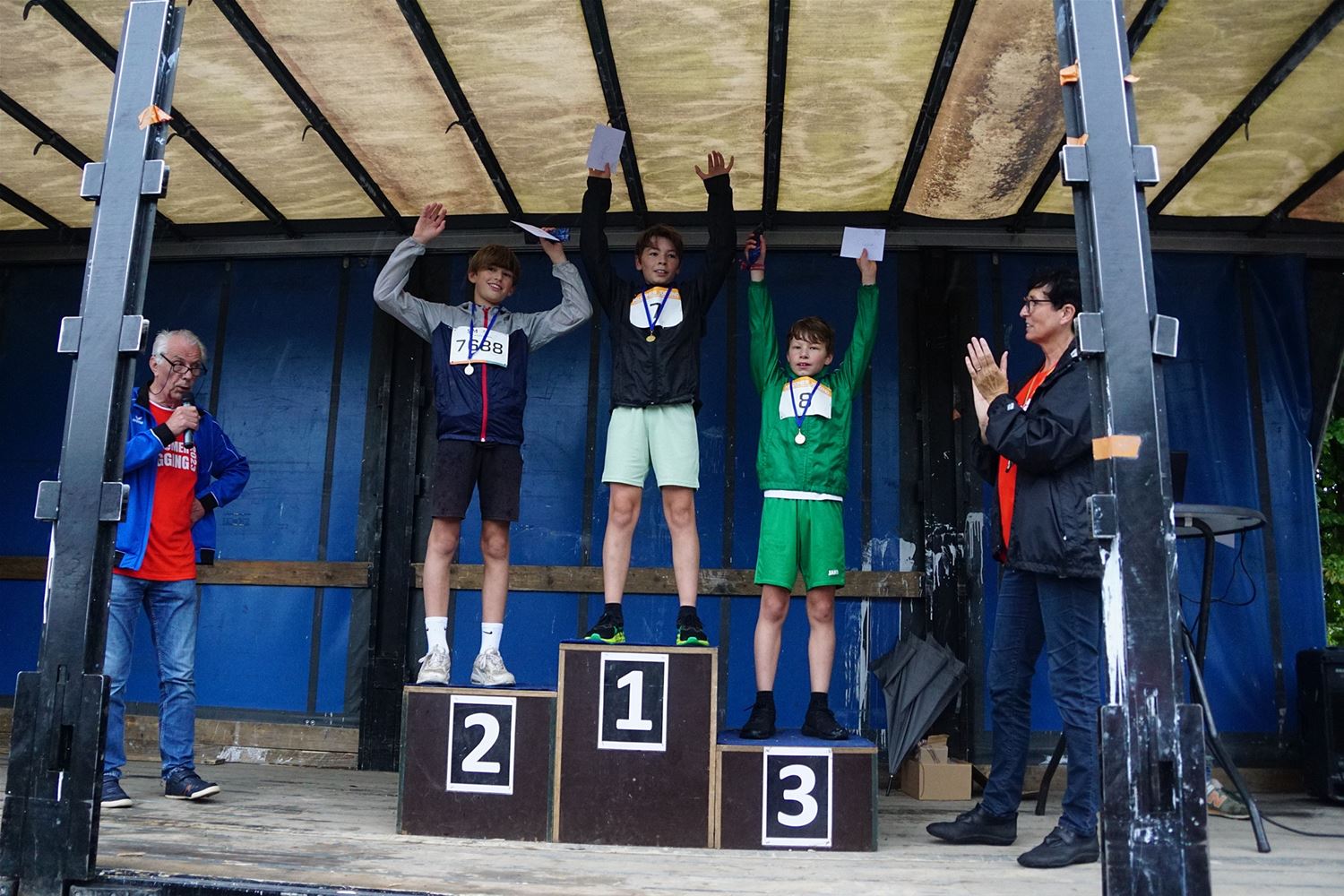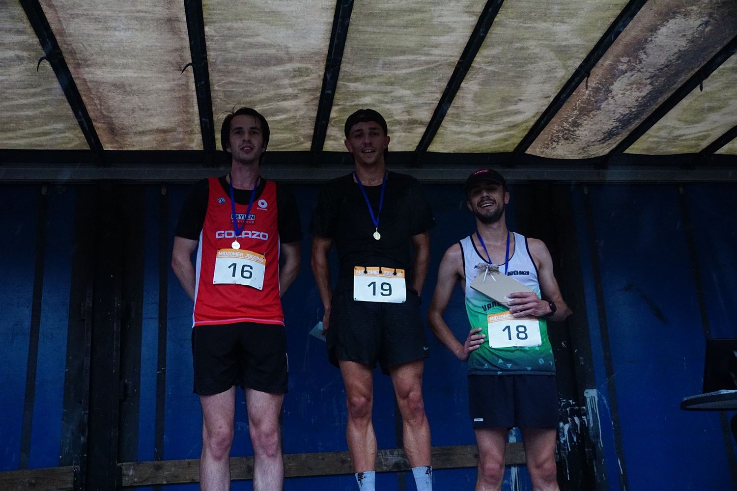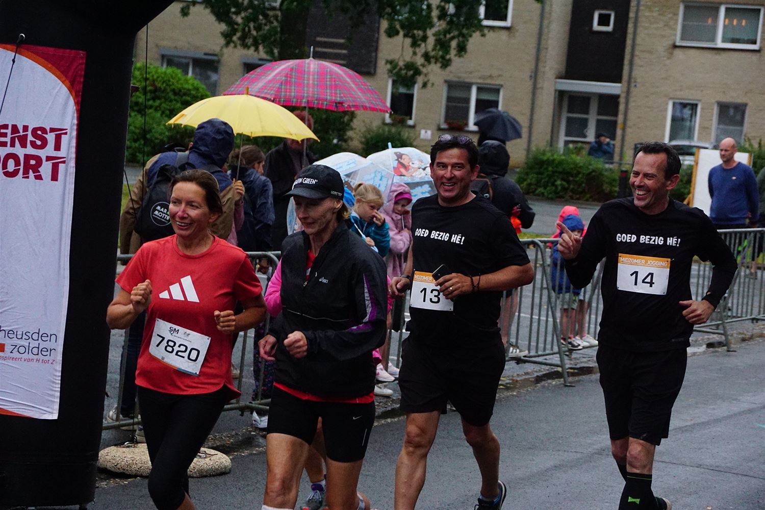 Vanavond was er in Eversel de Midzomerjogging in alles behalve prettige weersomstandigheden. Het begon met een kidsrun waaraan 19 kinderen deelnamen. Bij de jongens was Jules Maes de snelste voor Wout Swinnen en Conreel Maes. Marie Daenen was vierde in de algemene uitslag en eerste meisje. Tweede werd Elise Martens en derde Fien Speleers. De 5 km werd gewonnen door Bjarne Corvers voor Nico Claes en Giel Jonkmans. Bij de dames ging de zege naar Ine Wittewrongel voor Jana Nys en Sien Wittewrongel. Er waren 51 deelnemers. Dan was er nog de 10 km met 61 lopers aan de start. Thomas Thijs was de snelste gevolgd door Boris Valkeners en Sonny Volders. De winst bij de damesste was voor Griet Luyckx, gevolgd door Sofie Windmolders en Martine Reynders. Hier vind je de detailuitslagen. (foto's Stephan Volders)78186
