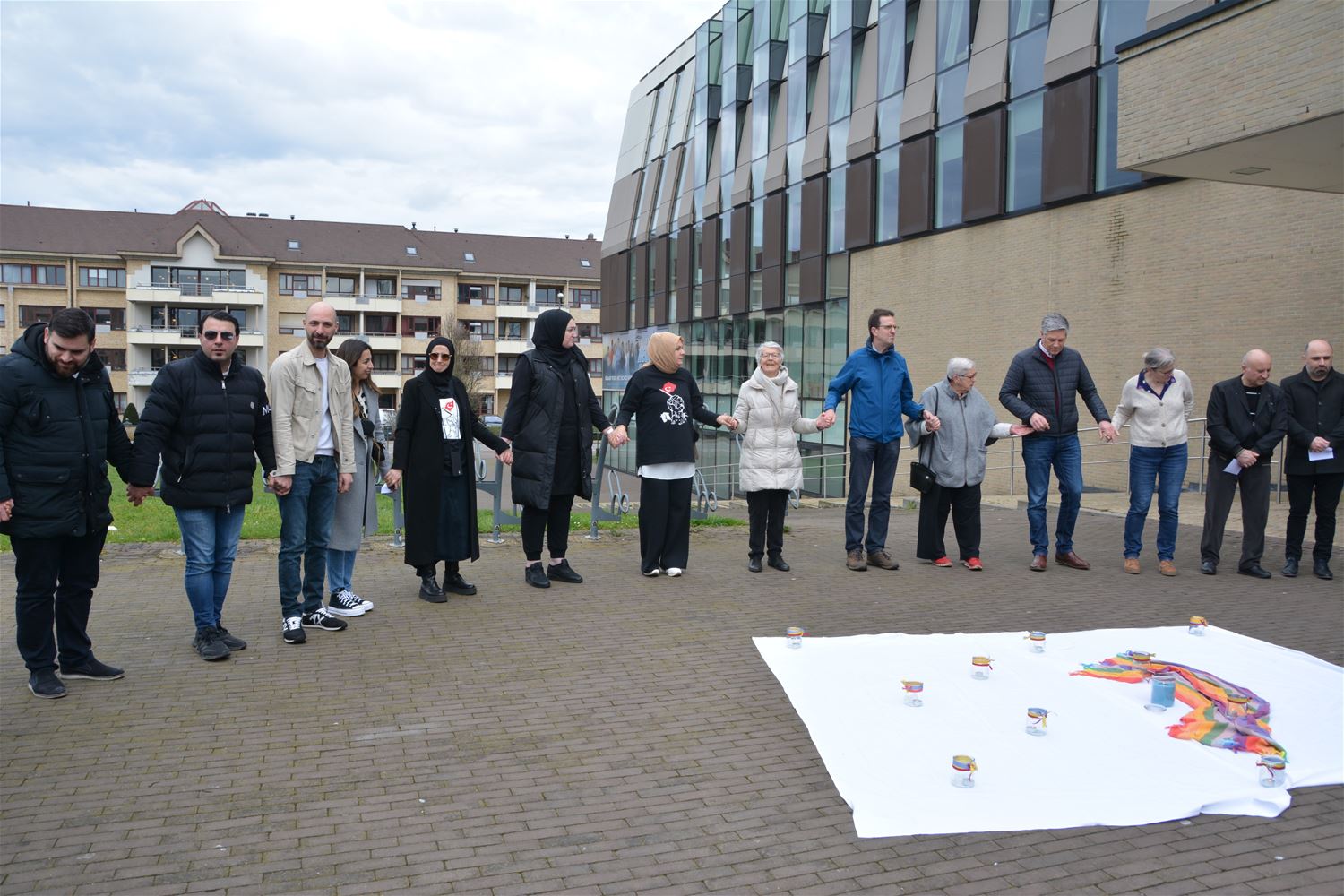 50 mensen hebben deze voormiddag aan het gemeentehuis deelgenomen aan een stiltecirkel ter nagedachtenis van de slachtoffers van de aardbevingen in Turkije en Syrië. Het ging om een initiatief van de interlevensbeschouwelijke werkgroep. Momenten van stilte en gebed werden afgewisseld met getuigenissen. Zo vertelde een geëmotioneerde Mehmet Ustun hoe hij geconfronteerd werd met de stad Antakya waar hij opgroeide en naar school ging en waar nu alleen nog maar puin te zien was. Hij was lovend over het werk van het veldhospitaal van BE-FAST dat hij bezocht. Ook Ayse Yigit beschreef hoe zij in een hele streek van 400 km lang alleen maar verwoesting en pijn had gezien. Maar ze beschreef ook de solidariteit, de solidariteitspunten die overal zijn opgebouwd en waarvoor zelfs studenten uit de steden waren afgezakt. Ze wees er ook op dat de recente overstromingen het leed nog hebben versterkt. Dat bevestigde ook Lode Schops die met het BE-FAST-team een tweetal weken ter plaatse was en volgens wie deze ramp nog veel immenser is dan die in Pakistan en Haïti die hij ook meemaakte. Nu nog altijd zijn er trouwens naschokken. Schops had het ook over de weerbaarheid van de lokale bevolking. Hij gaf het voorbeeld van een man van 76, die aan de tweede aardbeving een gebroken been overhield, al zijn 20 familieleden in de ramp had verloren, maar toch optimistisch naar de toekomst keek. Volgens Lode Schops het resultaat van de samenhorigheid en het geloof. Tijdens de bijeenkomst werd ook opgeroepen om blijvend aandacht te hebben voor de rampzalige gevolgen die nog jaren zullen aanslepen.76992
