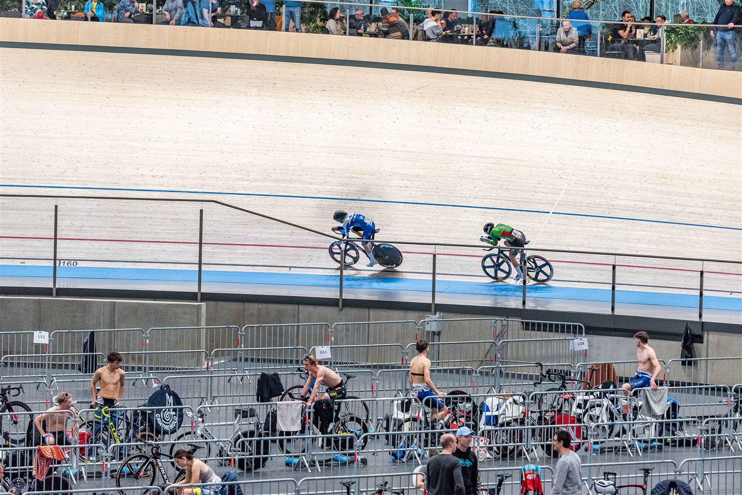 Op de tweede dag van de Belgische baankampioenschappen in de velodroom zijn opnieuw zes kampioenen gekroond, echt veel verrassingen zaten daar niet bij. Zo werd Nicky Degrendele, de vroegere keirin-wereldkampioene, kampioen in de sprint. In twee heats won ze het van de jonge belofte Julie Nicolaes, terwijl Valerie Jenaer naar het brons spurtte. Bij de mannen ging de sprinttitel naar Runar De Schrijver voor Tjorven Mertens en Mathias Lefeber. In de achtervolging klokte specialist Noah Vandenbranden 4:14.862 en liet daarmee Lindsay De Vylder en Fabio Van Den Bossche achter zich. Marith Vanhove won het goud in de achtervolging voor vrouwen, voor Katrijn De Clercq en Hélène Hesters. De Clercq-Hesters waren dan weer de besten in de ploegkoers. Jules Hesters won de scratch bij de mannen, in een spektakulaire koers spoelde hij de ontgoocheling over het verlies van zijn afvallingstitel vrijdag weg. Lindsay De Vylder en Tuur Dens mochten mee op het podium. (foto's Ann Jordens)79577