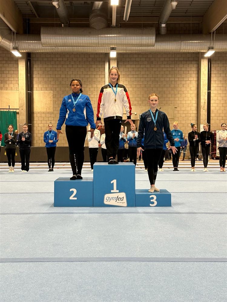 Op de provinciale voorrondes gymnastiek hebben de meisjes van Moed en Volharding knap gepresteerd. Met de steun van talrijke supporters sleepten ze liefst 6 podiumplaatsen uit de brand: Amélie Tielen 1ste Limburgs C 16, Caprice Nulens 1ste B12, Sien Vandezande1ste B13, Manou Paulussen 3de B14, Jenna Vandael 1ste B15 en Linde Korting 3de B16+. (foto's Lieze Vogels)80657
