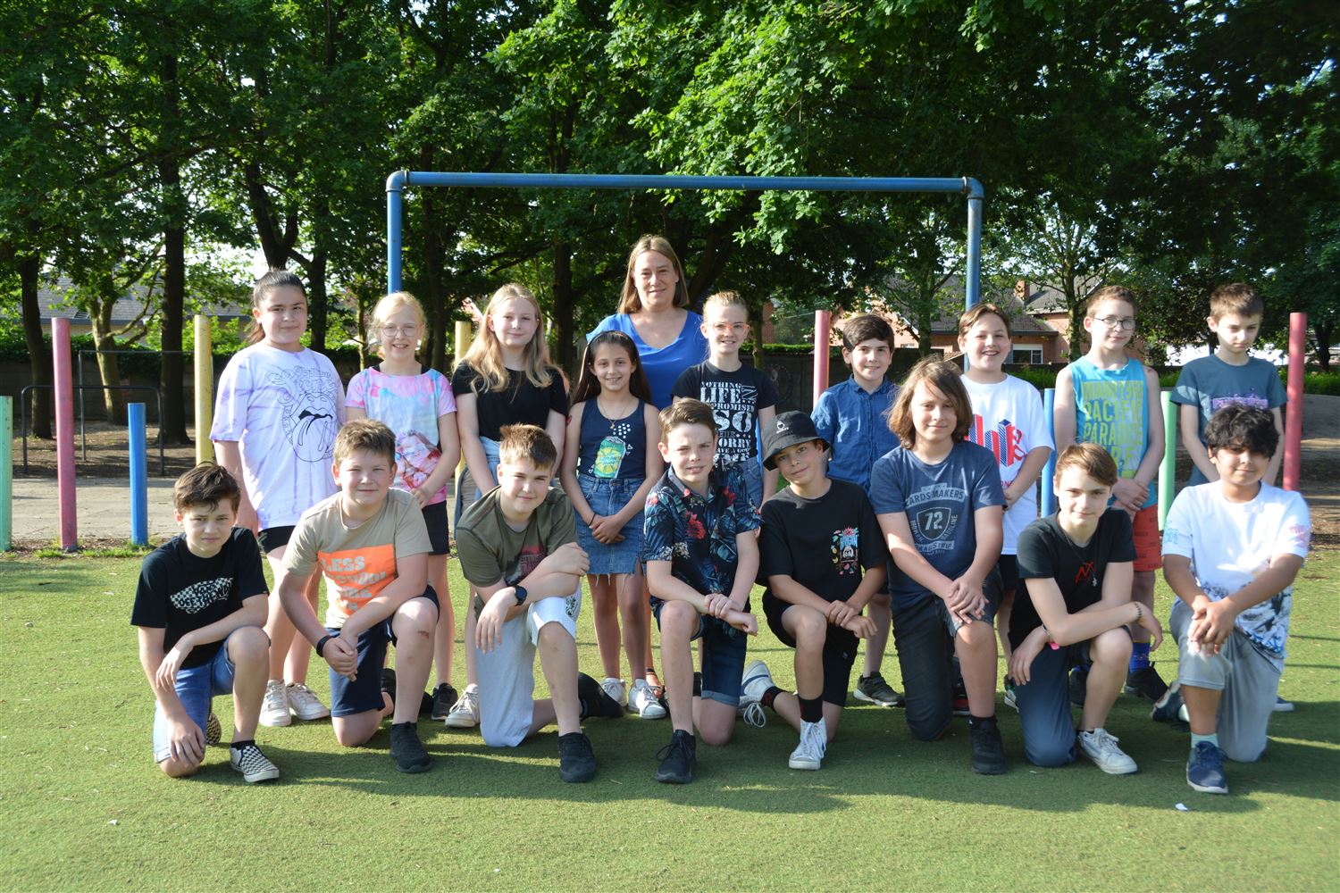 Nog in de Vrije Basisschool De Springplank in Eversel tellen ook de leerlingen van 6B de laatste dagen van hun lager onderwijs af in het gezelschap van hun juf Ellen. Het zijn Ben Baerts, Laura Balette, Lara Blanchard, Kaan Cenan, Iliana Ciamarra, Obi Daniels, Noah Fagard, Nathan Froyen, Ela Ipcioglu, Aezen Malik, Jaimey Put, Vince Quarem, Güzide Sahin, Kjaro Schroyen, Utku Tanriöver, Emile Tarallo, Corneel Theys en Hanne Verpoorten. (foto Marina Poelmans)