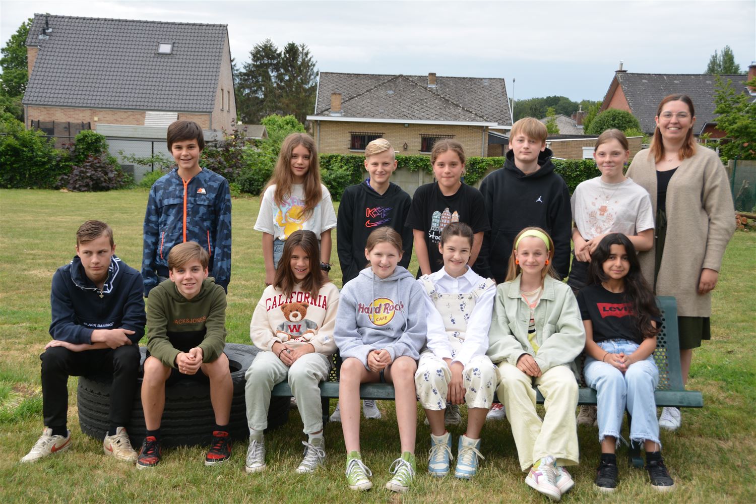 In de GO! Daltonschool neemt juffrouw Romanie afscheid van haar leerlingen van het zesde leerjaar. Het zijn Kato Blomme, Mathis Claes, Trui Doultremont, Lou Janssens, Aron Lucas, Louise Nizet, Milan Nuyts, Rozerin Öncel, Mathiz Tielens, Amber Vanderheyden, Ella Vanderheyden, Daan Vanhove, Dardana Wehenkel en Kyan Wendelen. (foto Marina Poelmans)73404