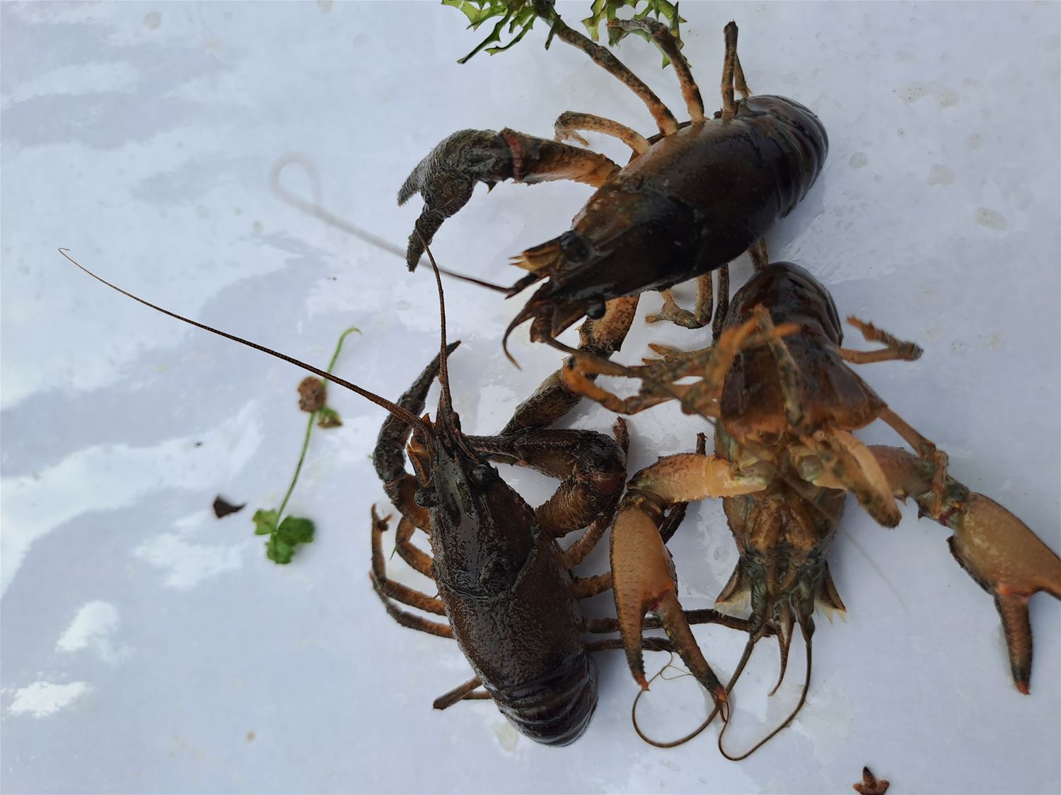 Natuurpunt Heusden-Zolder heeft de voorbije weken meegewerkt aan het burgerwetenschapsprolect 'Craywatch' van het Instituut voor Natuur- en BosOnderzoek (INBO). Er is dringend meer kennis nodig over de aanwezige invasieve uitheemse rivierkreeften in Vlaanderen. INBO brengt met het Craywatch-project hun verspreiding in kaart. Met de hulp van burgerwetenschappers onderzocht Natuurpunt Heusden-Zolder tussen 15 juni en 15 oktober welke uitheemse rivierkreeften al dan niet in Heusden-Zolder voorkomen. Belangrijke informatie om gerichte maatregelen te kunnen nemen en de uitvoering ervan te verbeteren. De uitheemse rivierkreeften zijn meestal besmet met schimmelziekte (rivierkreeftenpest) waardoor de inheemse Europese Rivierkreeft bijna volledig is uitgestorven in West-Europa. Voor het onderzoek werden met een 6-tal fuiken de 2 vijvers van Terlaemen onderzocht. In het totaal zijn in 4 dagen 20 gevlekte Amerikaanse rivierkreeften en enkele zonnebaarzen (ook al een invasieve Amerikaanse soort) gevangen. (foto's Jean-Pierre De Roo)83298