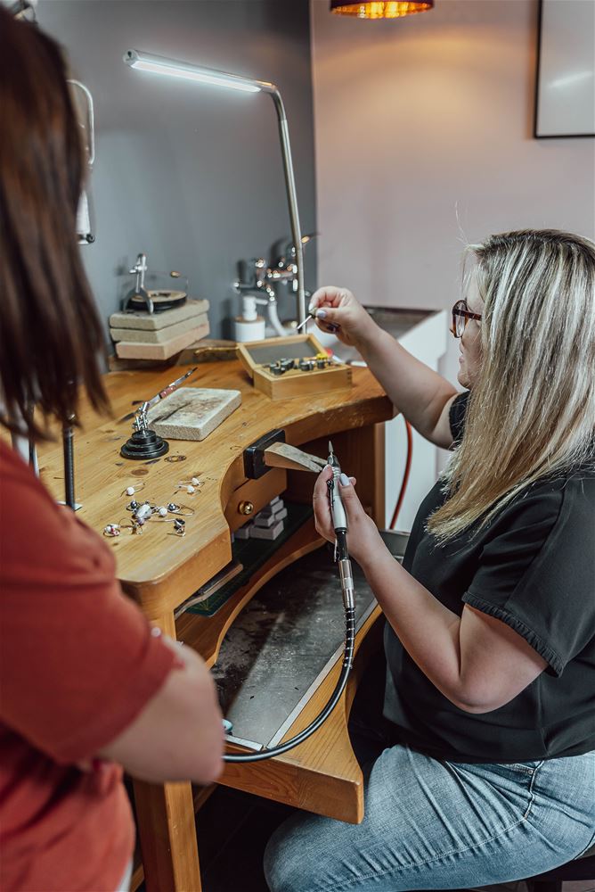 Vandaag was er de eerste dag van Atelier in Beeld en kon je ook in Heusden-Zolder bij 4 kunstenaars een kijkje gaan nemen. Ze tonen niet alleen hun werk, geven de nodige uitleg en demonstreren hun manier van werken. In atelier Ypsylon toont edelsmid Liza Gernaey hoe ze juwelen ontwerpt en smeedt. Maar ook aan kleine juweeltjes wordt er gezaagd en gevijld, ze werkt met zilver en goud. Ook zondag nog te bezoeken in de Bergstraat 72 van 11 tot 17 uur. (foto's Ann Jordens)77434