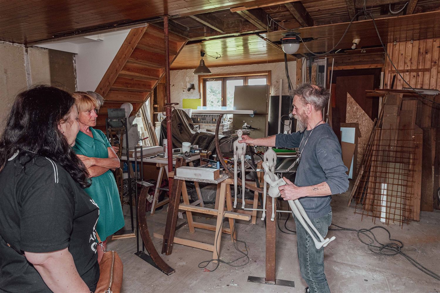 Ook beeldhouwer Johan Janssen zet zijn atelier dit weekend open. Zelf zegt Johan dat nogal wat mensen hem een 'kunstenaar mee ne hoek af' noemen. Alleszins kneedt hij alle materialen die in zijn handen komen tot kunstzinnige objecten. Zijn werken zijn sterk expressieve beelden, die allen hun eigen verhaal uitstralen, dan weer speels, rustgevend of misschien wat provocerend. Ook zondag nog te bezoeken van 11 tot 17 uur in de Dwarsweg 12. (foto's Ann Jordens)77436