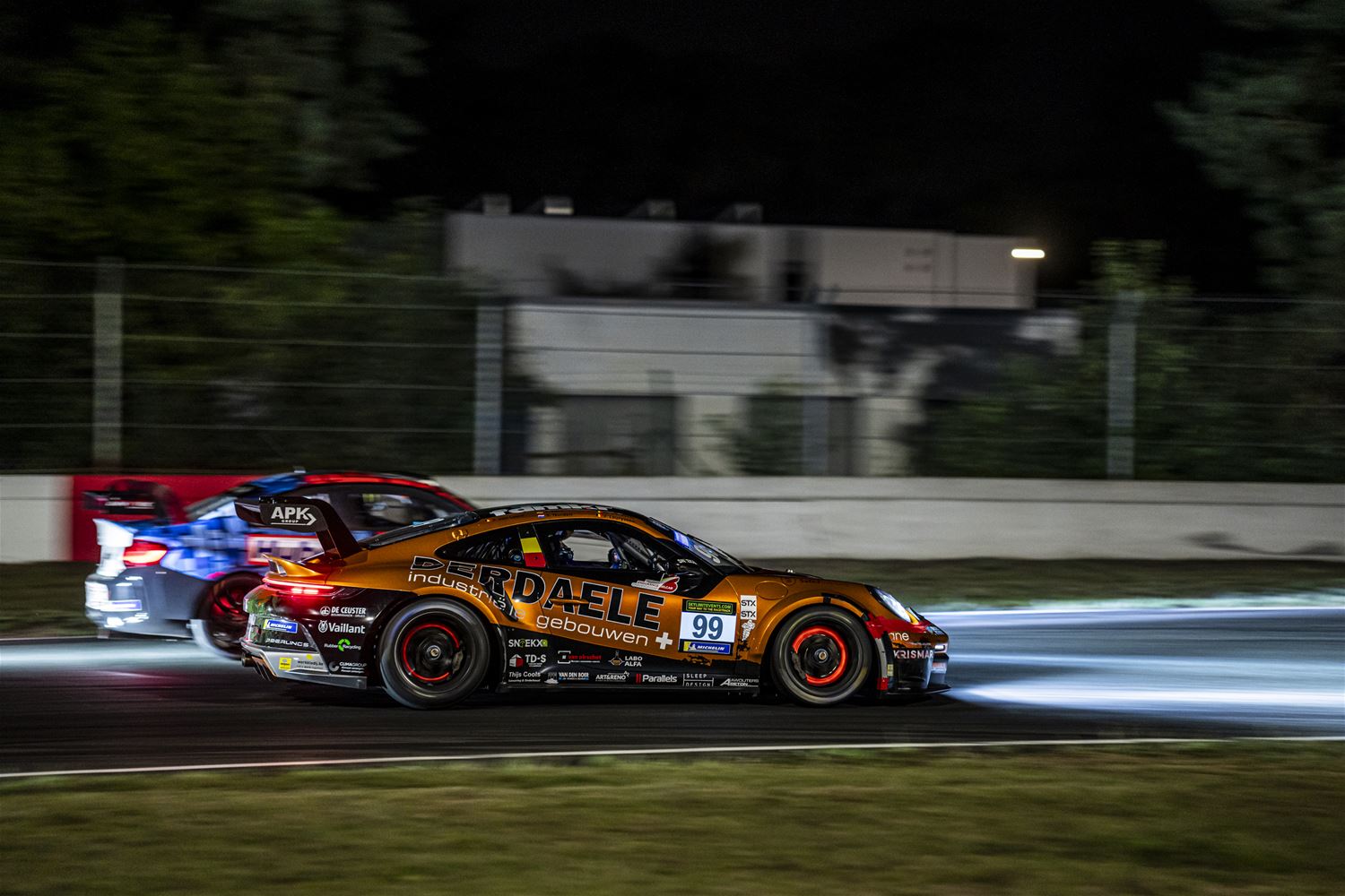 De Audi R8 LMS GT2 van PK Carsport mag zaterdag vanuit de pole positie vertrekken in de 24 Uren van Zolder. Dat heeft het team te danken aan Stienes Longin die vanavond in de superpole de snelste tijd liet klokken. Longin deelt de Audi met vader Bert, Peter Guelinckx, Sam Dejonghe en Arnold Neveling. De tweede tijd was voor de RedAnt Racing Porsche 911 GT3 Cup met Ayhancan Güven aan het stuur. Hij deelt die wagen met Laurens Vanthoor, Dirk en Tom Van Rompuy. Derde snelste was de Russell Racing Lamborghini Huracán Super Trofeo met Jeffrey Van Hooydonk aan het stuur en Hans en Frank Thiers, Christoff Corten en Pieter Ooms in het team. Drie verschillende wagentypes in de top 3, het belooft dus een race te worden die alle kanten uit kan. UPDATE Dat laatste bevestigden ook de nachttrainingen, daar was dan weer het team RedAnt overtuigend het snelste. (foto's DD)82766