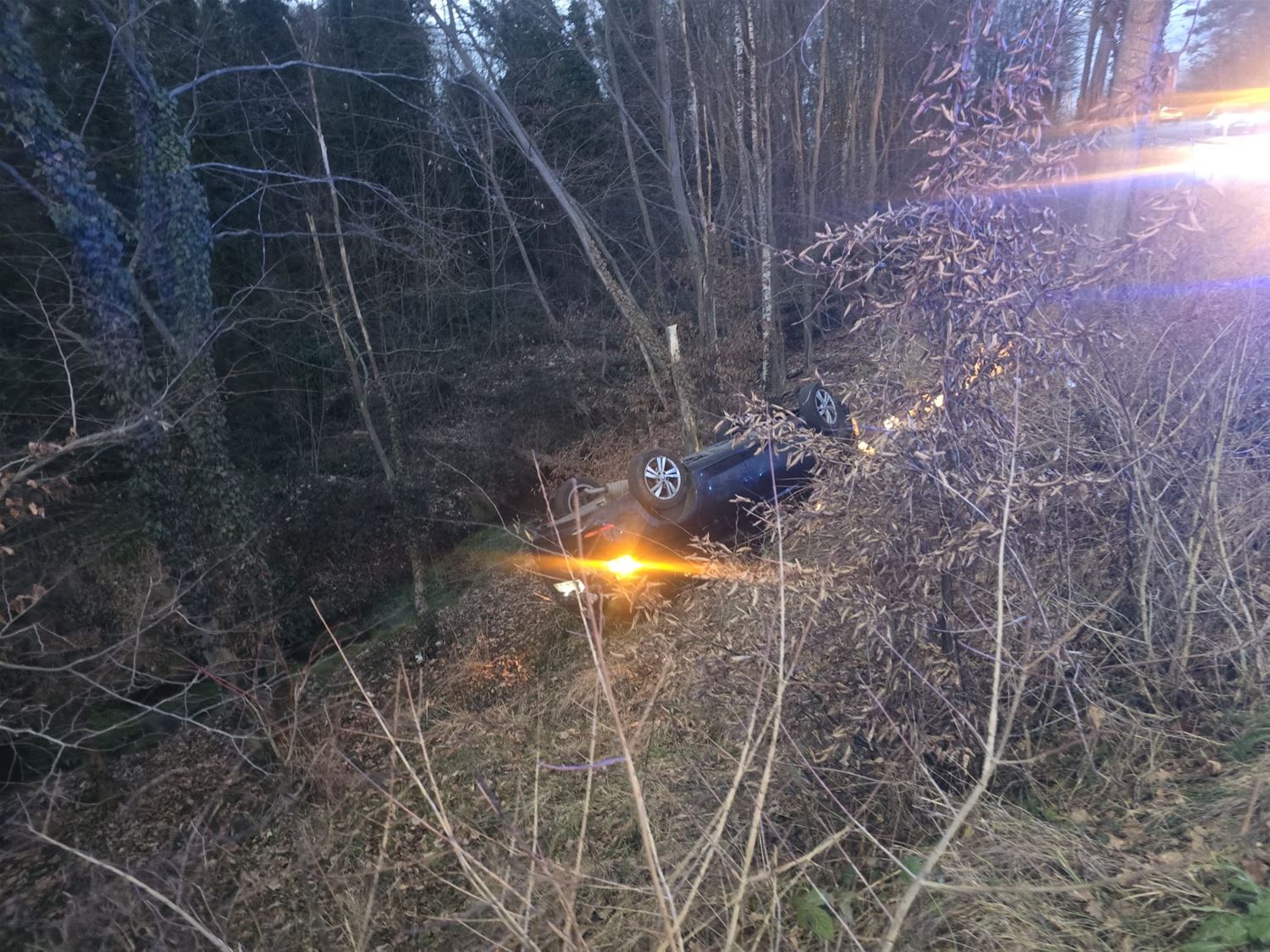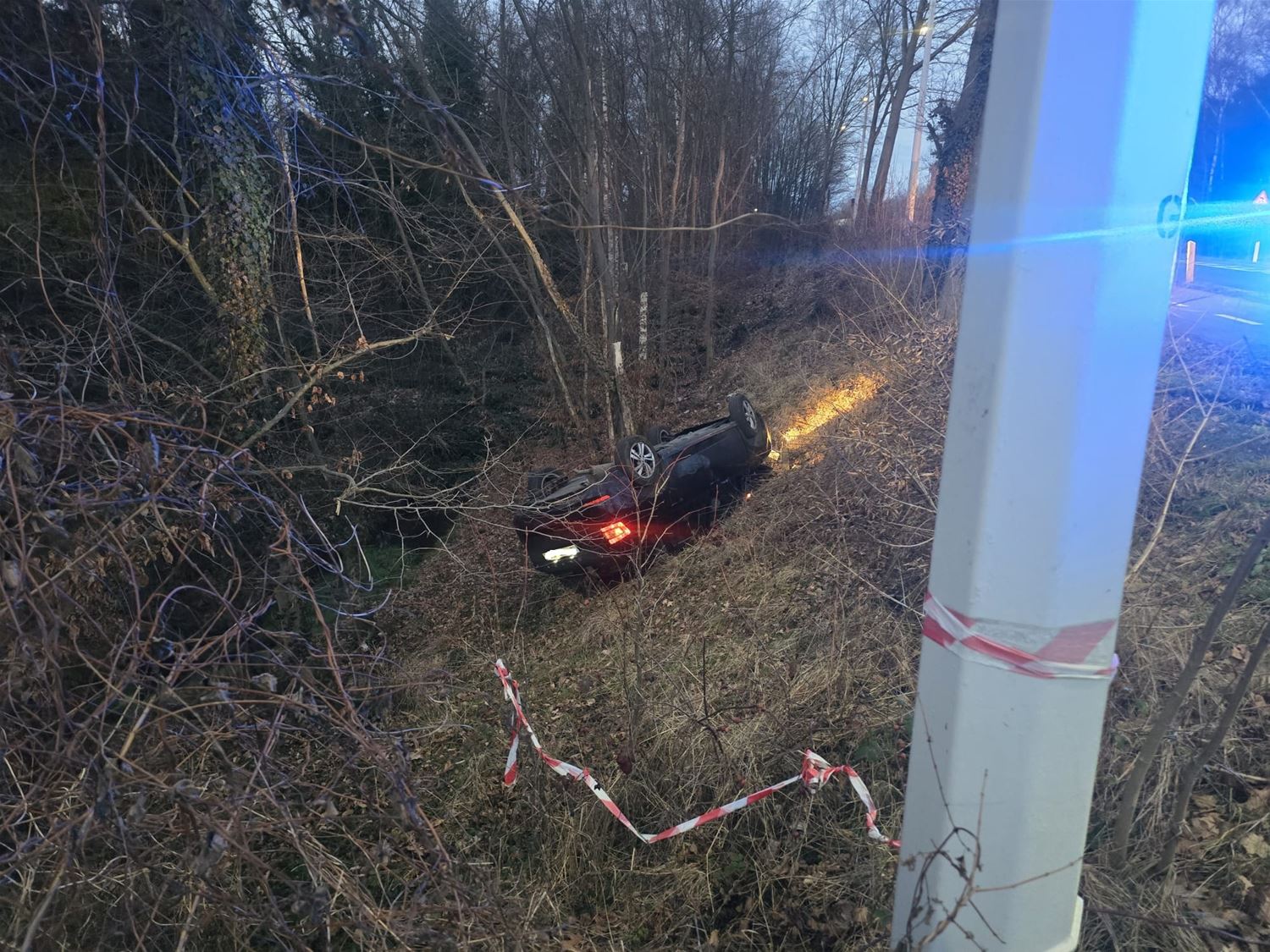 Vanavond is op de afrit Terlaemen een auto van de weg geraakt en onderaan de talud terechtgekomen. De bestuurder verliet de E314 richting Terlaemenlaan. Mogelijk door een stuur- of inschattingsfout belandde hij aan de overkant van de weg waar zijn wagen naar beneden gleed en op zijn dak terechtkwam. De wagen werd door takeldienst Geert Schops weer naar boven gehaald en bleek zwaar beschadigd. 87668